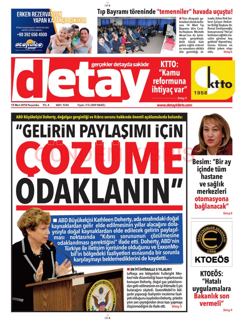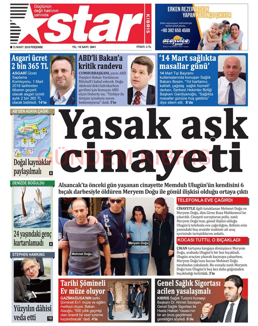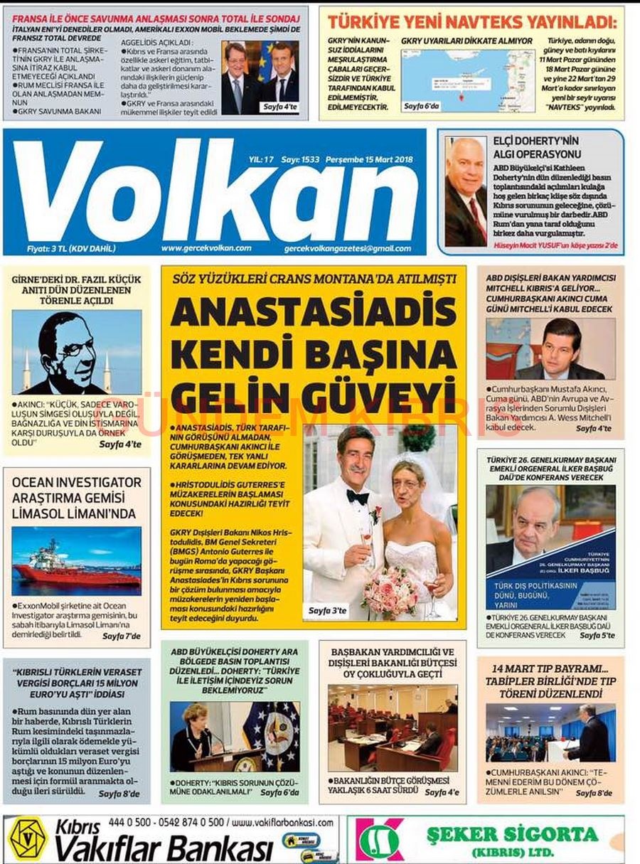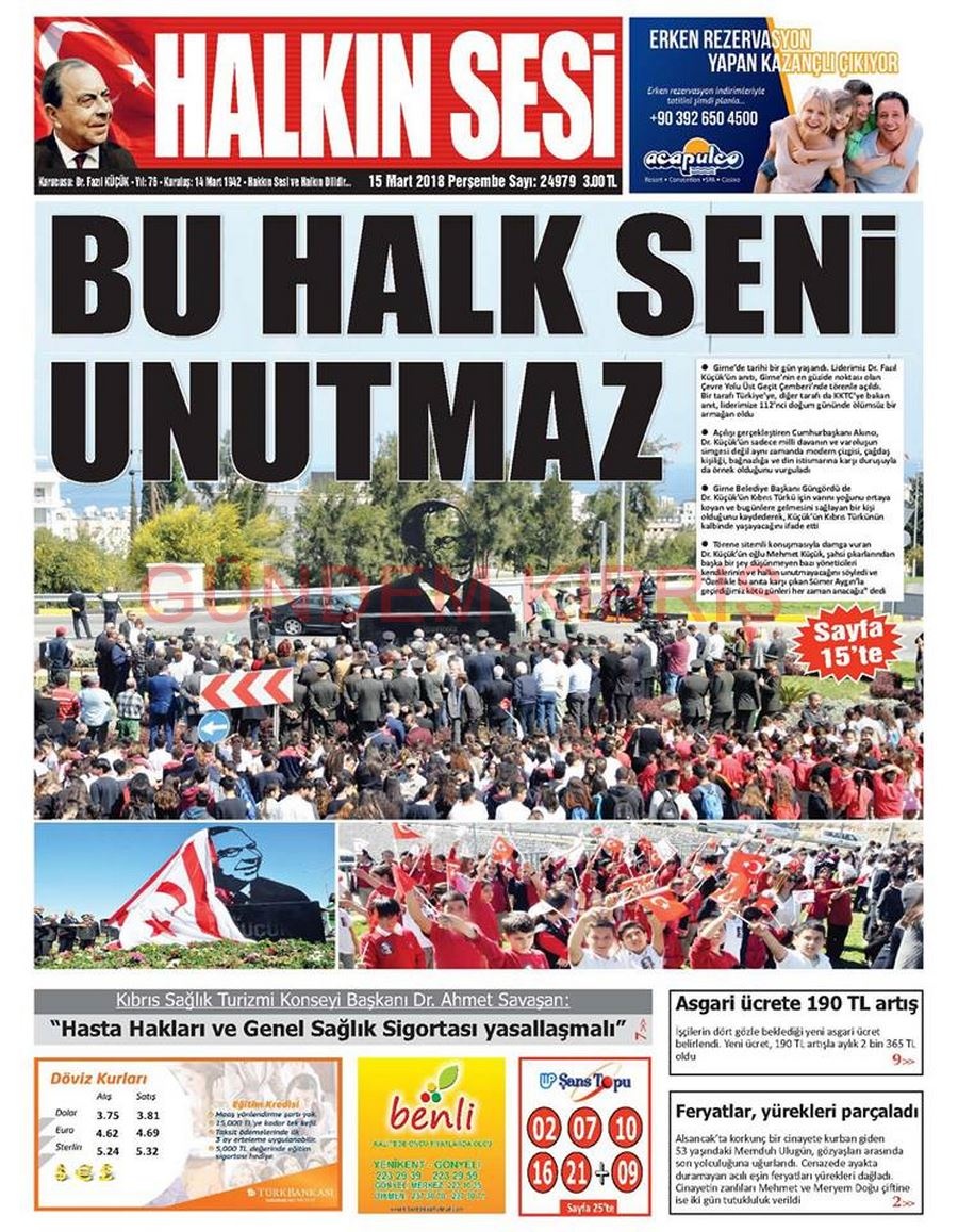 KKTC Gazete Manşetleri 15 Mart 2018