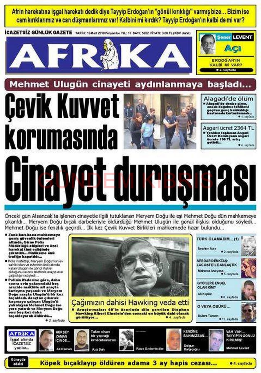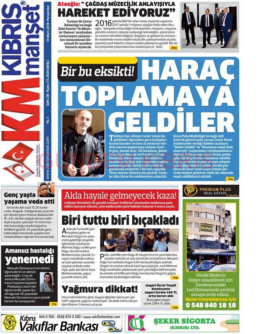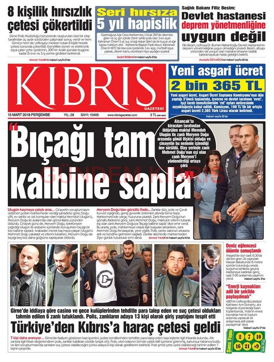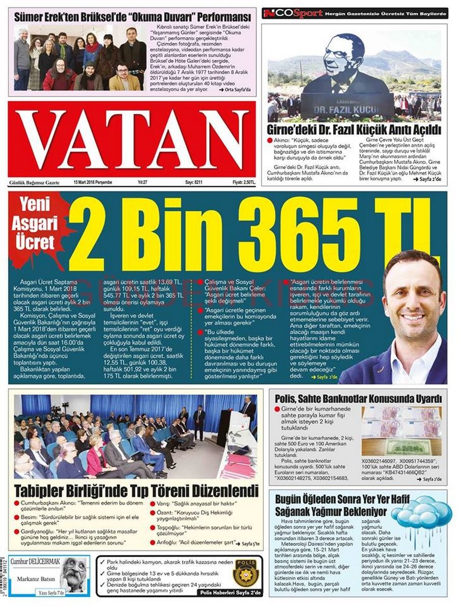 KKTC Gazete Manşetleri 15 Mart 2018
