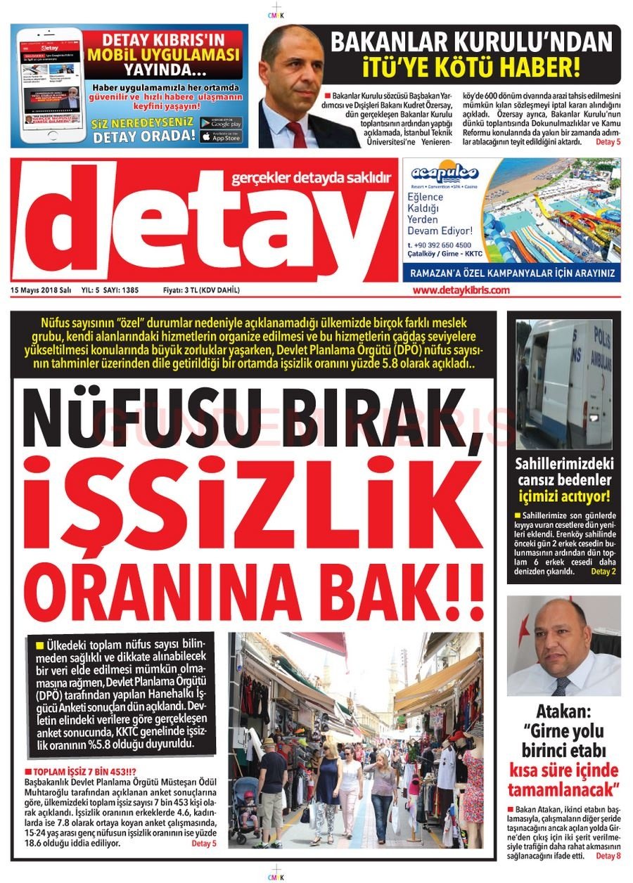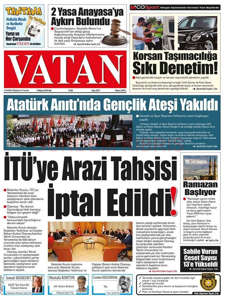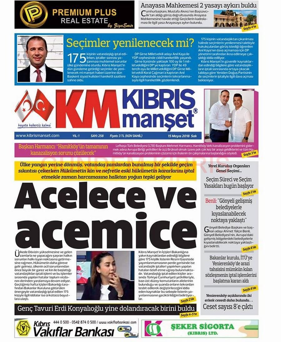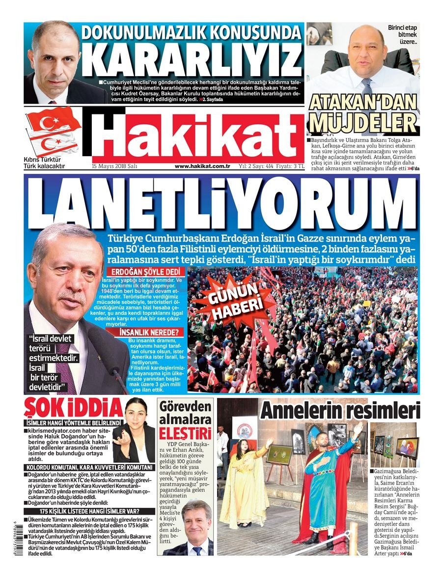 KKTC Gazete Manşetleri 15 Mayıs 2018