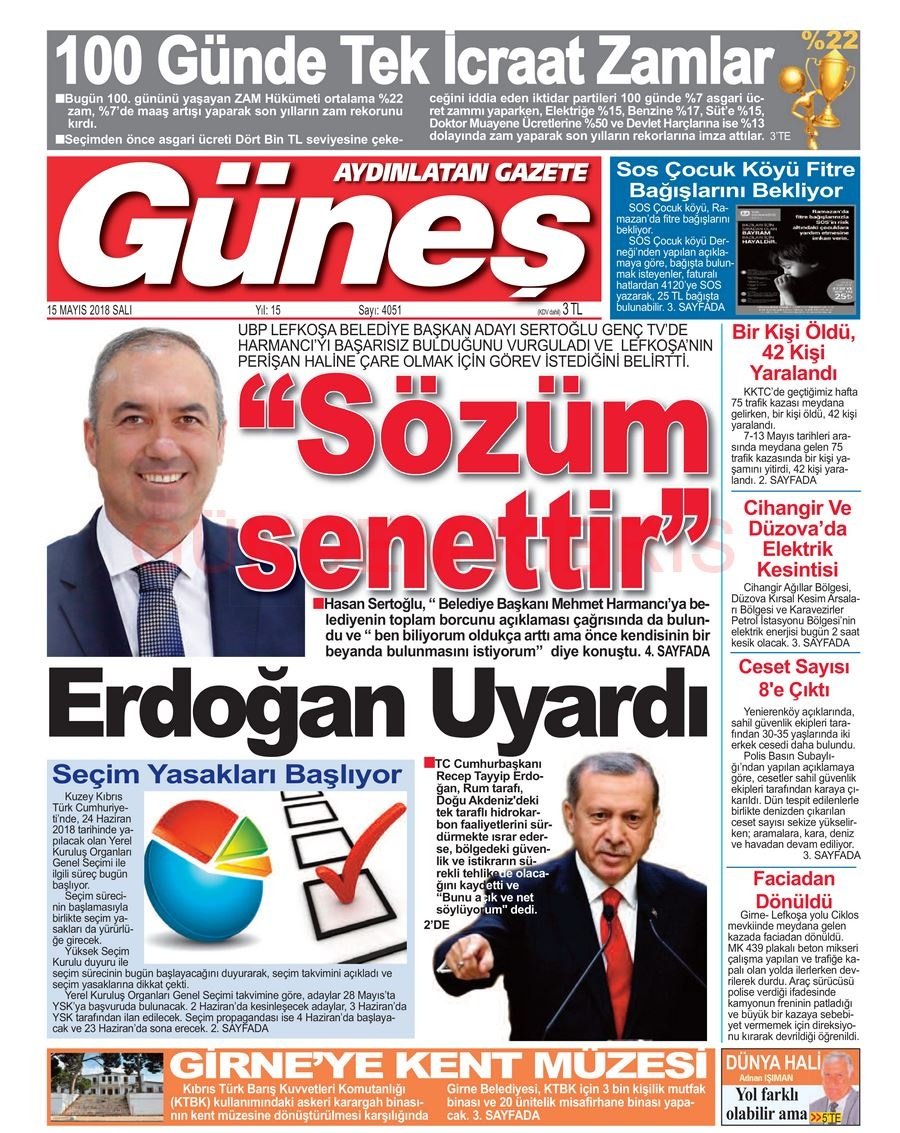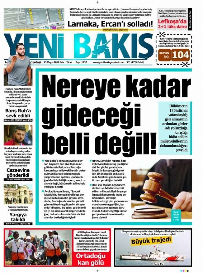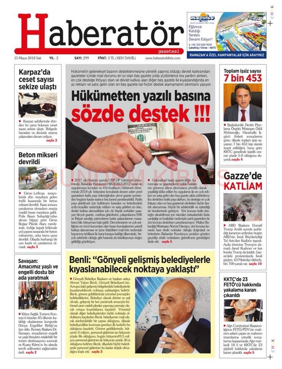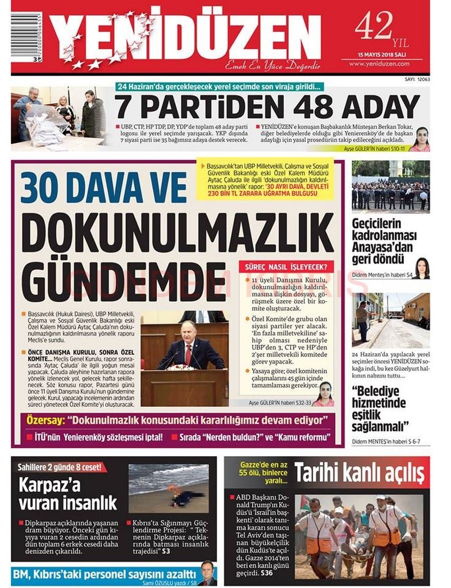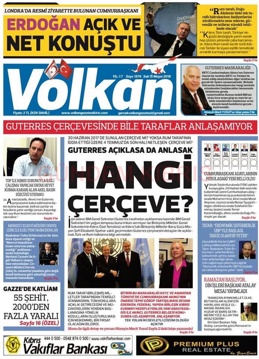 KKTC Gazete Manşetleri 15 Mayıs 2018