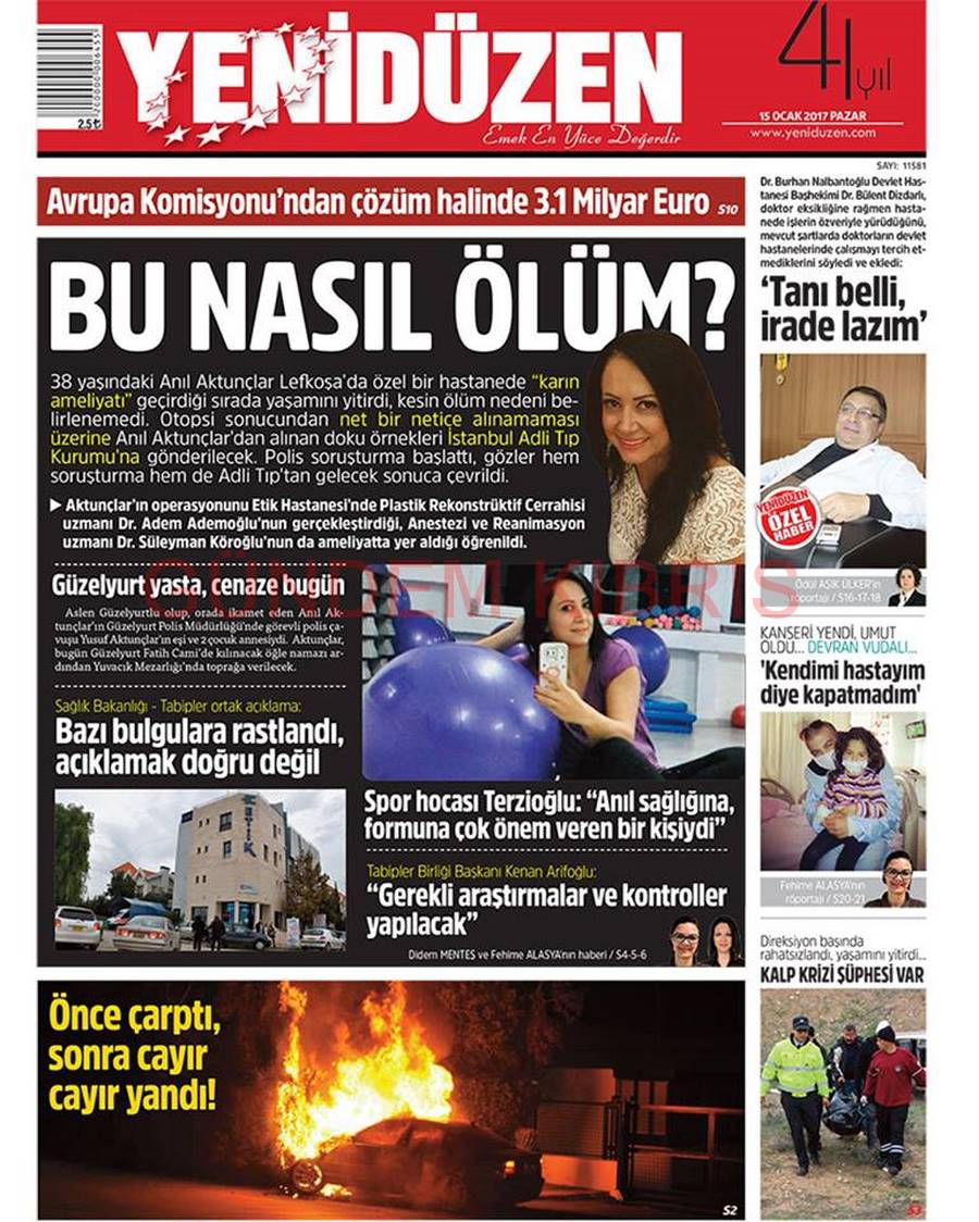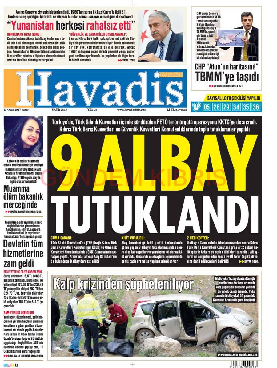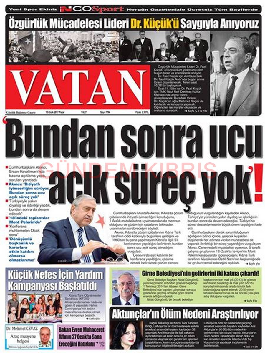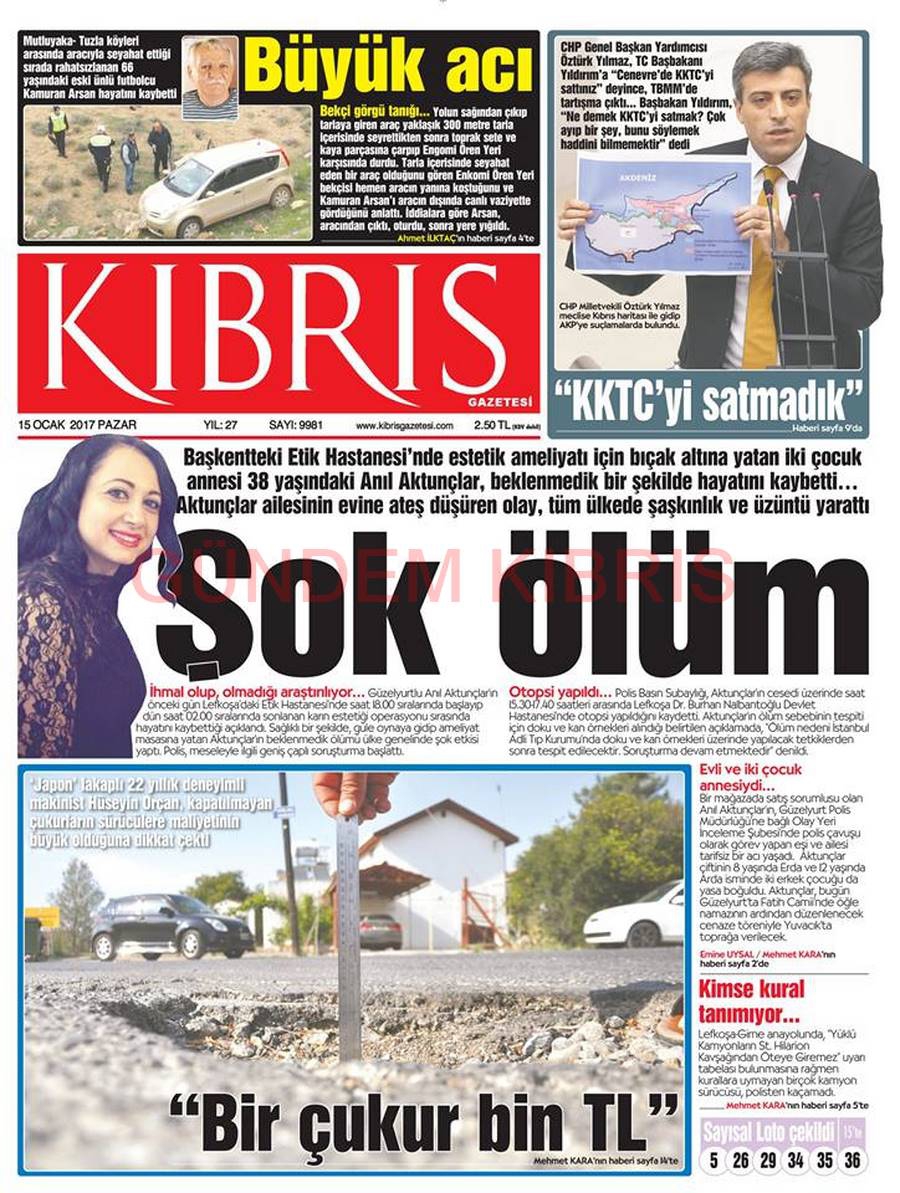 KKTC Gazete Manşetleri 15 Ocak 2017