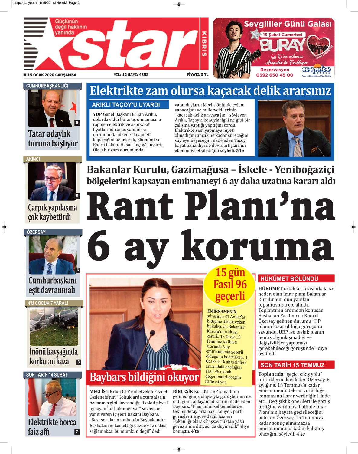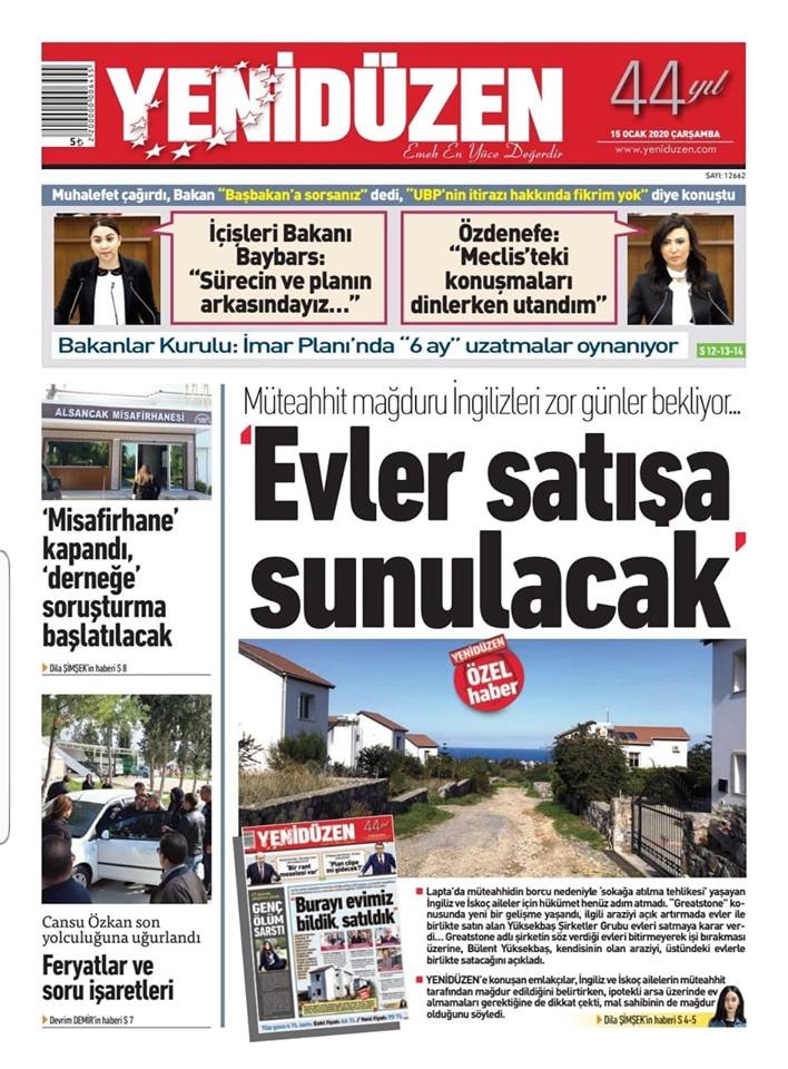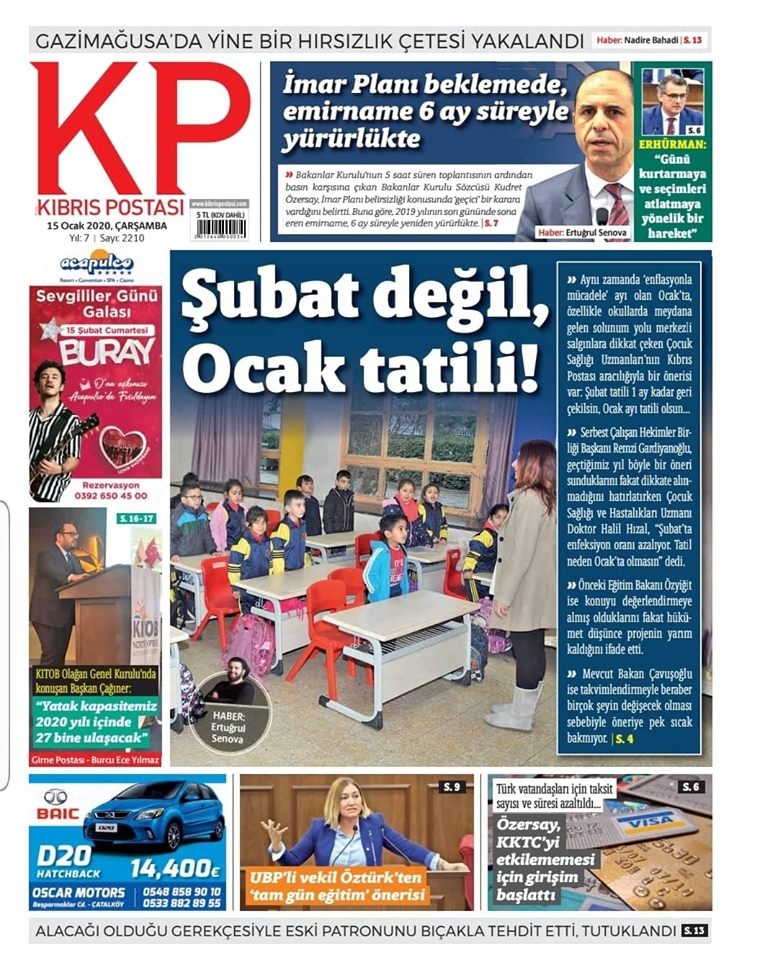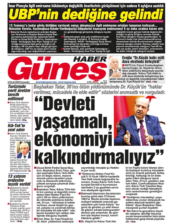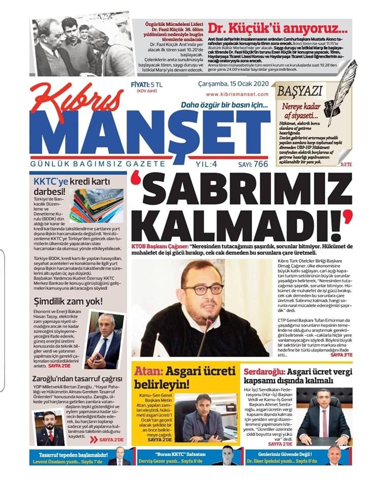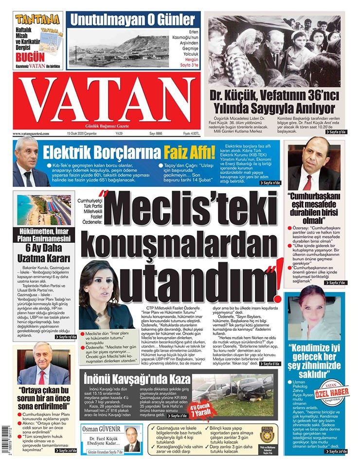KKTC Gazete Manşetleri - 15 Ocak 2020