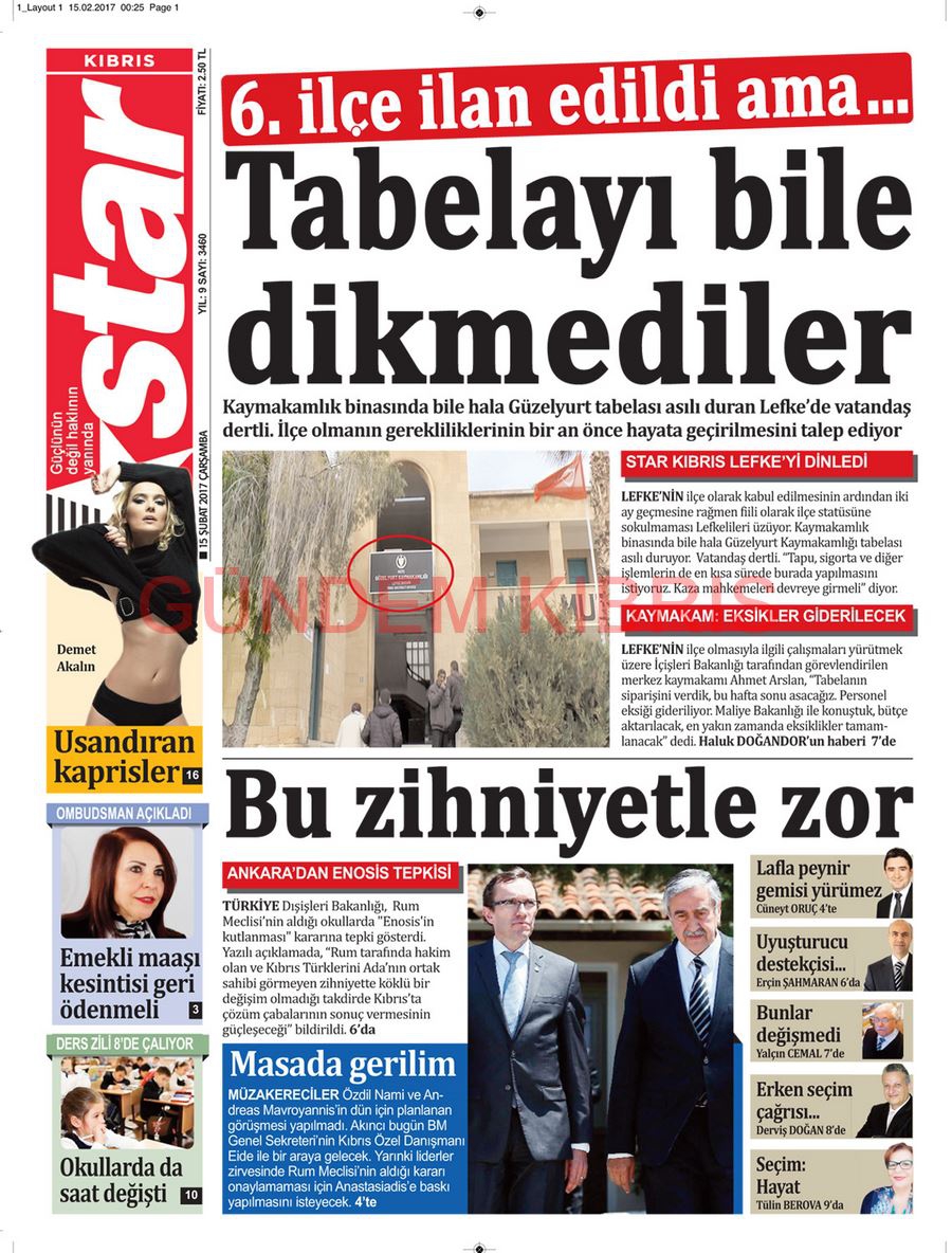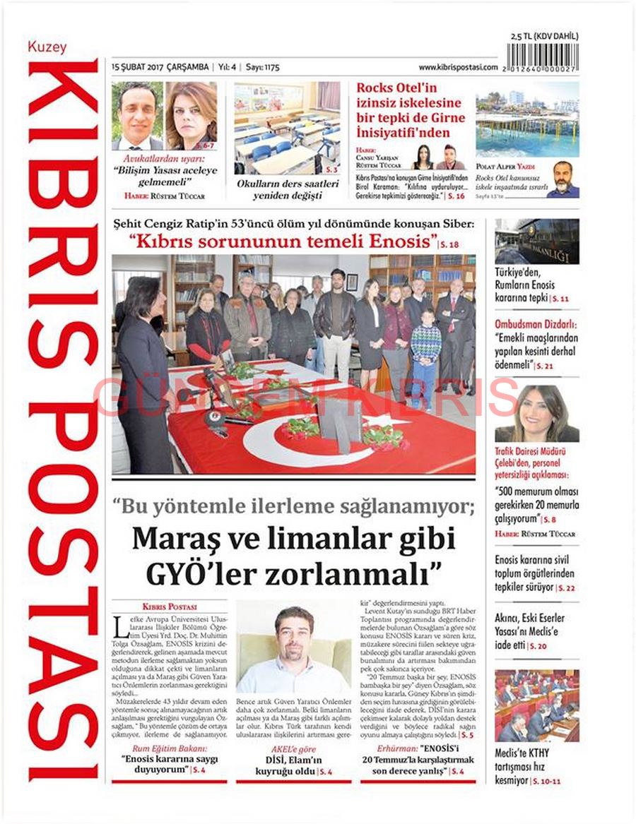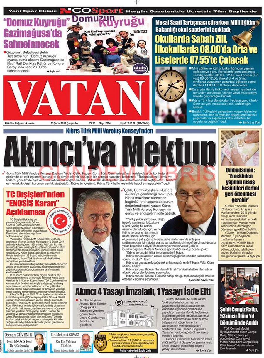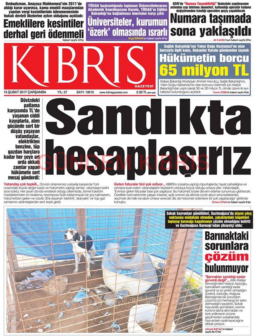 KKTC Gazete Manşetleri 15 Şubat 2017