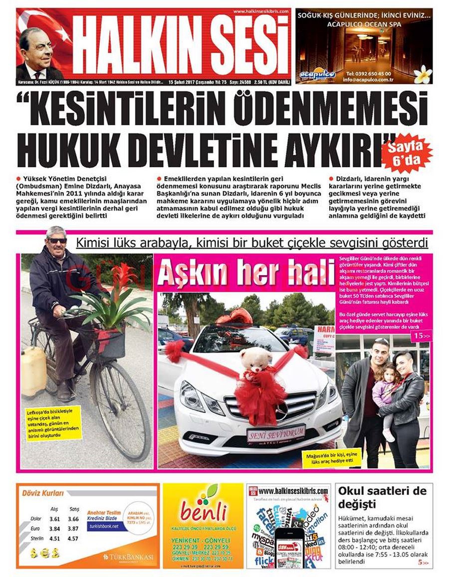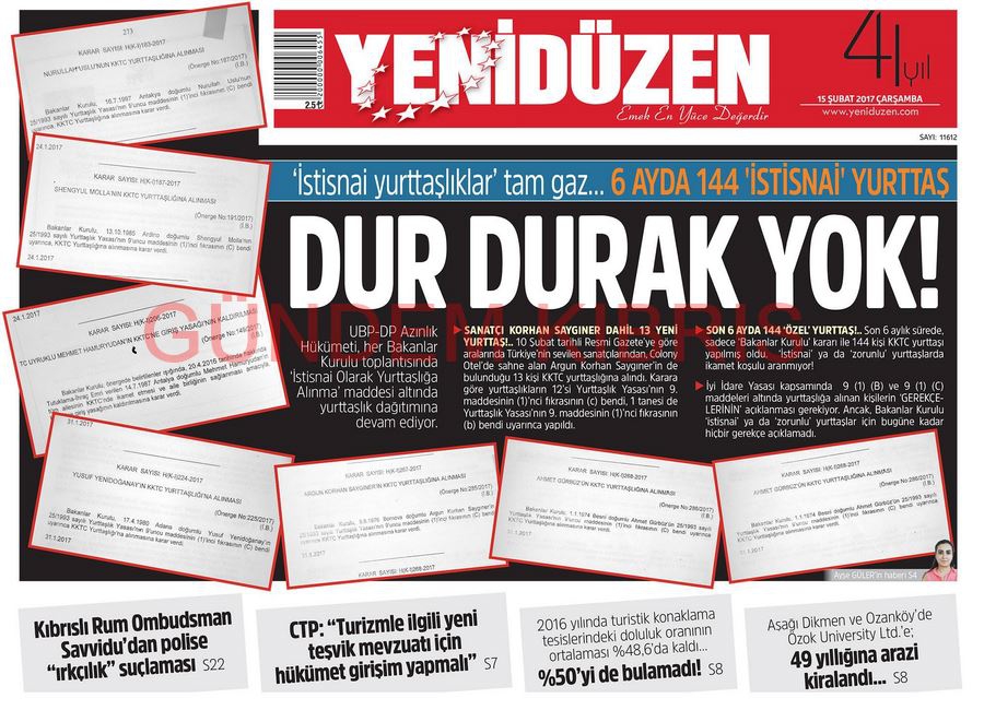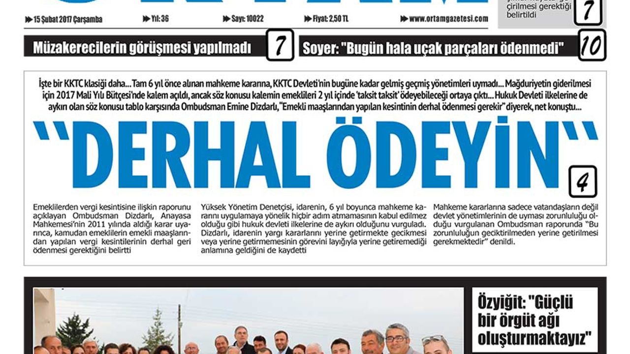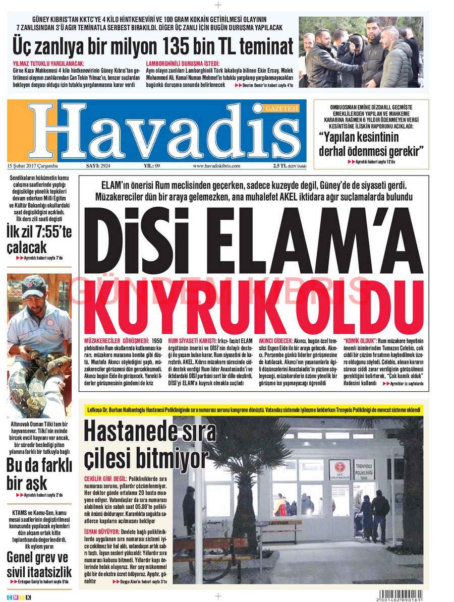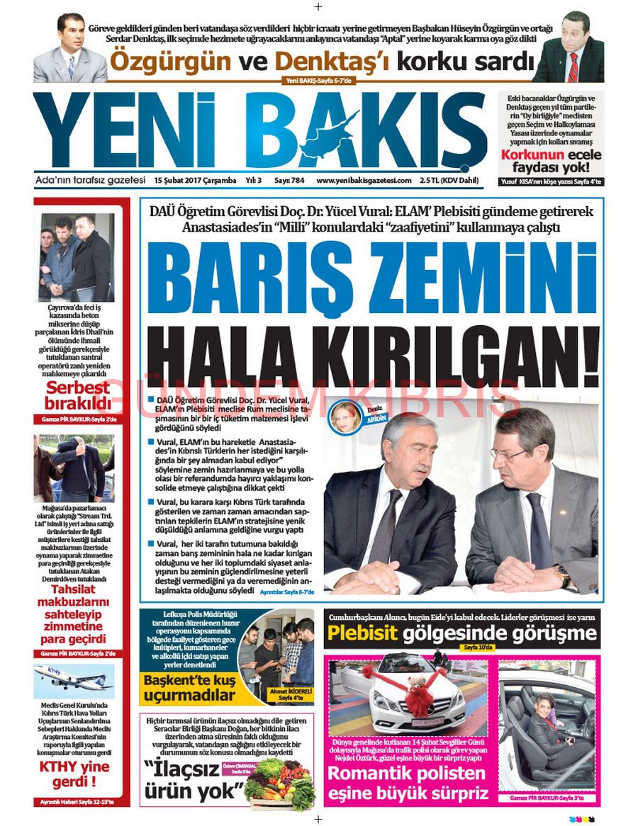 KKTC Gazete Manşetleri 15 Şubat 2017