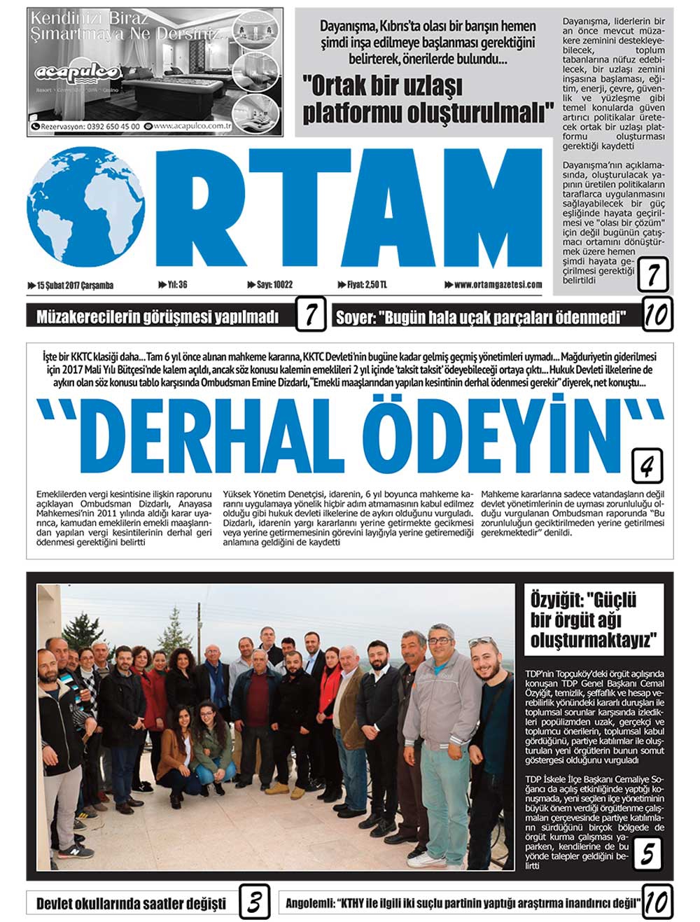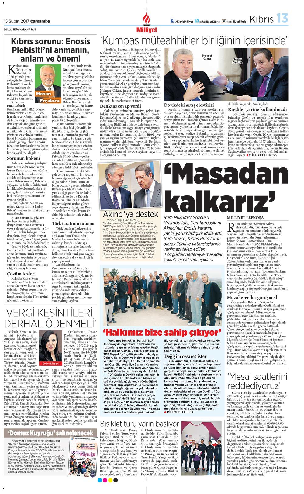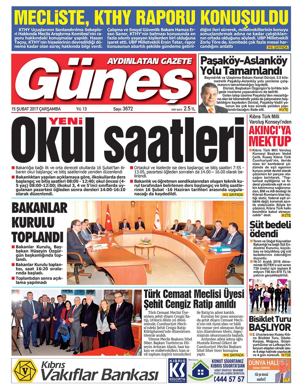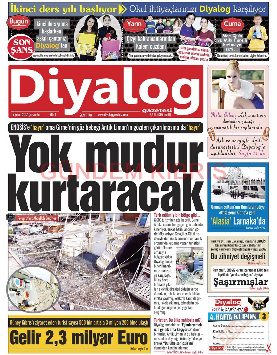 KKTC Gazete Manşetleri 15 Şubat 2017