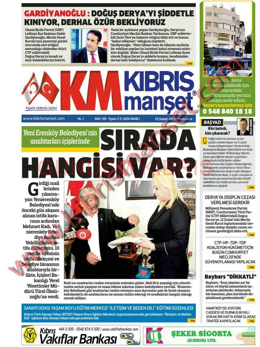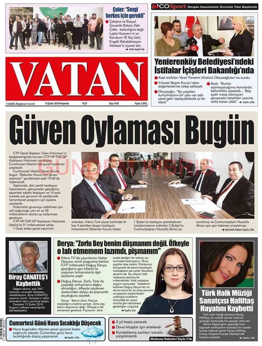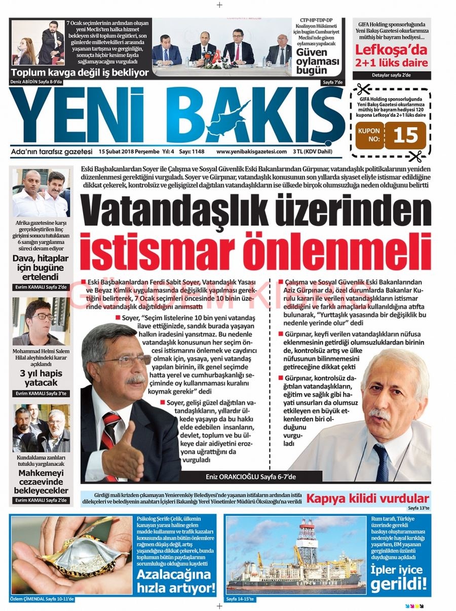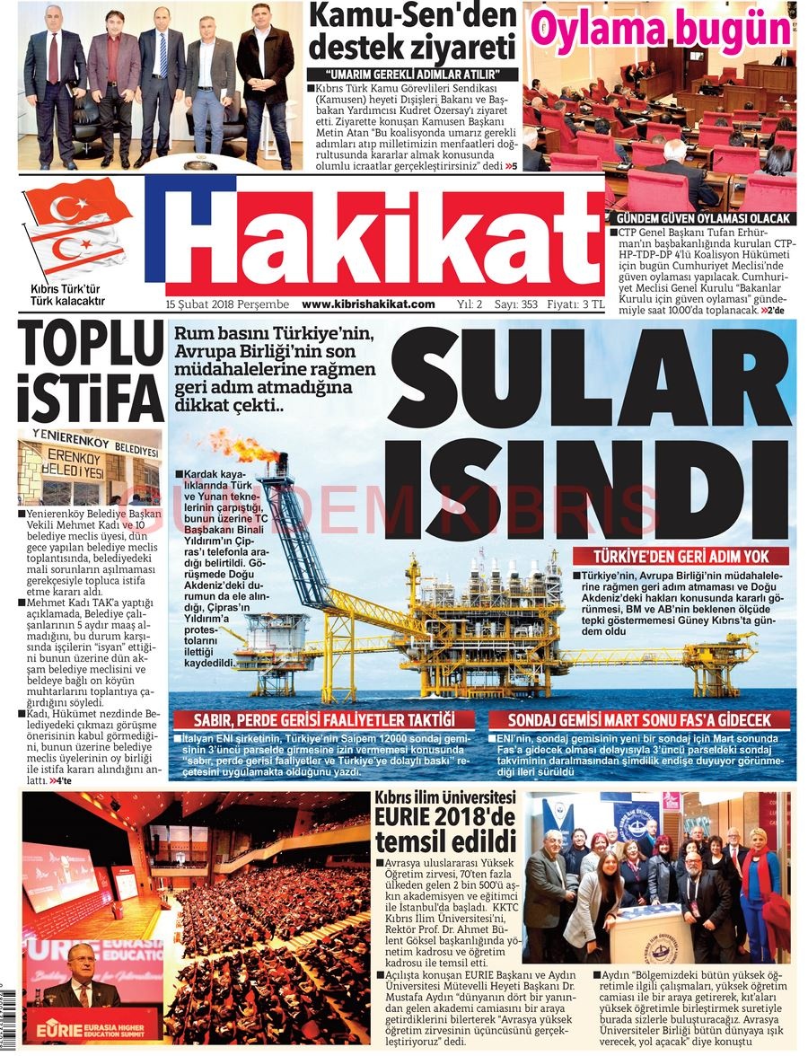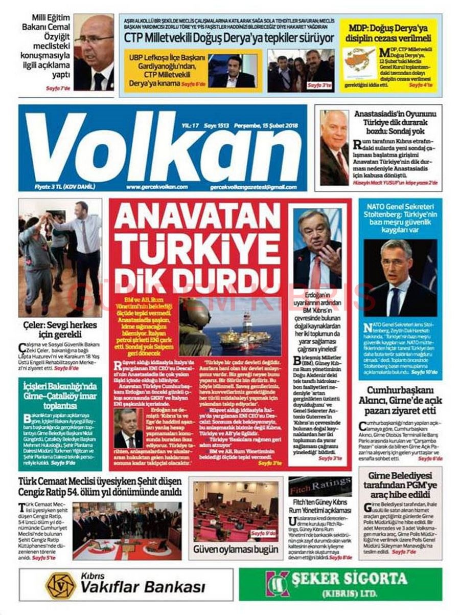 KKTC Gazete Manşetleri 15 Şubat 2018