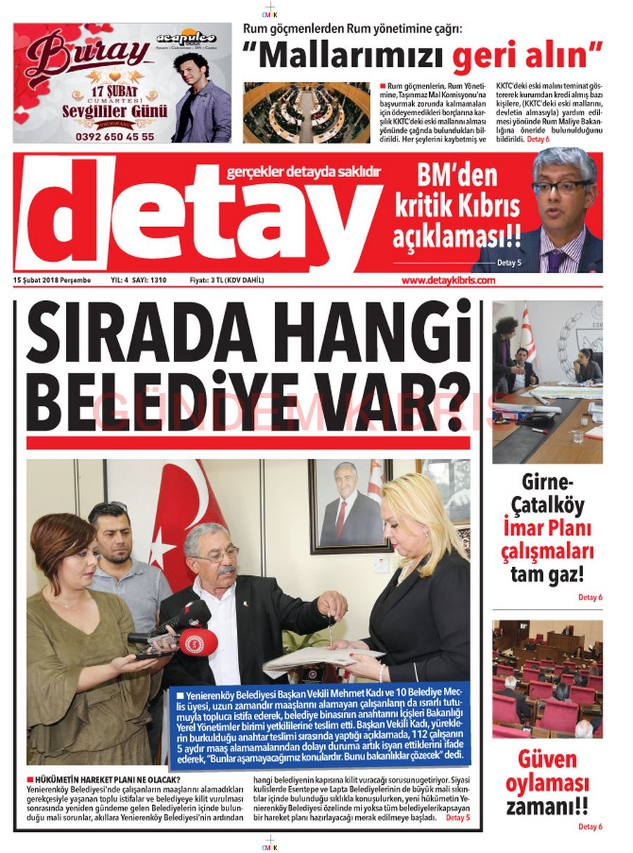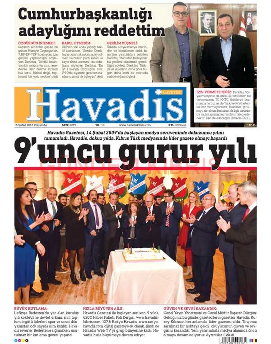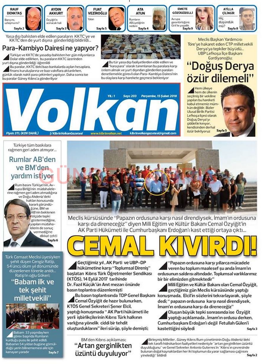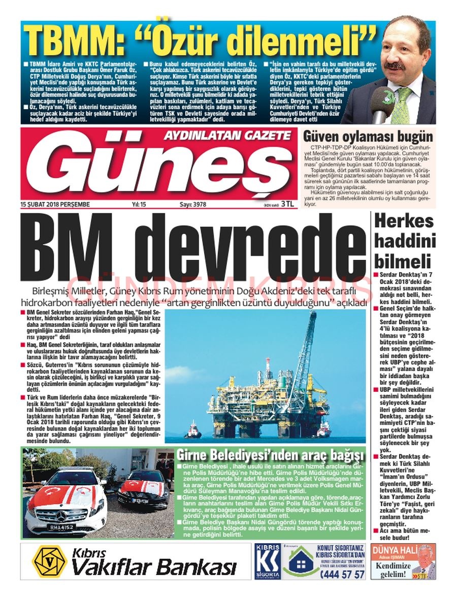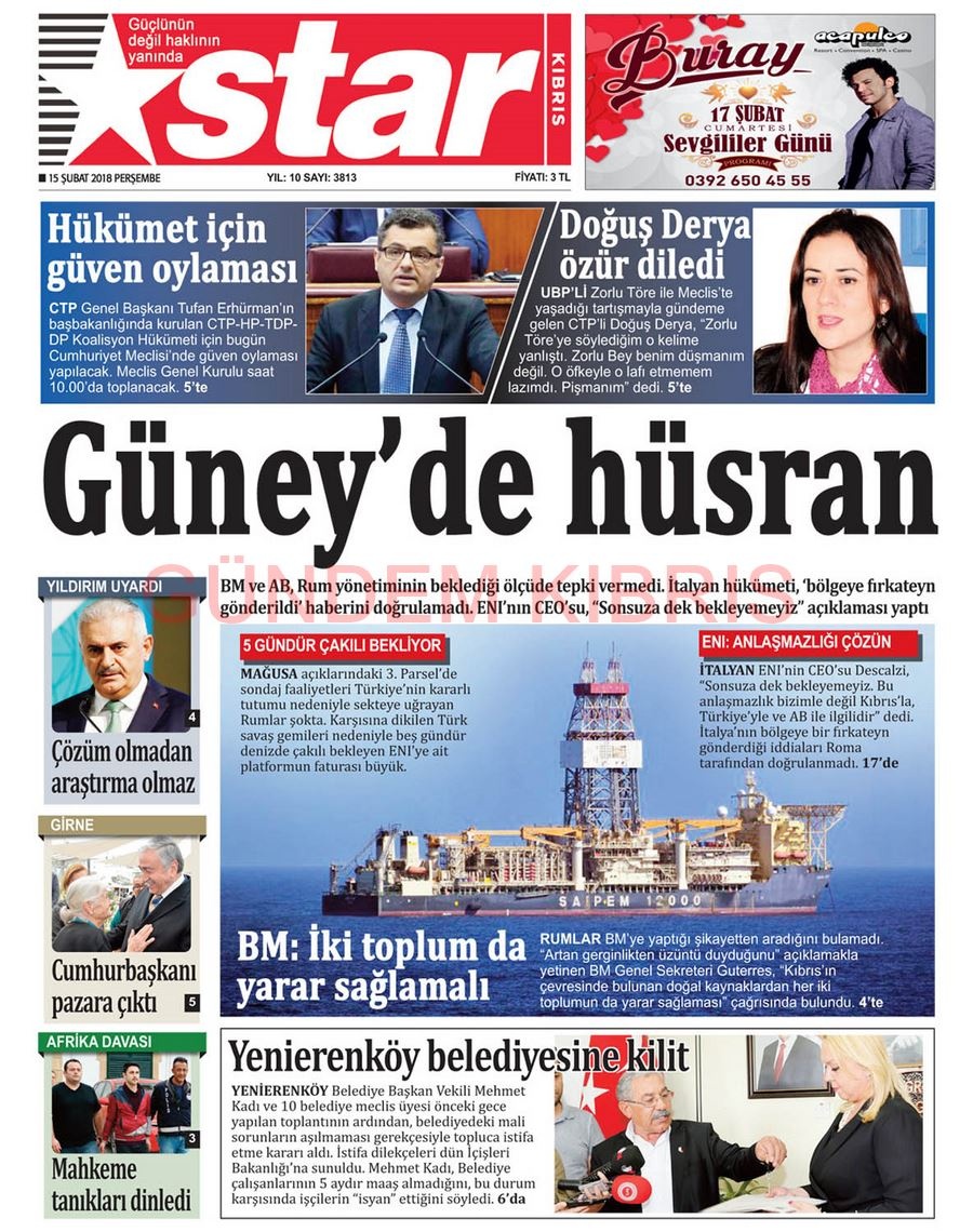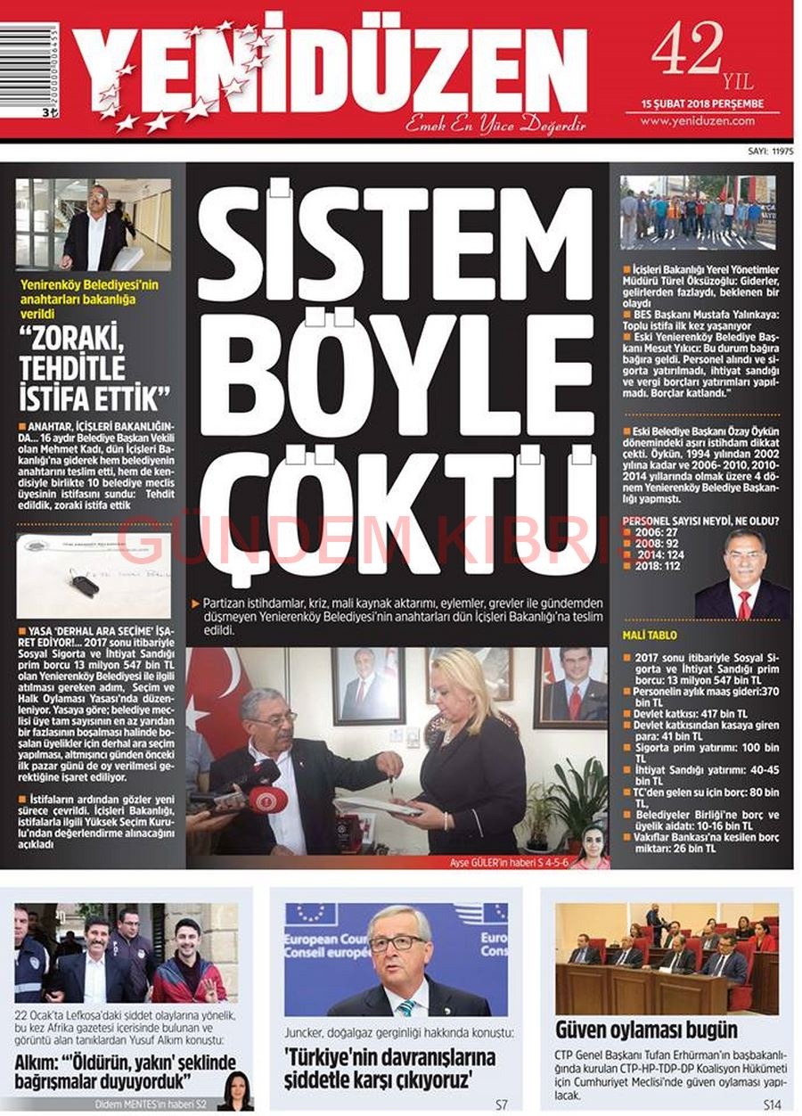 KKTC Gazete Manşetleri 15 Şubat 2018