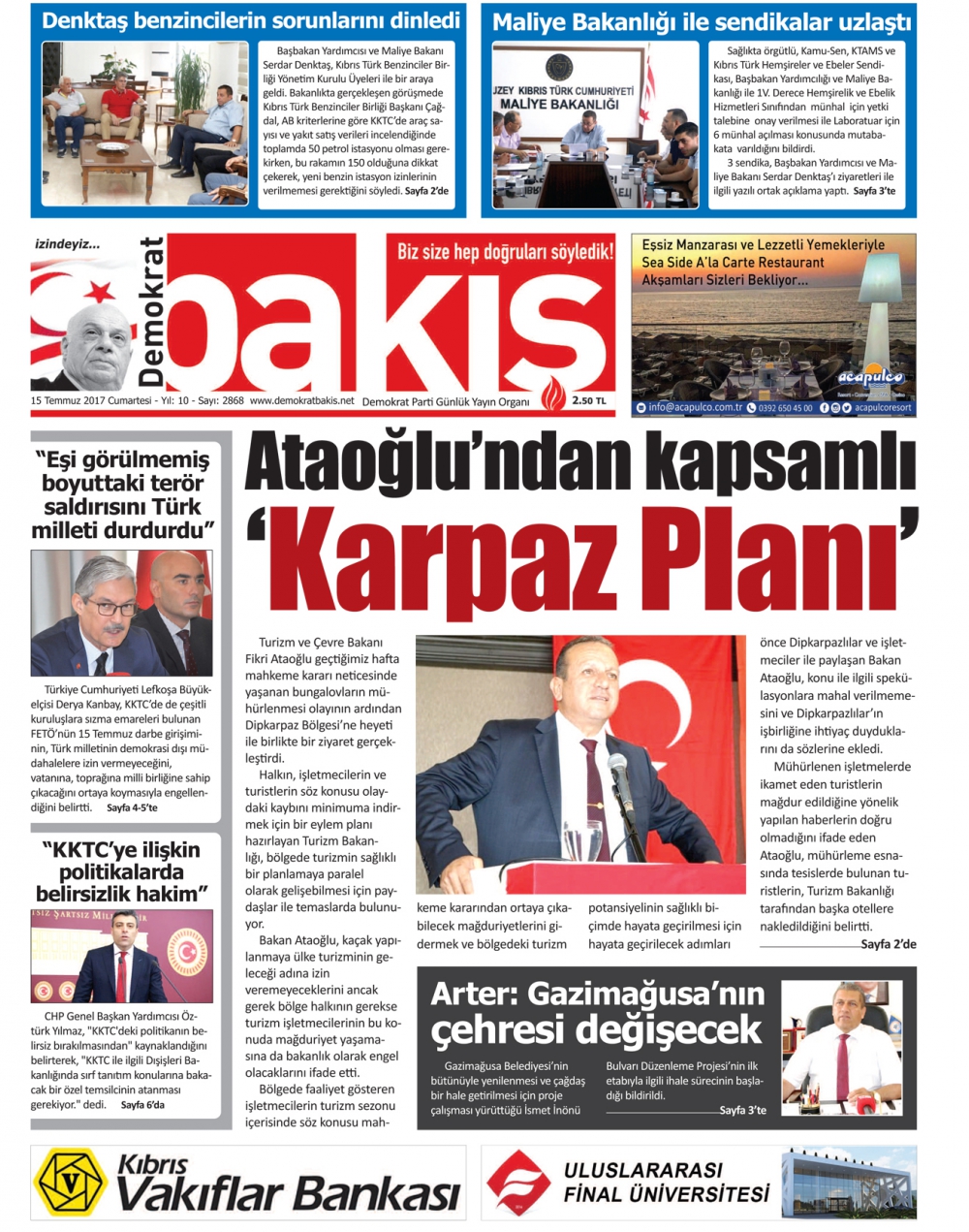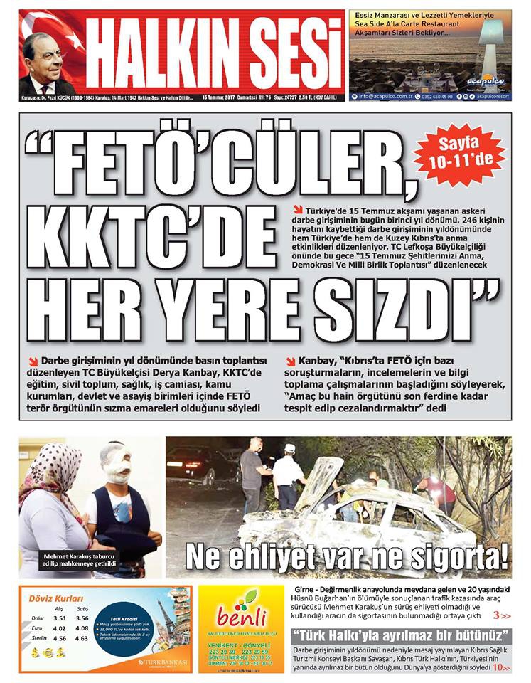 KKTC Gazete Manşetleri 15 Temmuz 2017