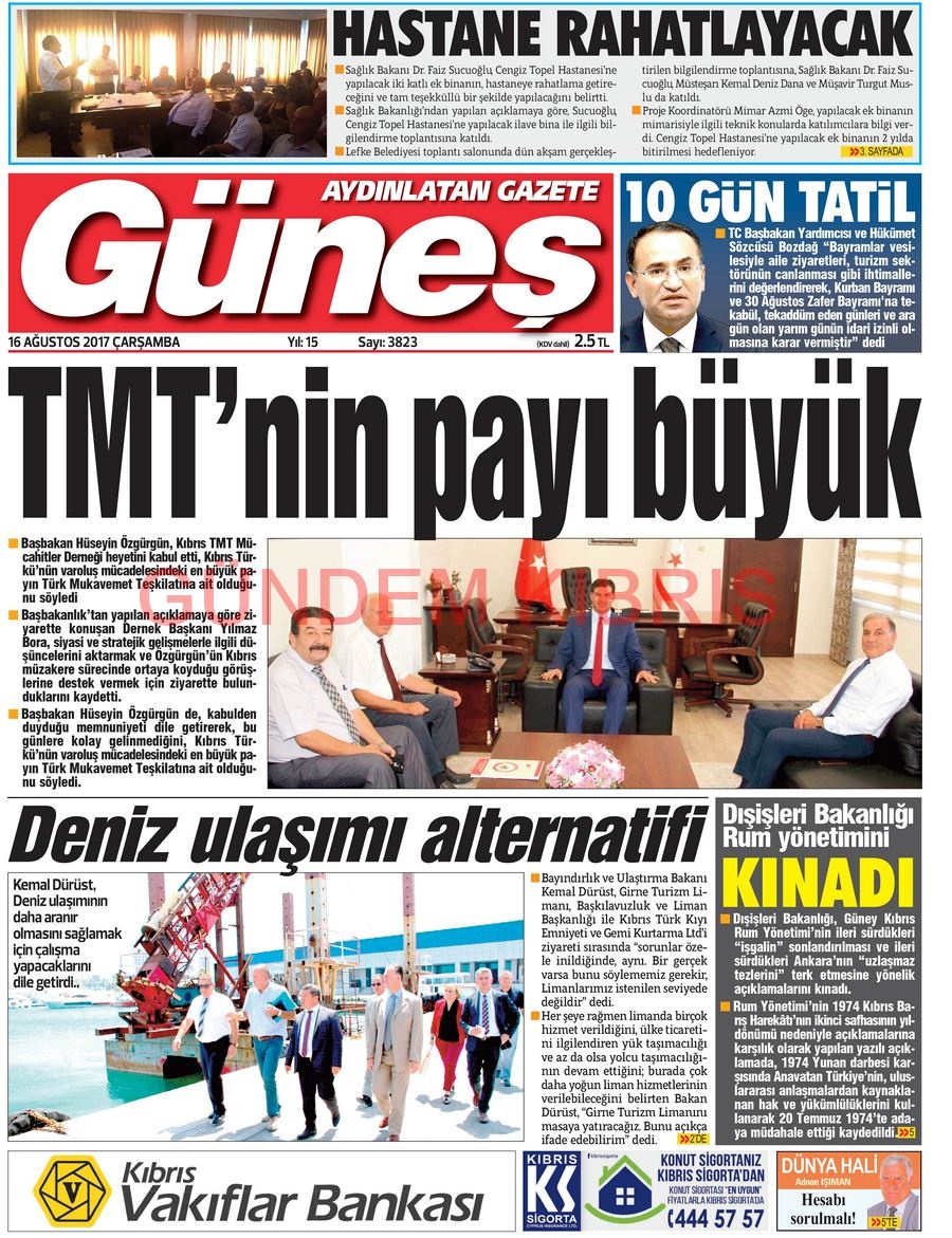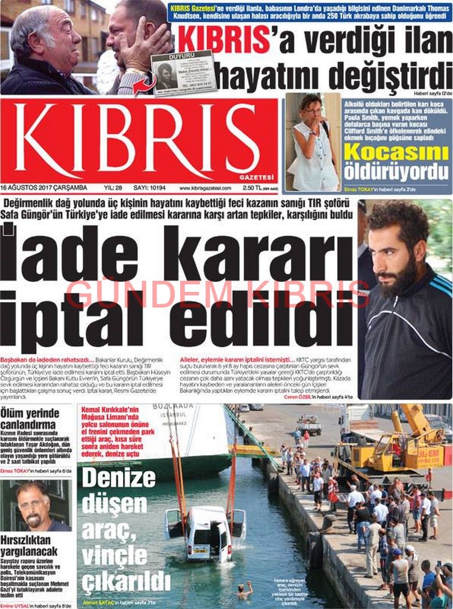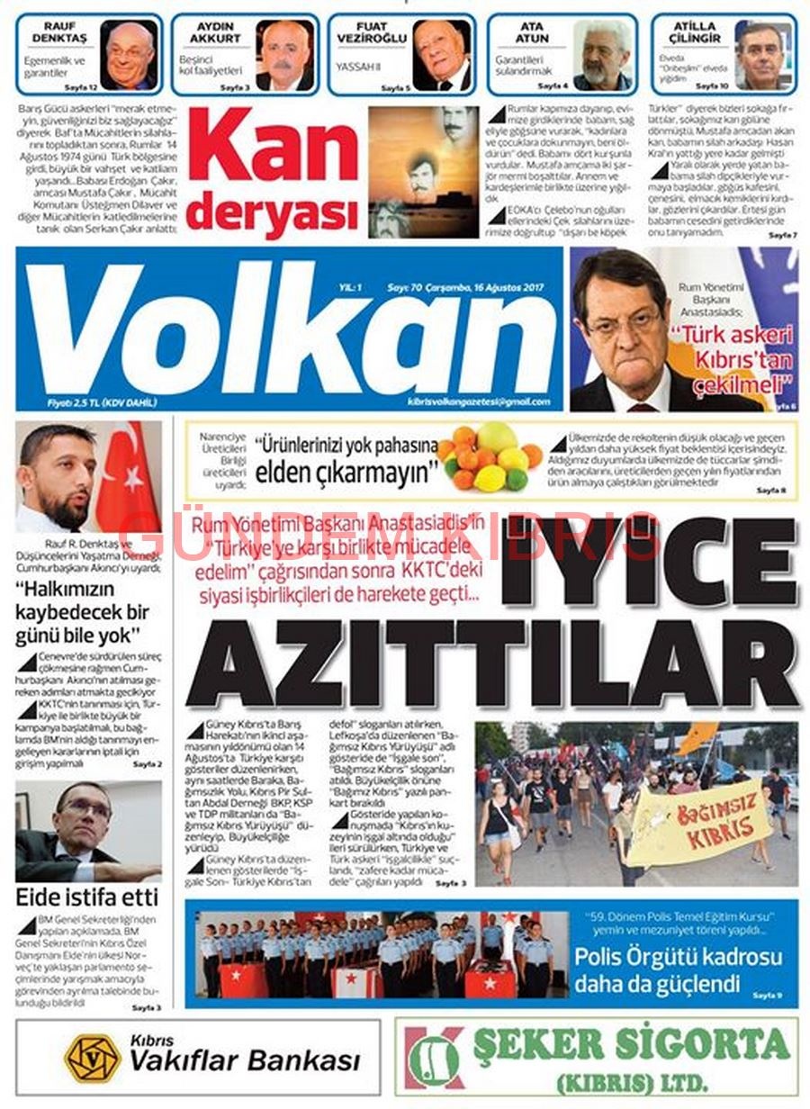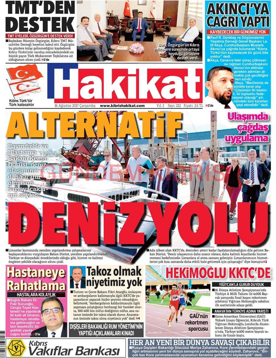 KKTC Gazete Manşetleri 16 Ağustos 2017
