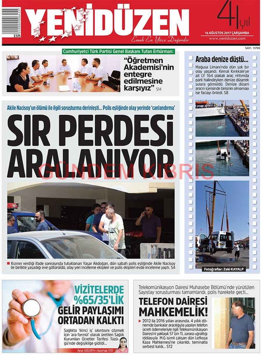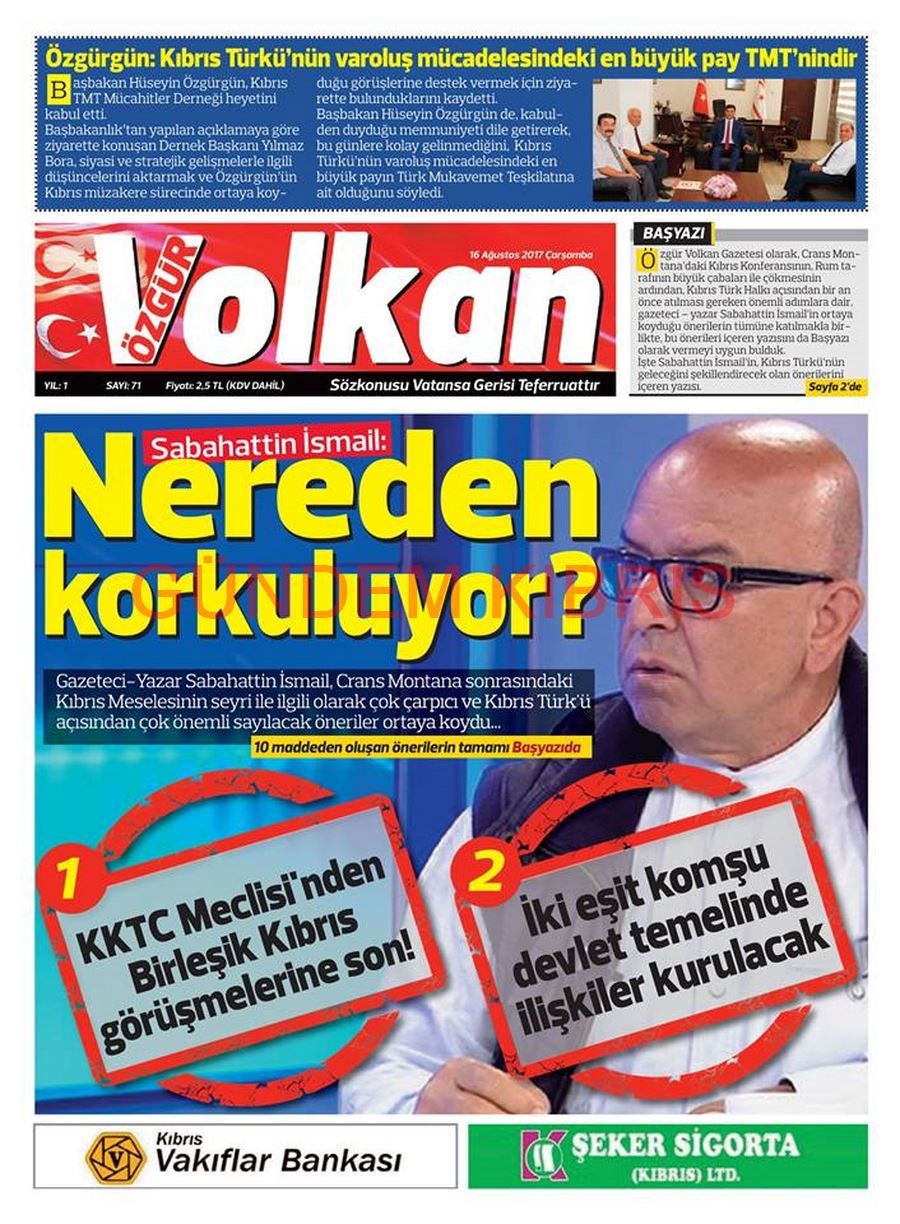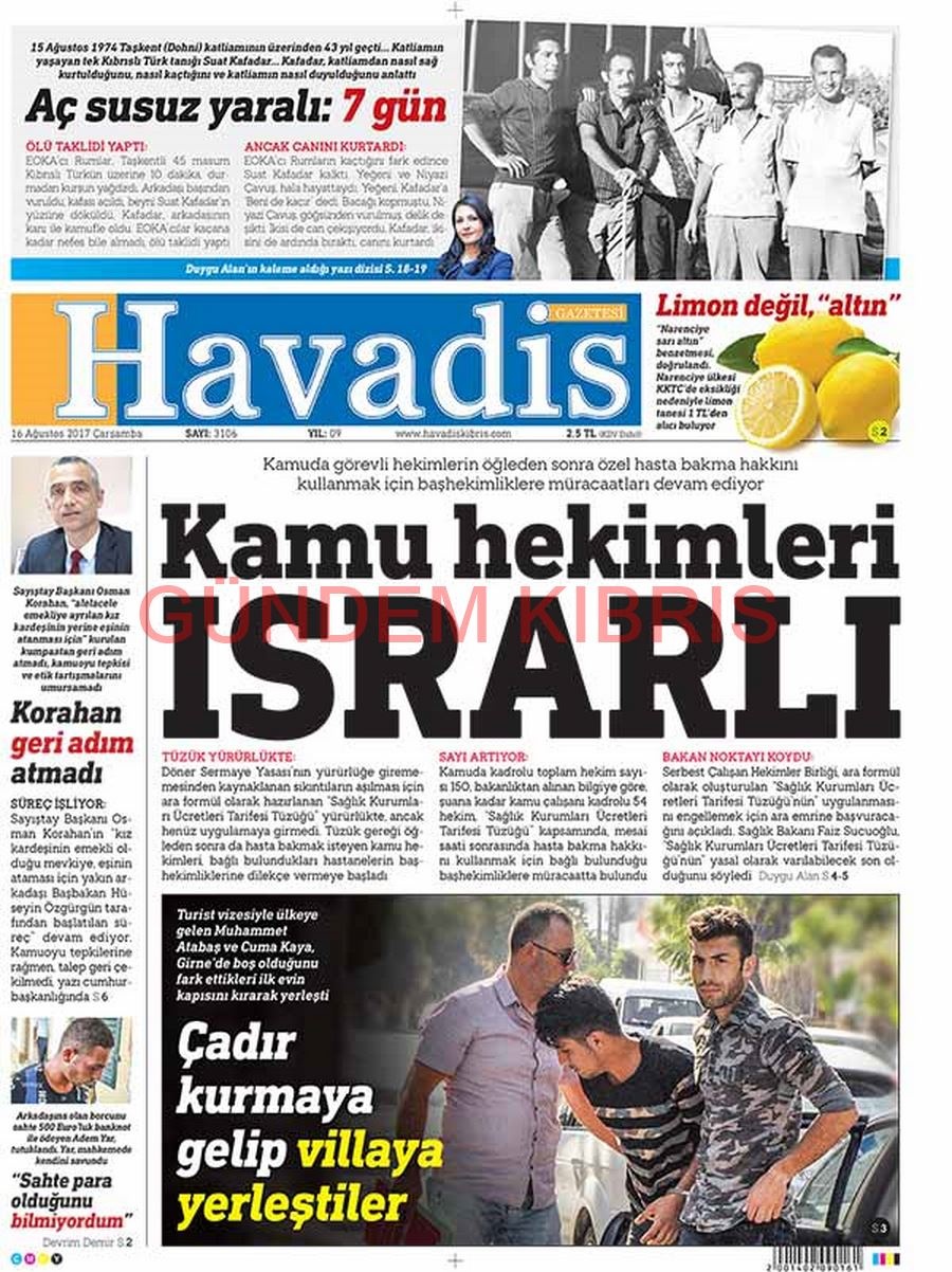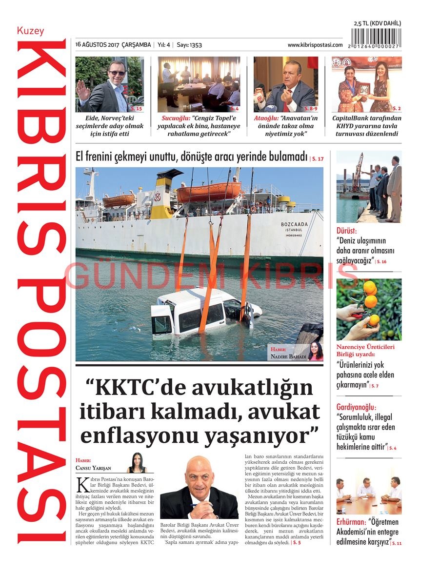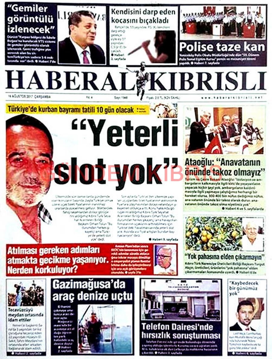 KKTC Gazete Manşetleri 16 Ağustos 2017