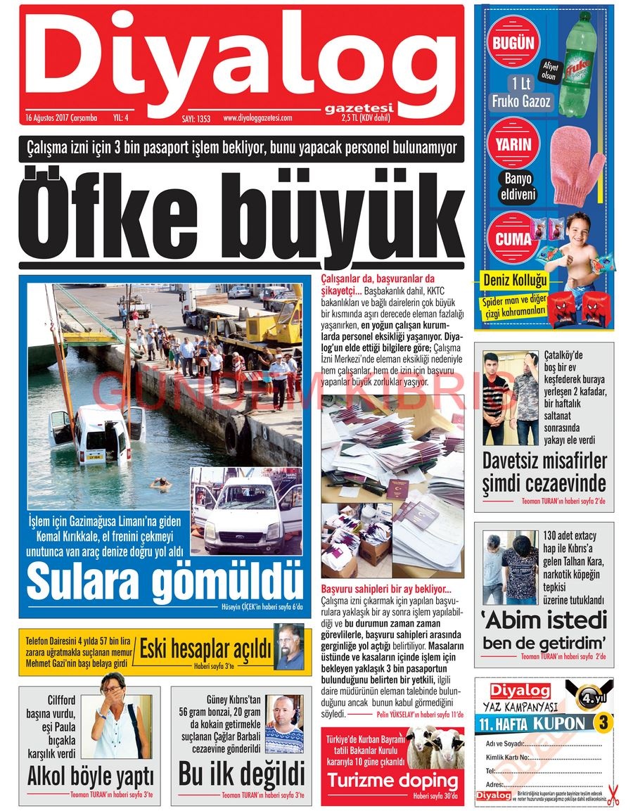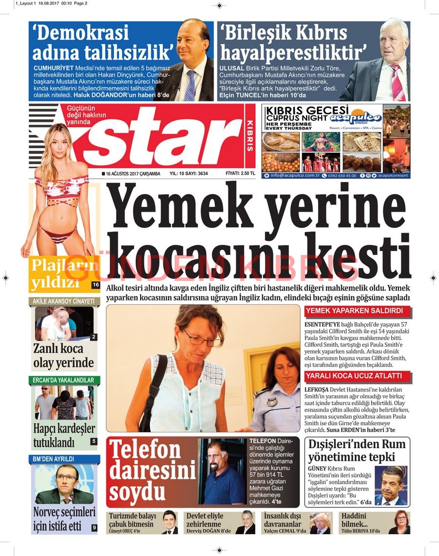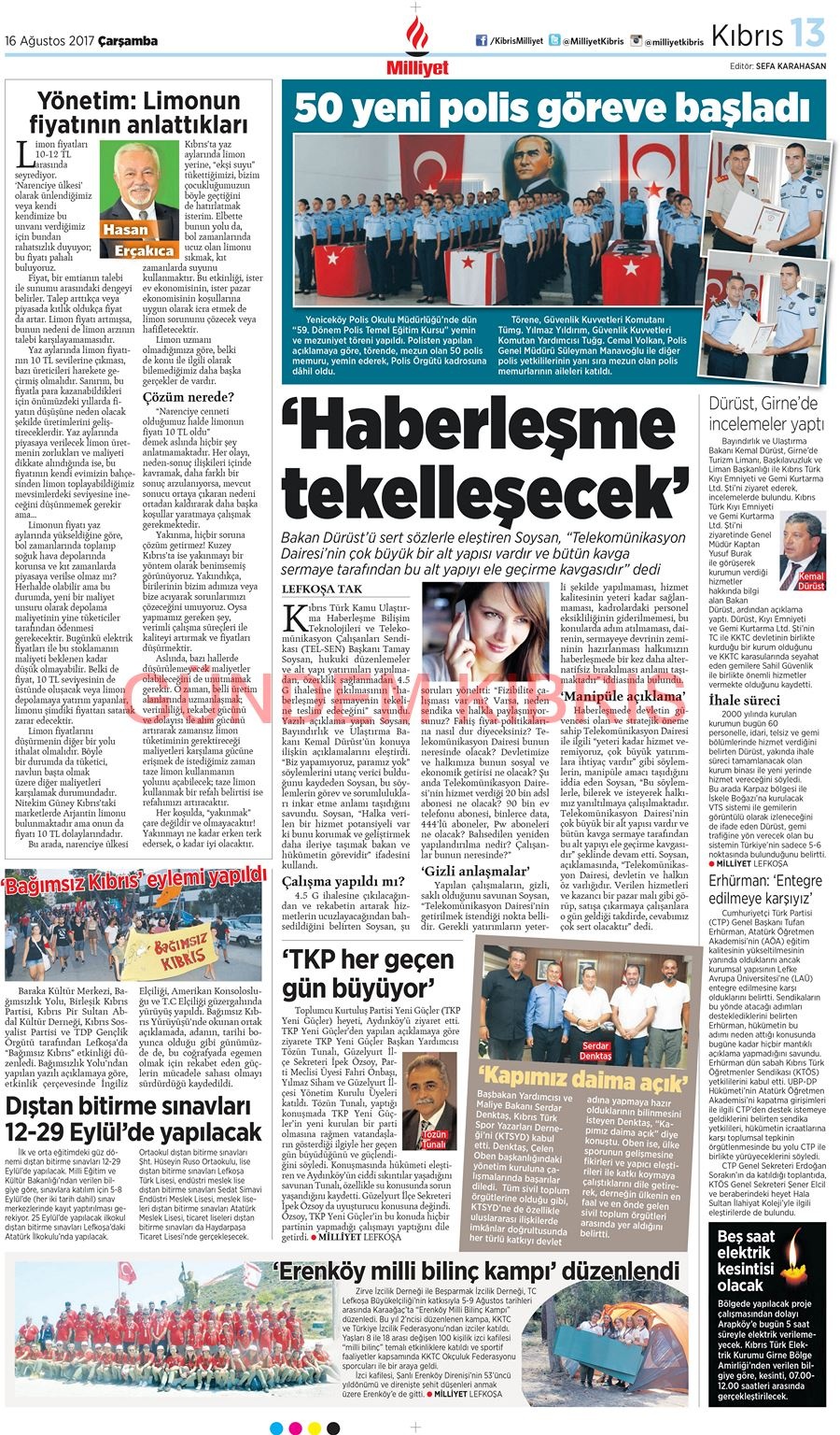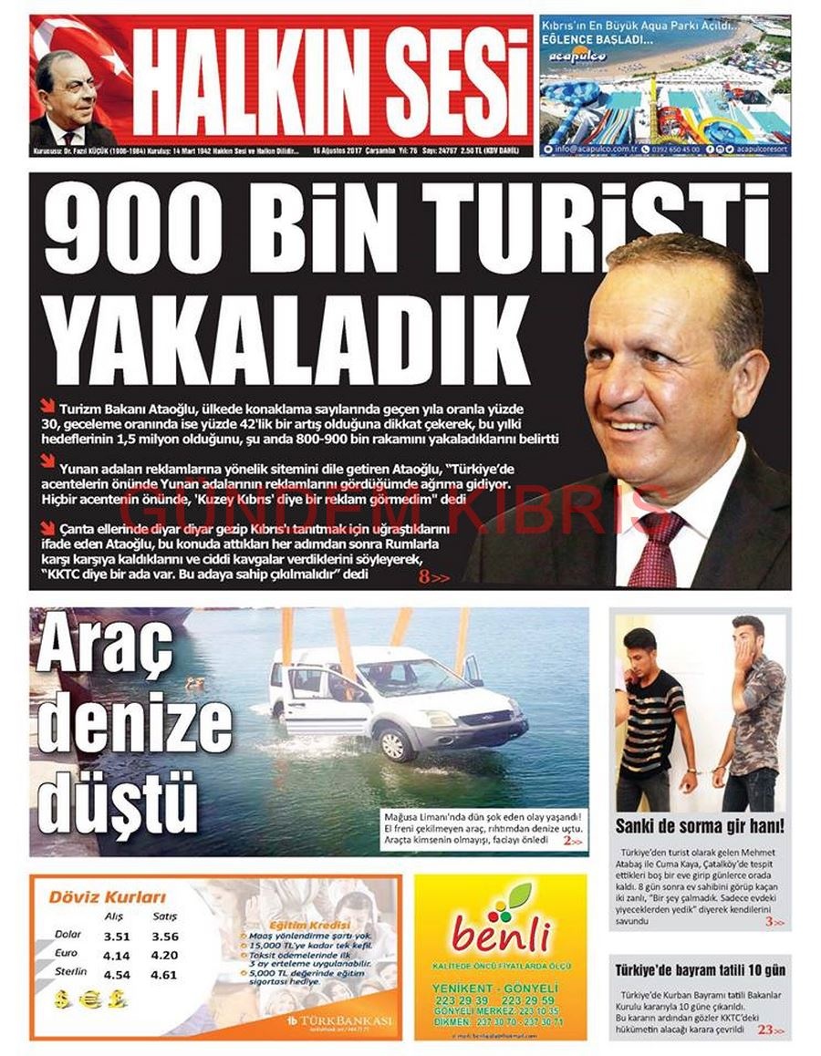 KKTC Gazete Manşetleri 16 Ağustos 2017
