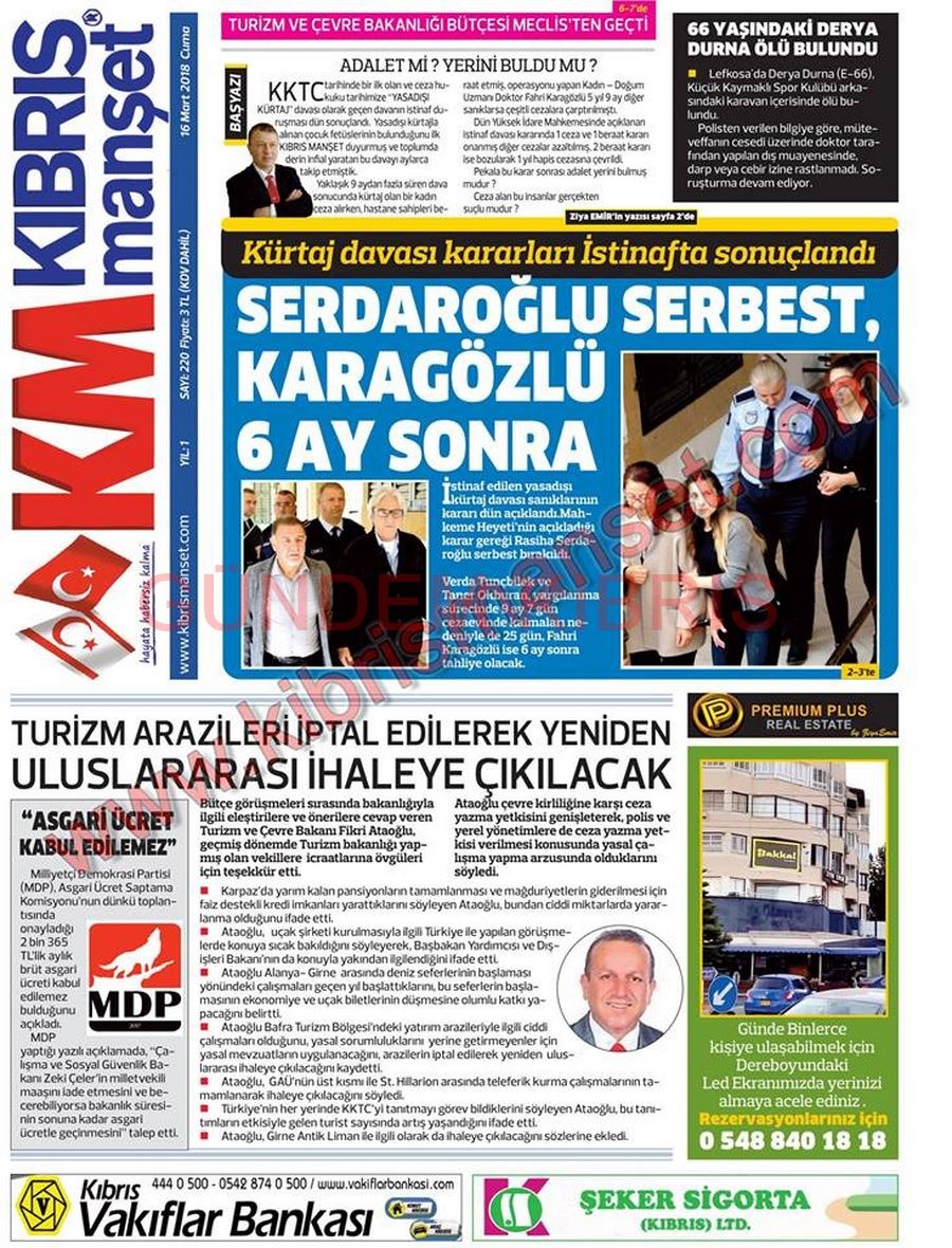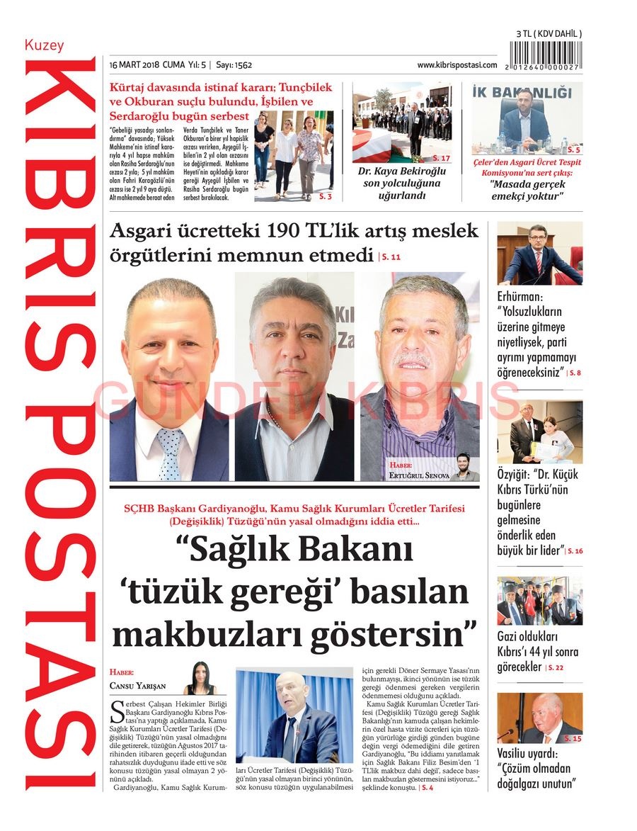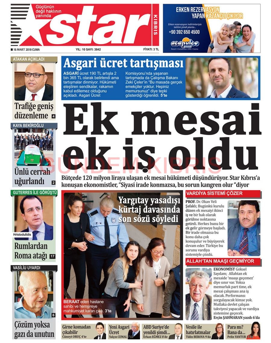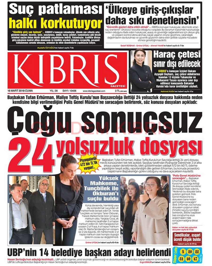 KKTC Gazete Manşetleri 16 Mart 2018