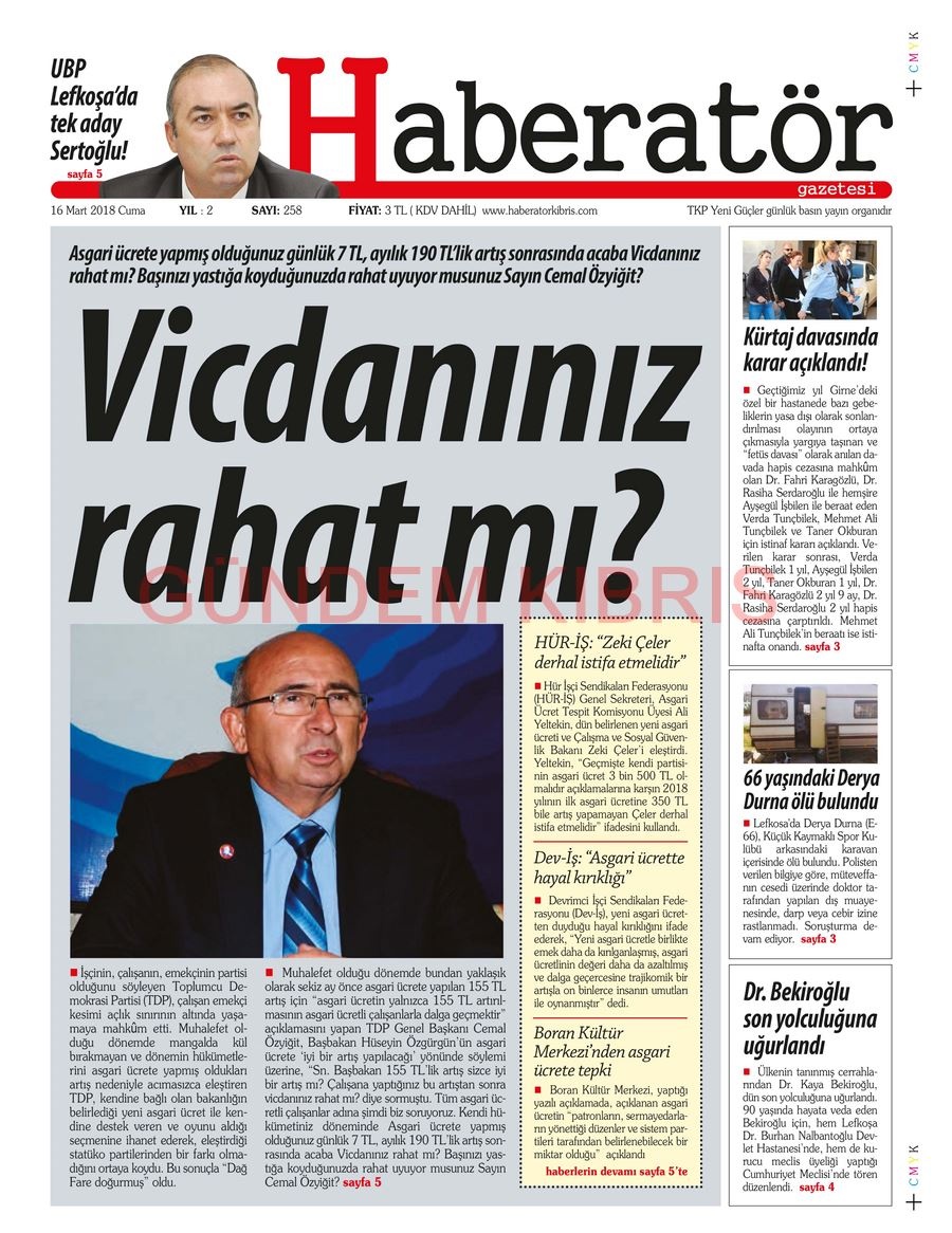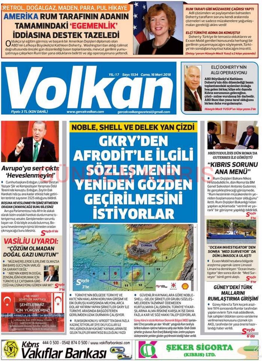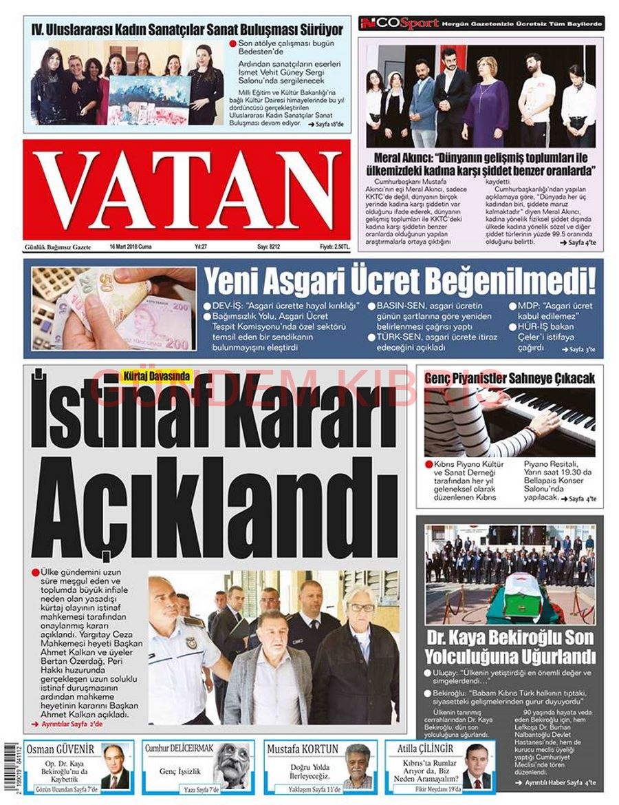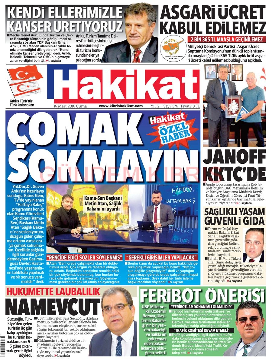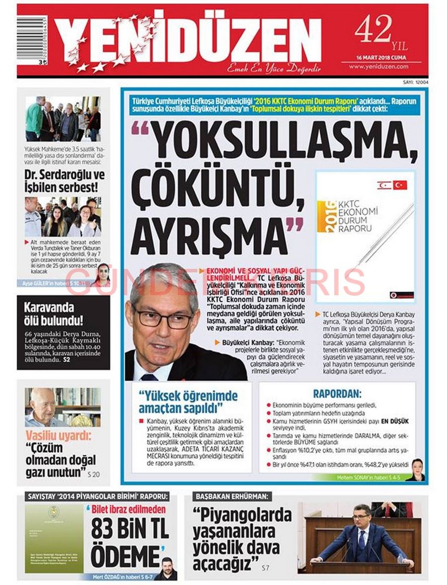 KKTC Gazete Manşetleri 16 Mart 2018