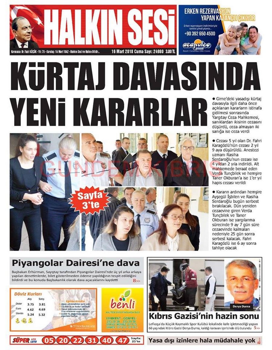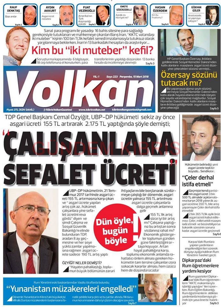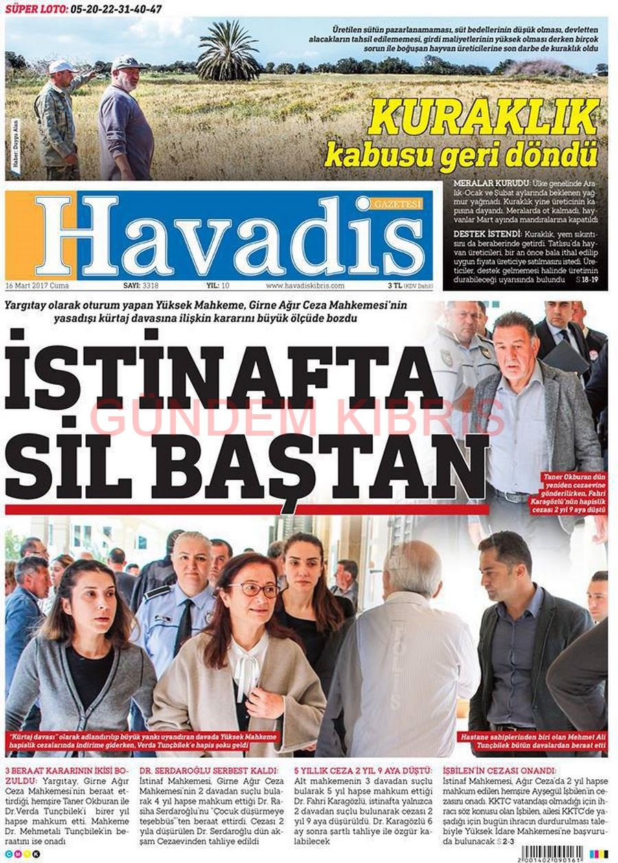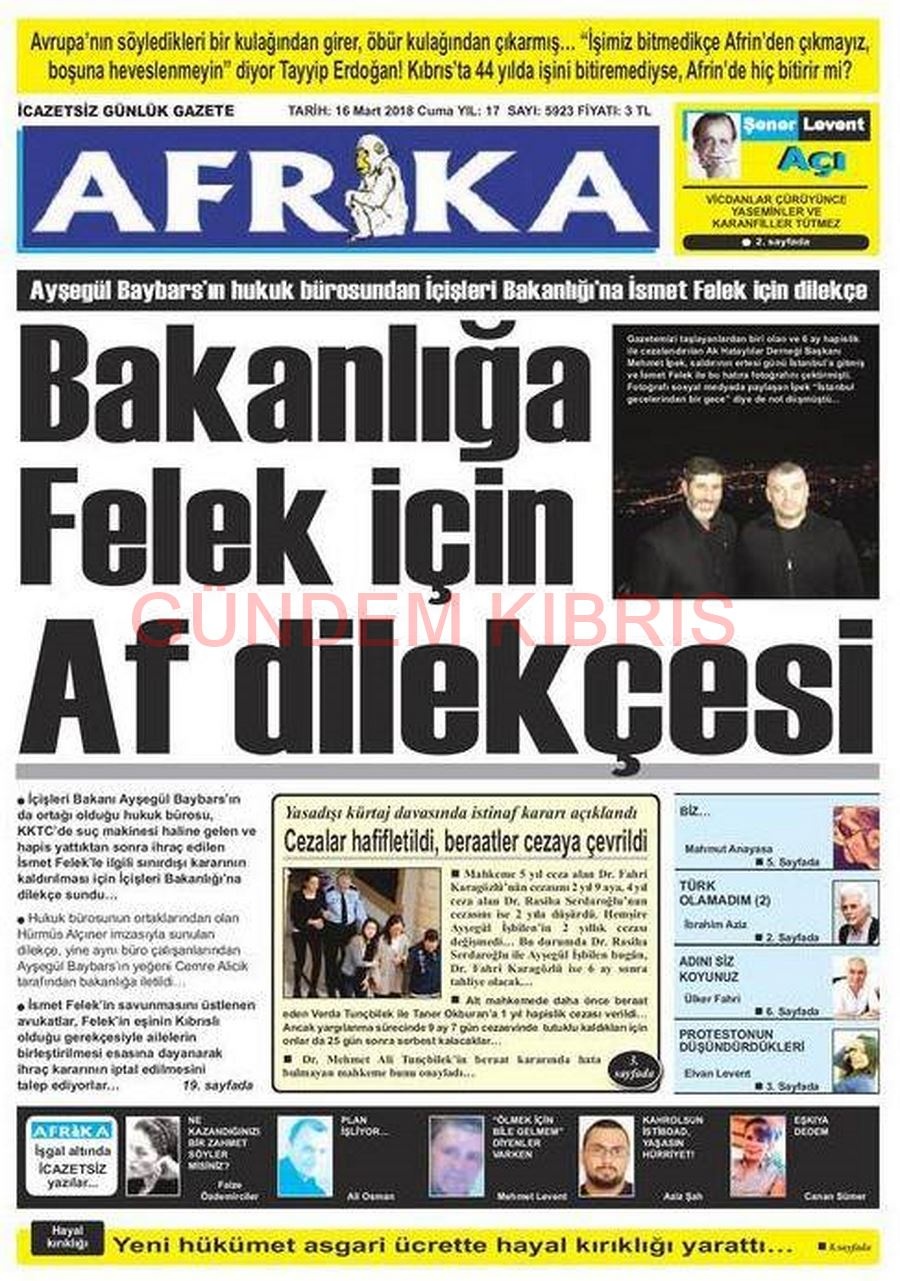 KKTC Gazete Manşetleri 16 Mart 2018