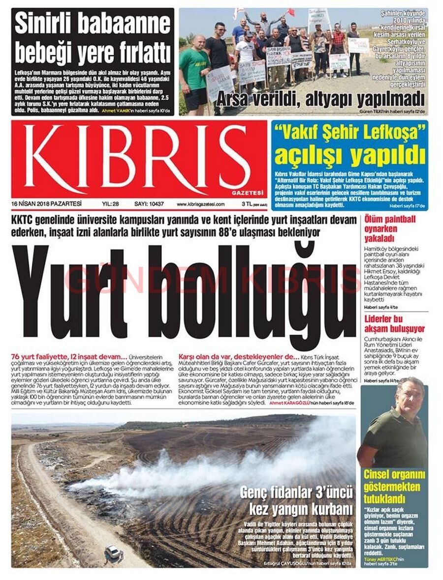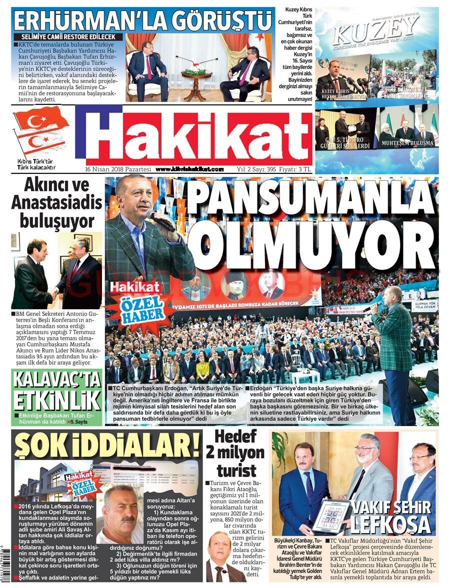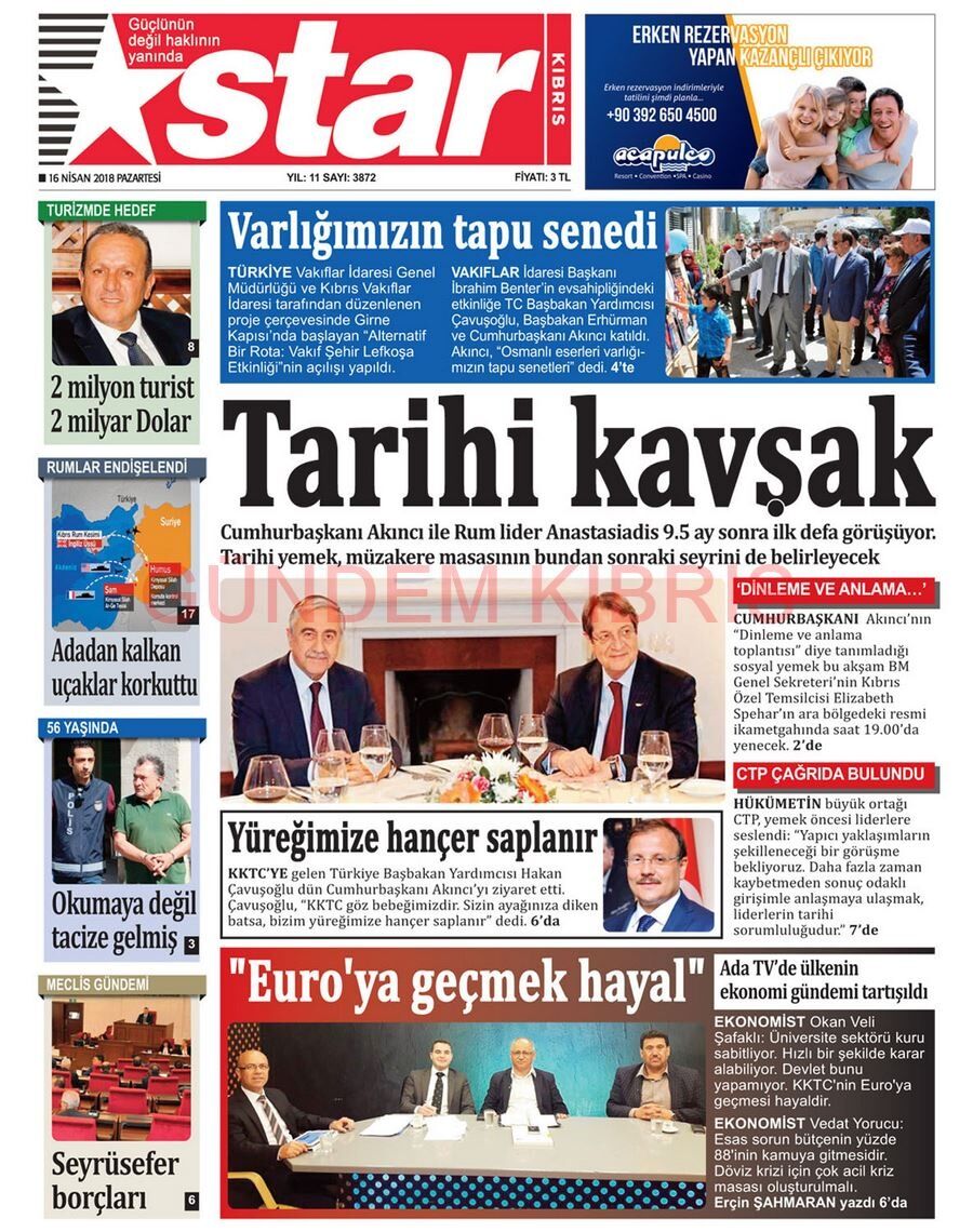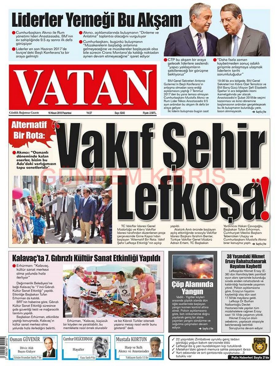 KKTC Gazete Manşetleri 16 Nisan 2018