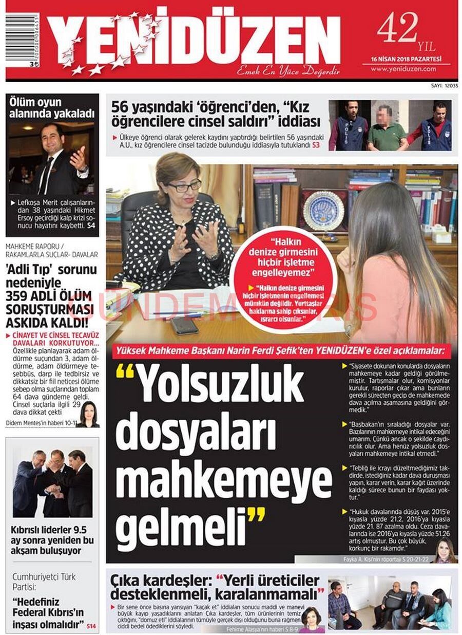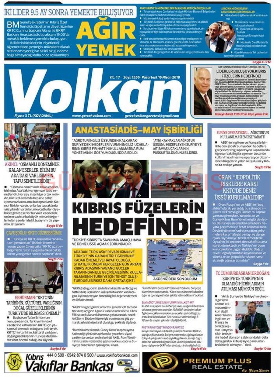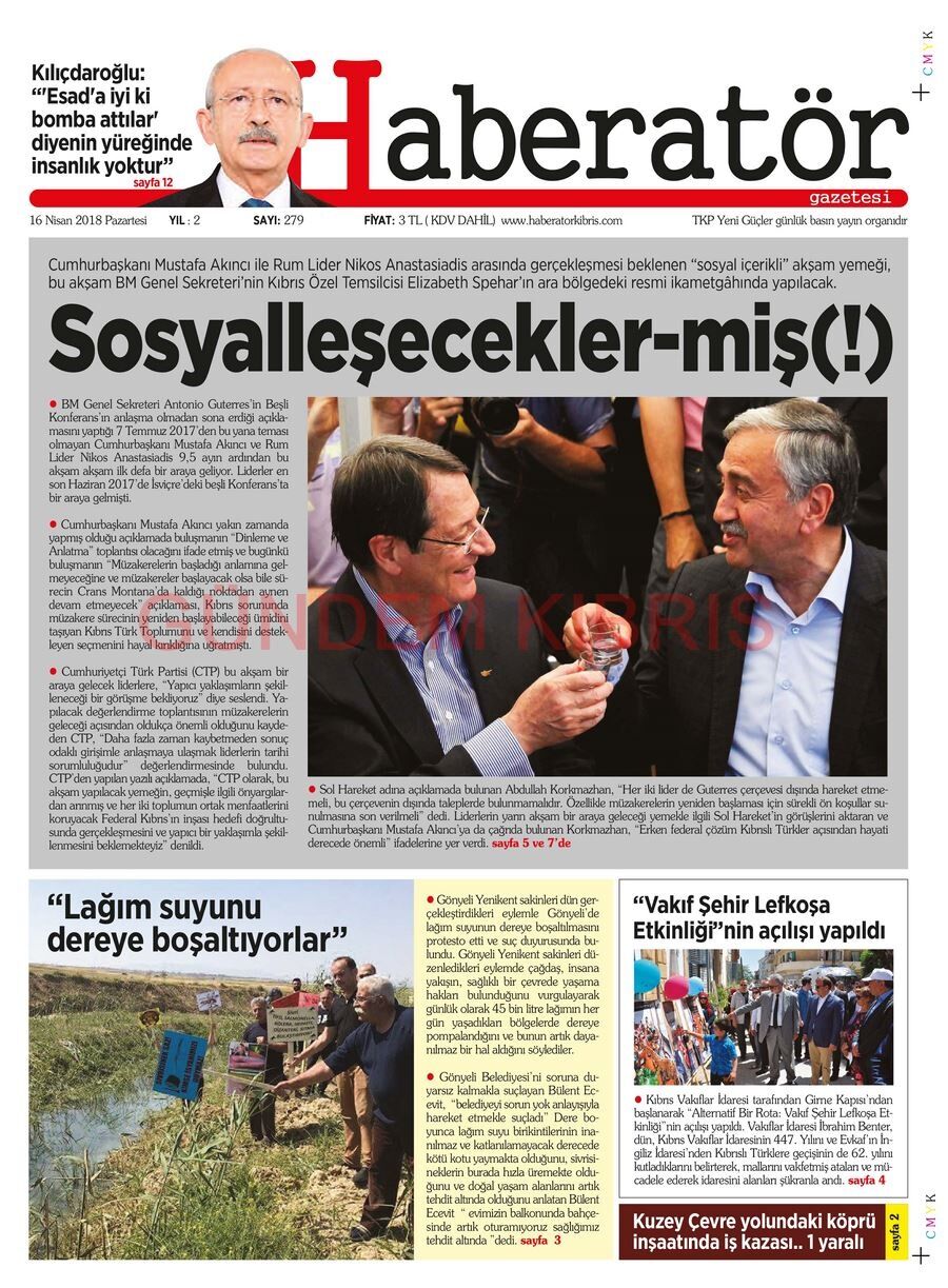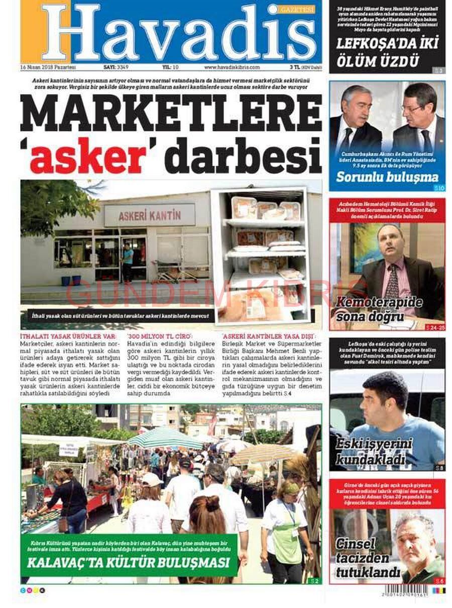 KKTC Gazete Manşetleri 16 Nisan 2018