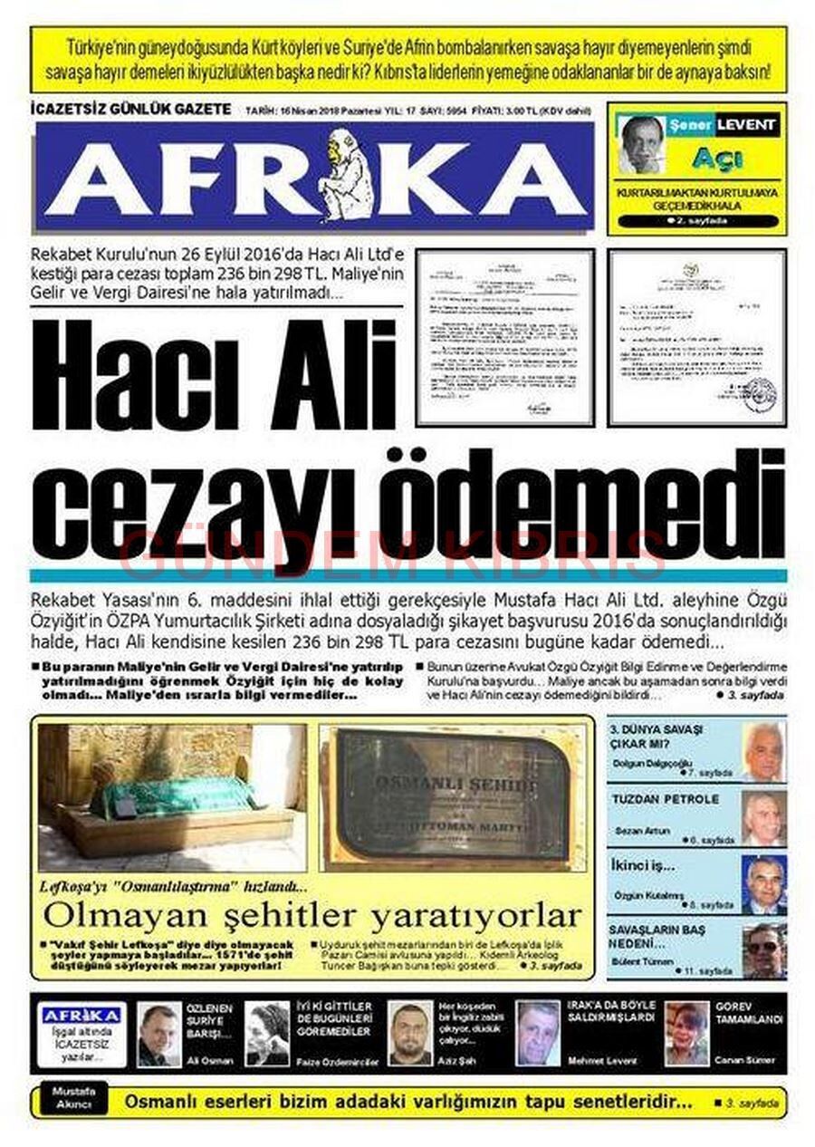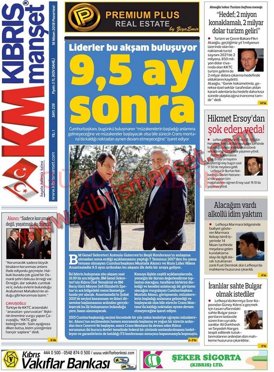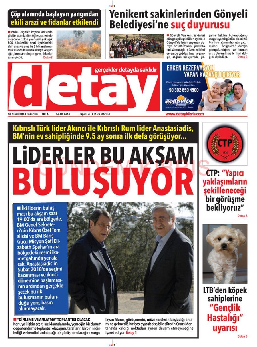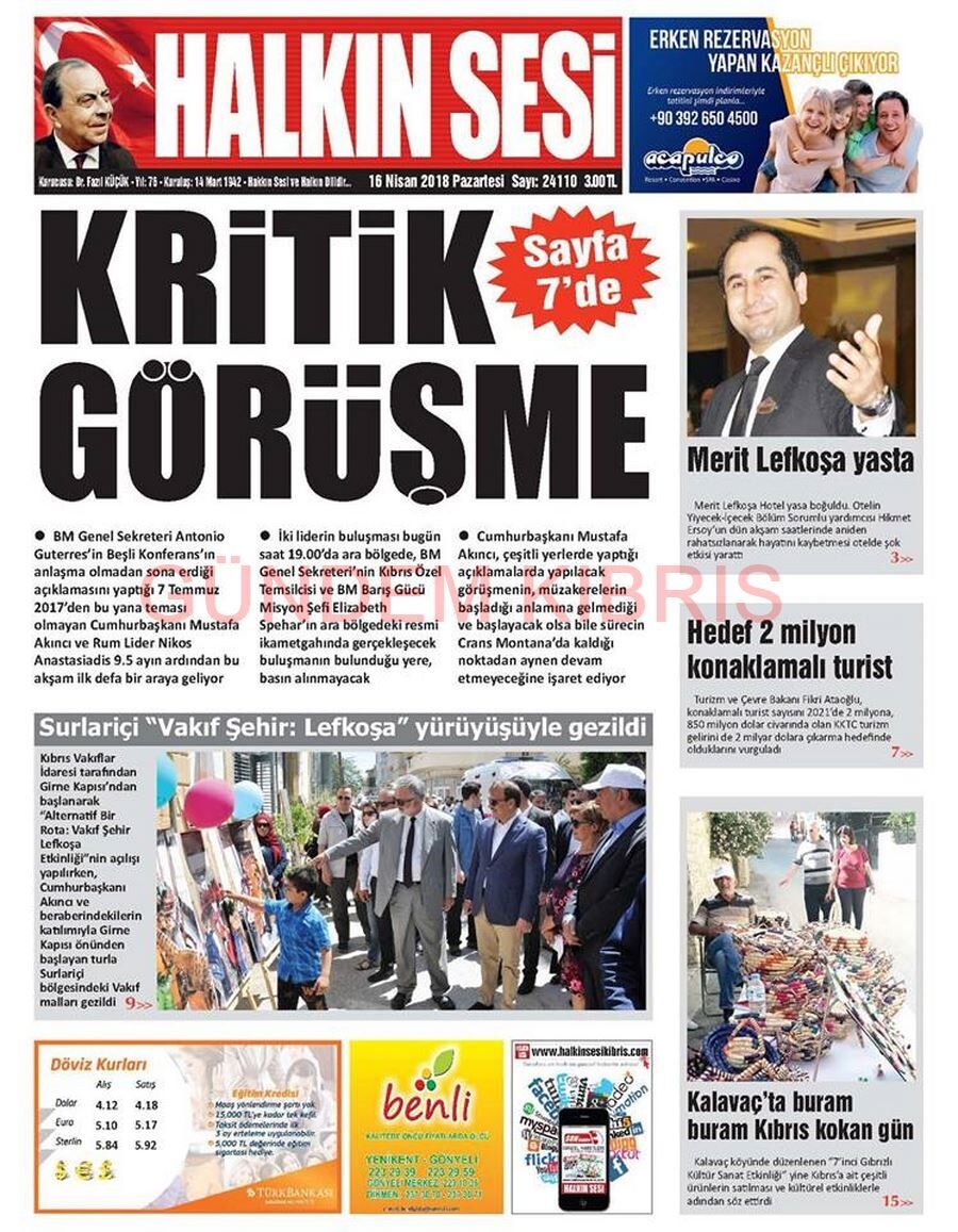 KKTC Gazete Manşetleri 16 Nisan 2018
