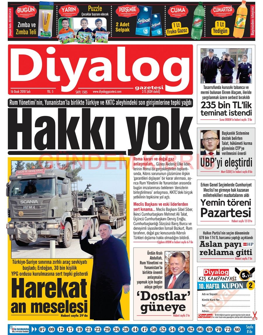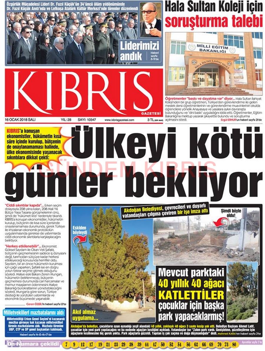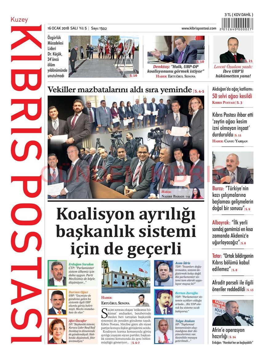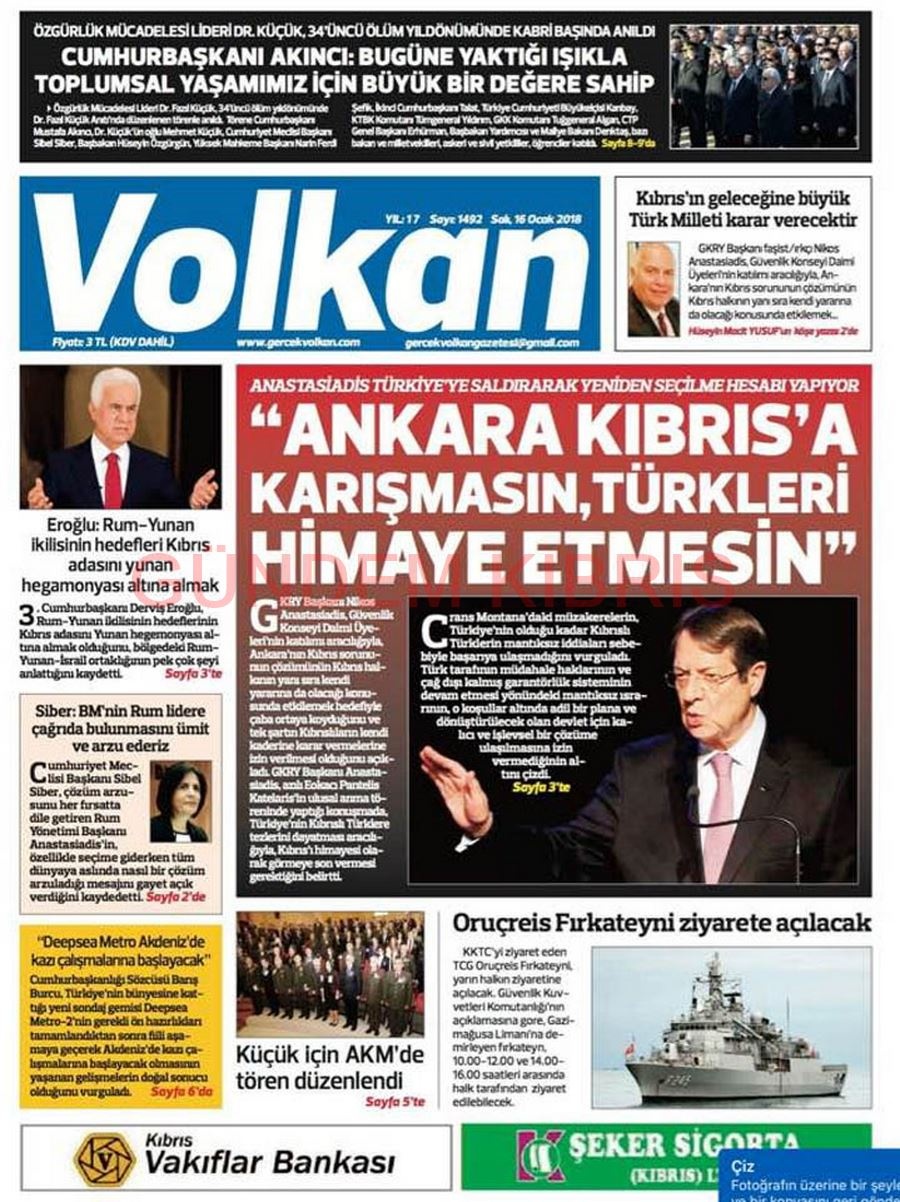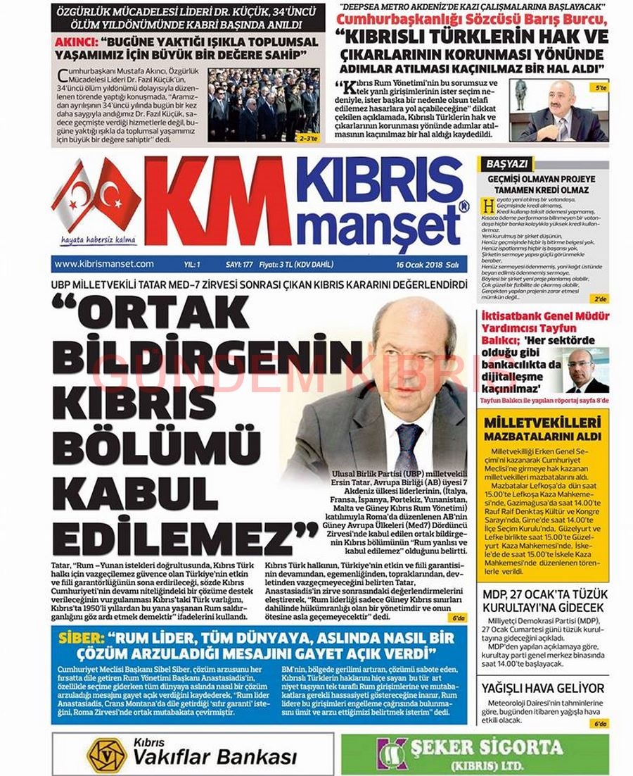 KKTC Gazete Manşetleri 16 Ocak 2018