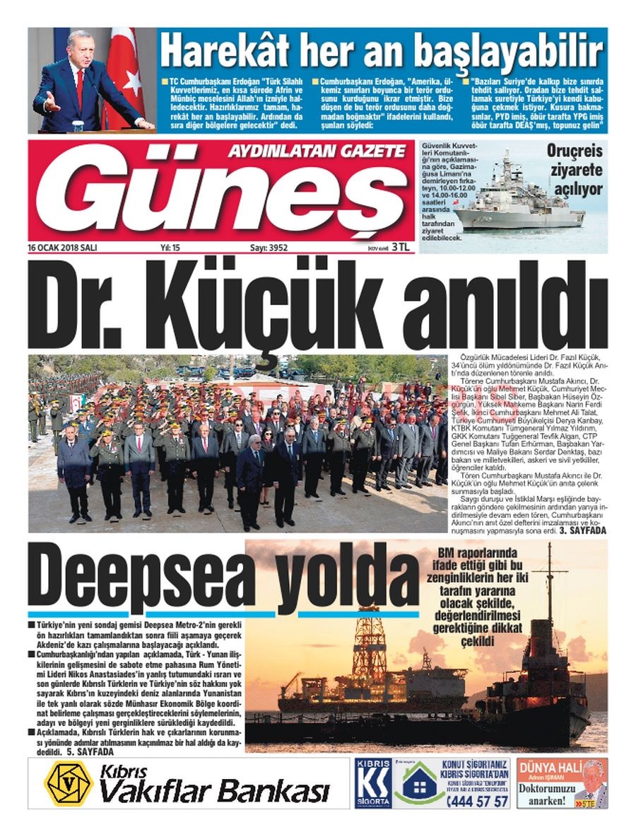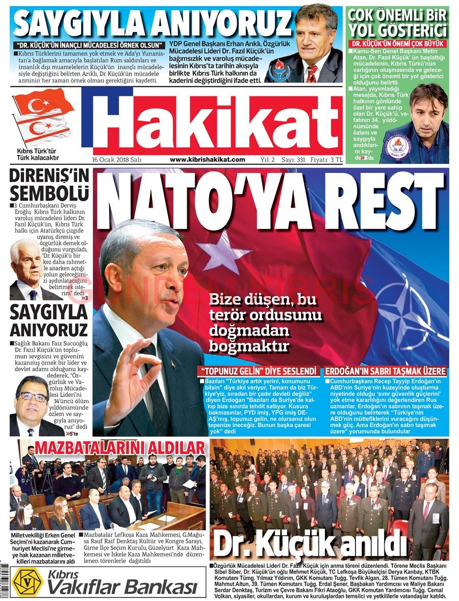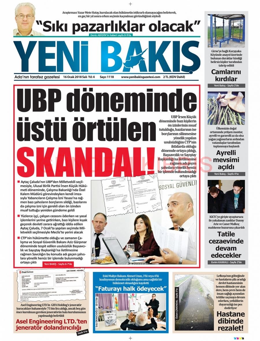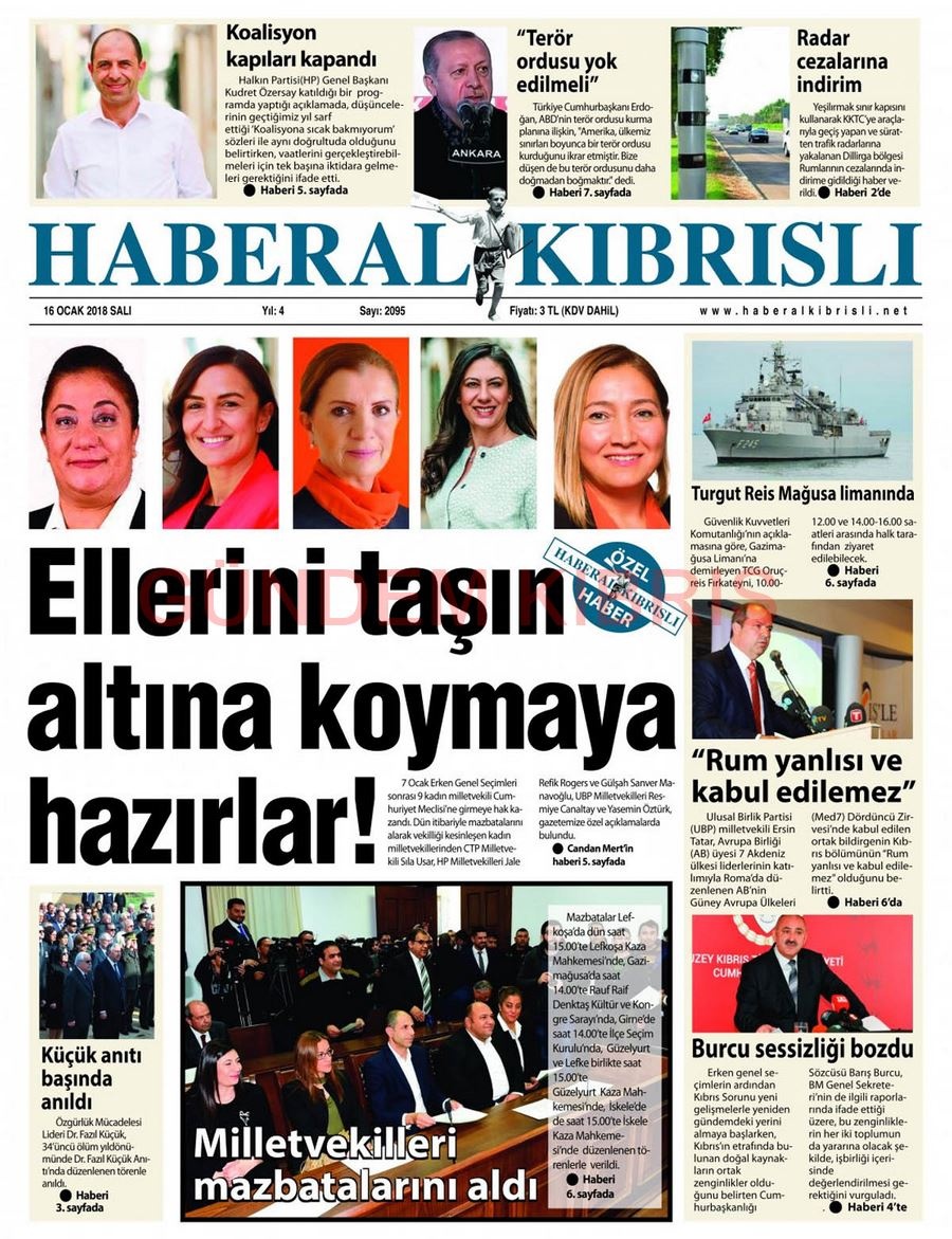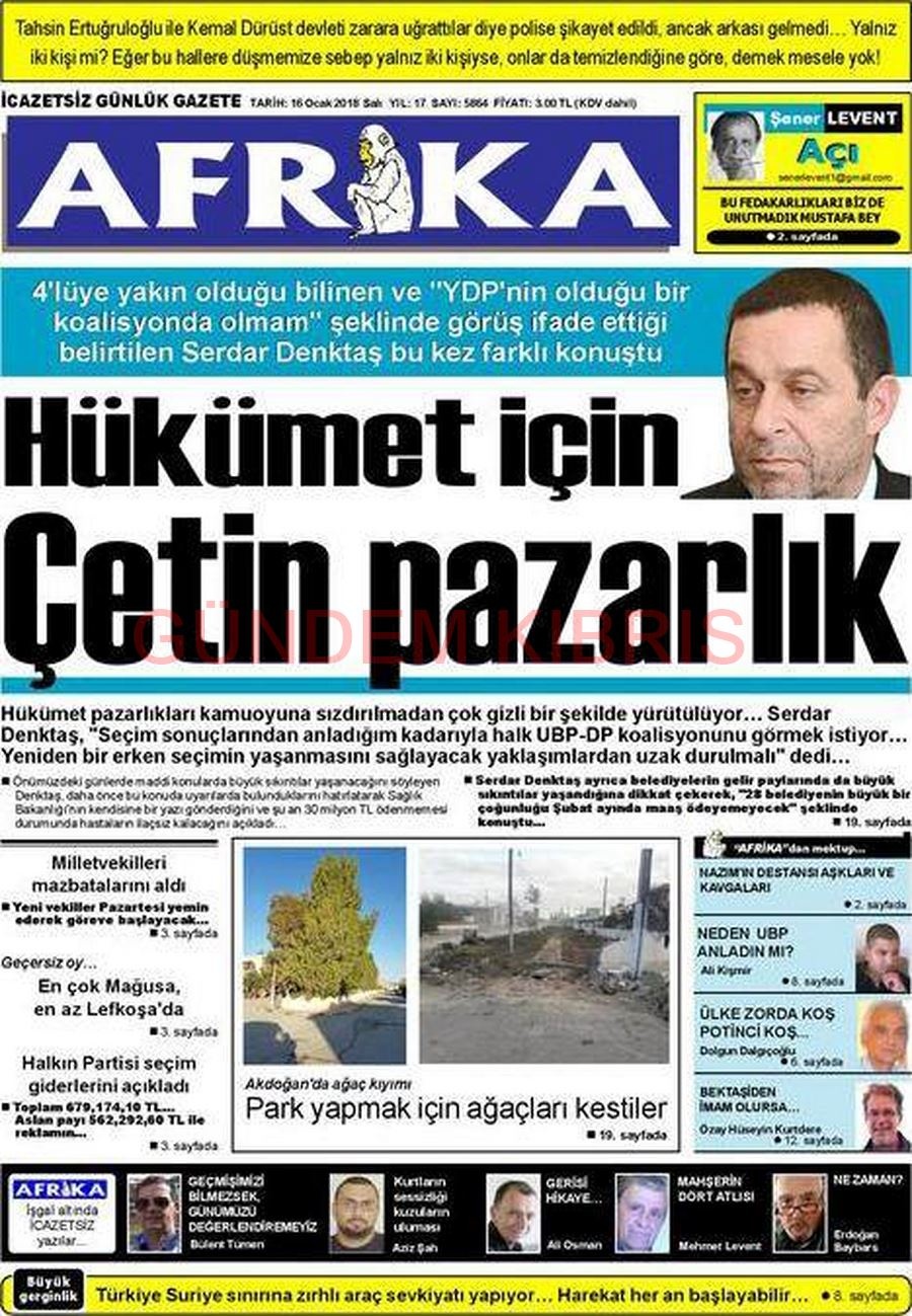 KKTC Gazete Manşetleri 16 Ocak 2018