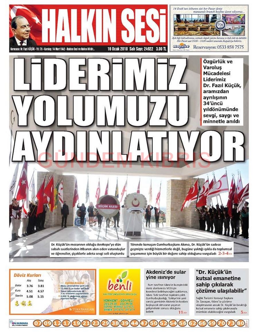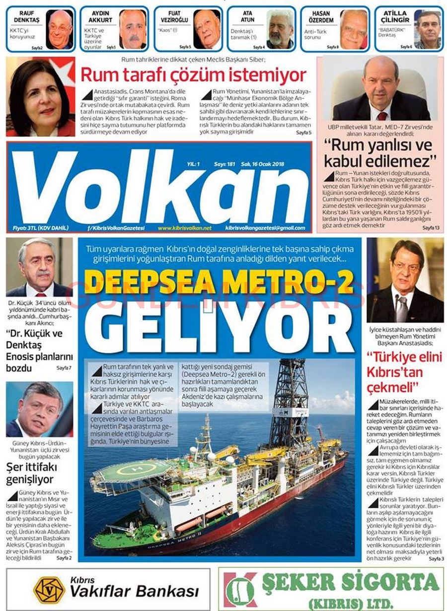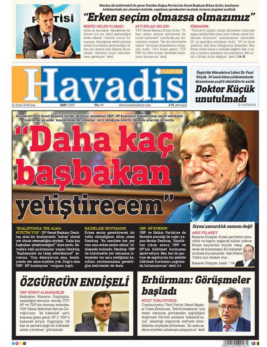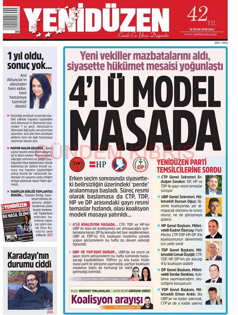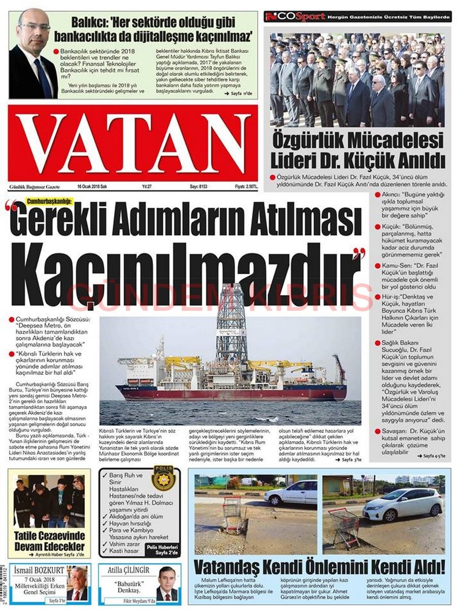 KKTC Gazete Manşetleri 16 Ocak 2018