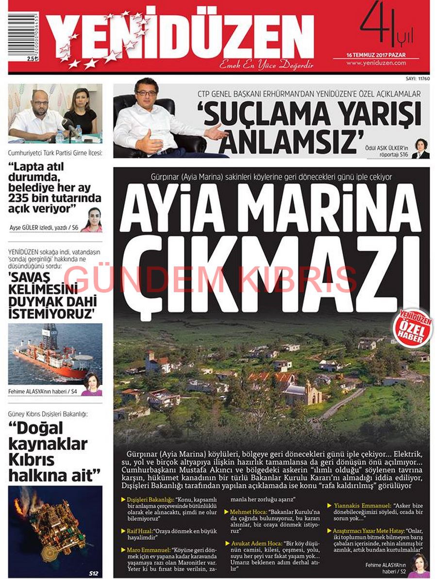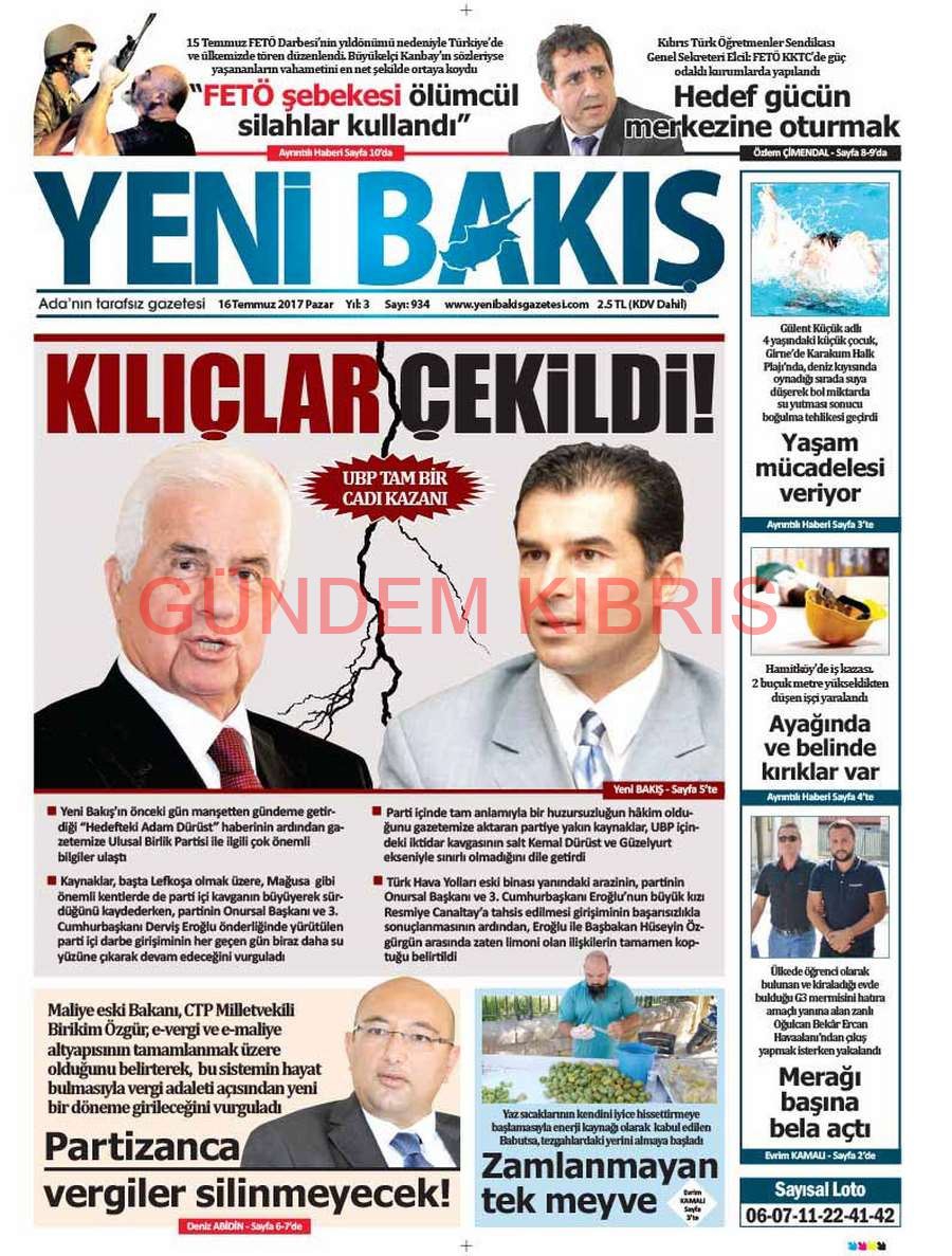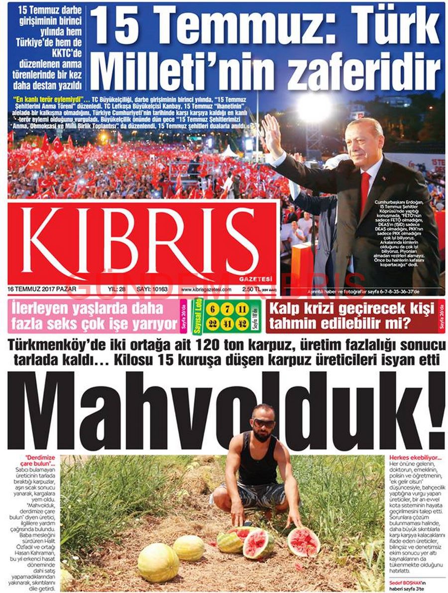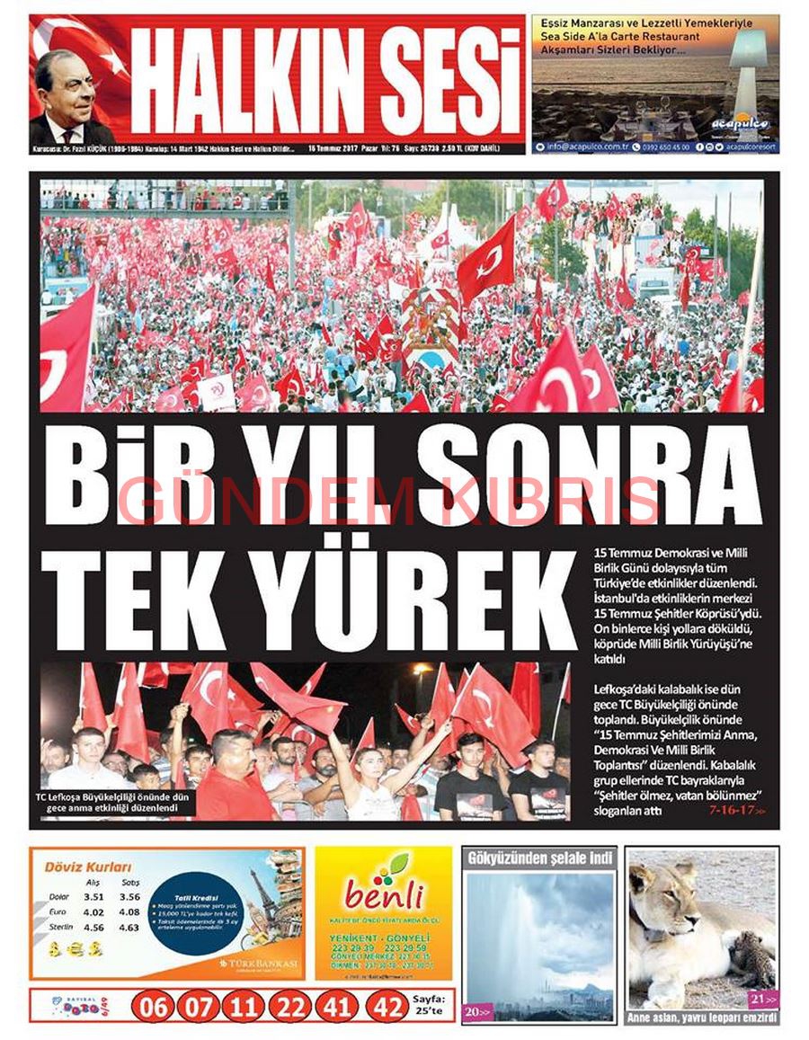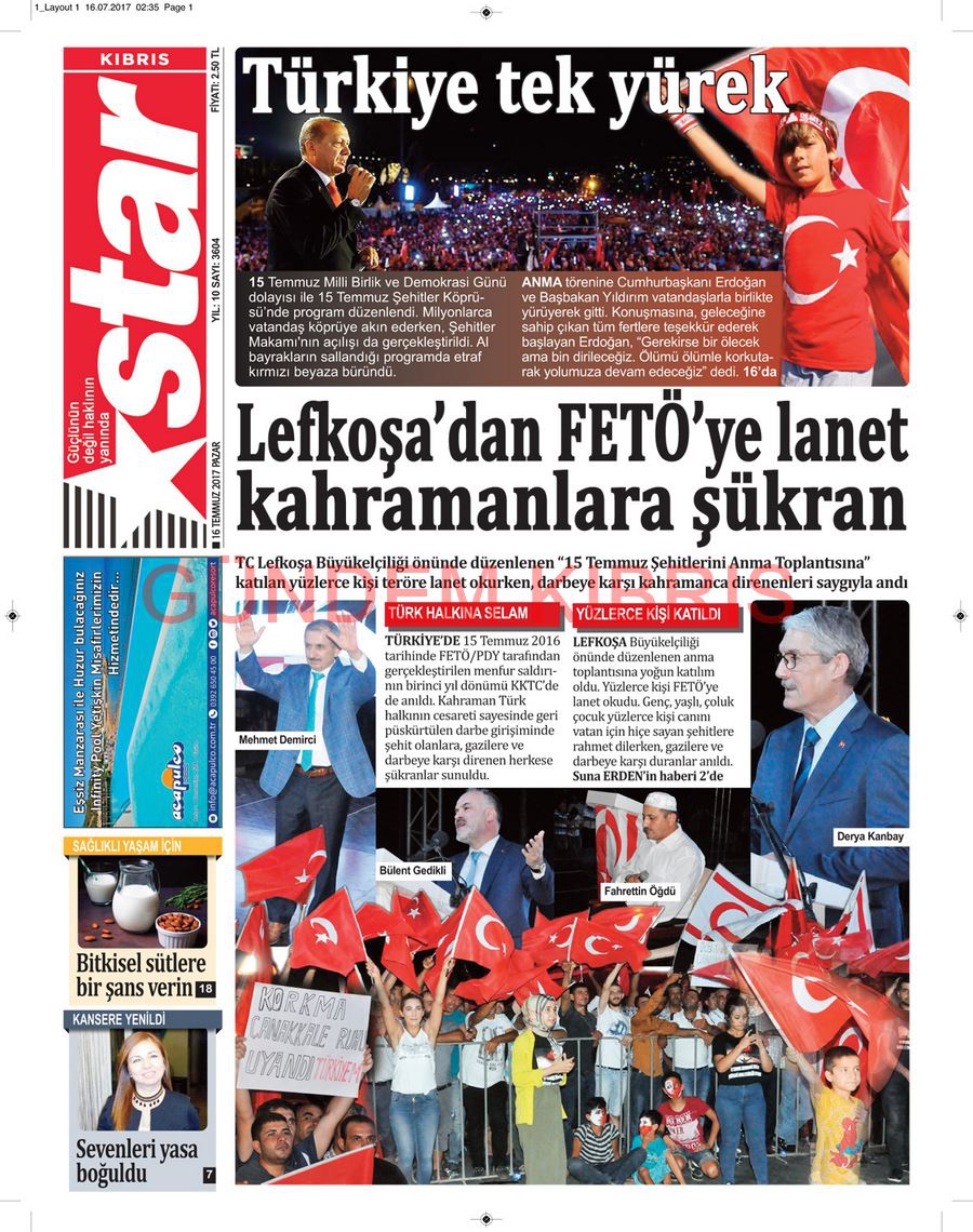 KKTC Gazete Manşetleri 16 Temmuz 2017