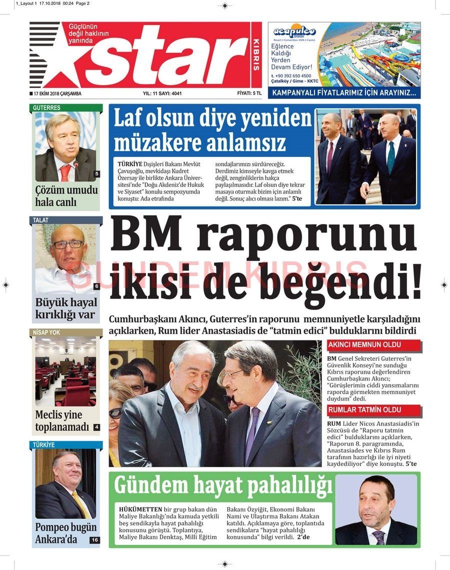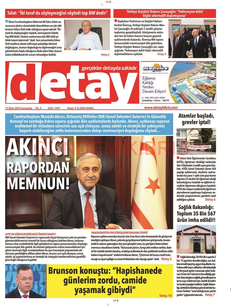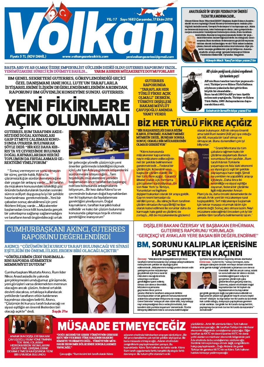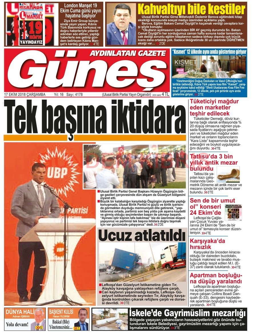 KKTC Gazete Manşetleri 17 Ekim 2018