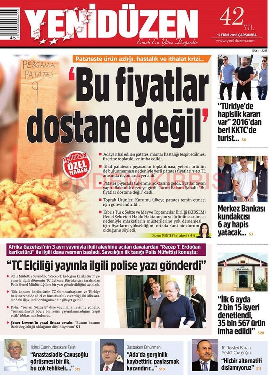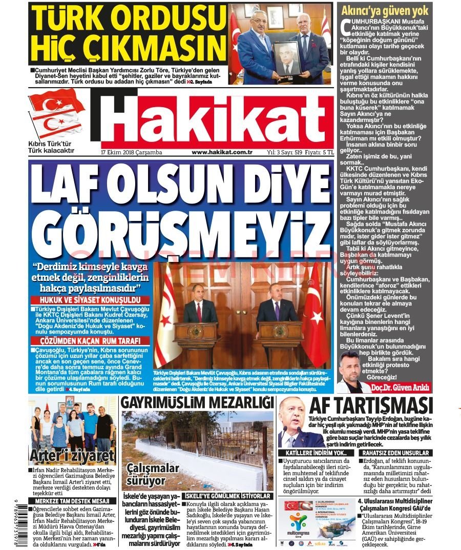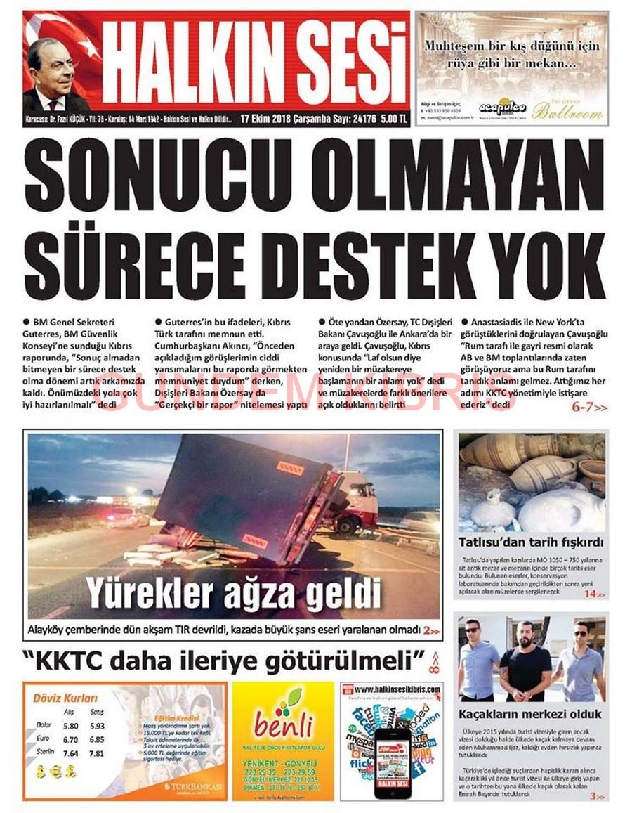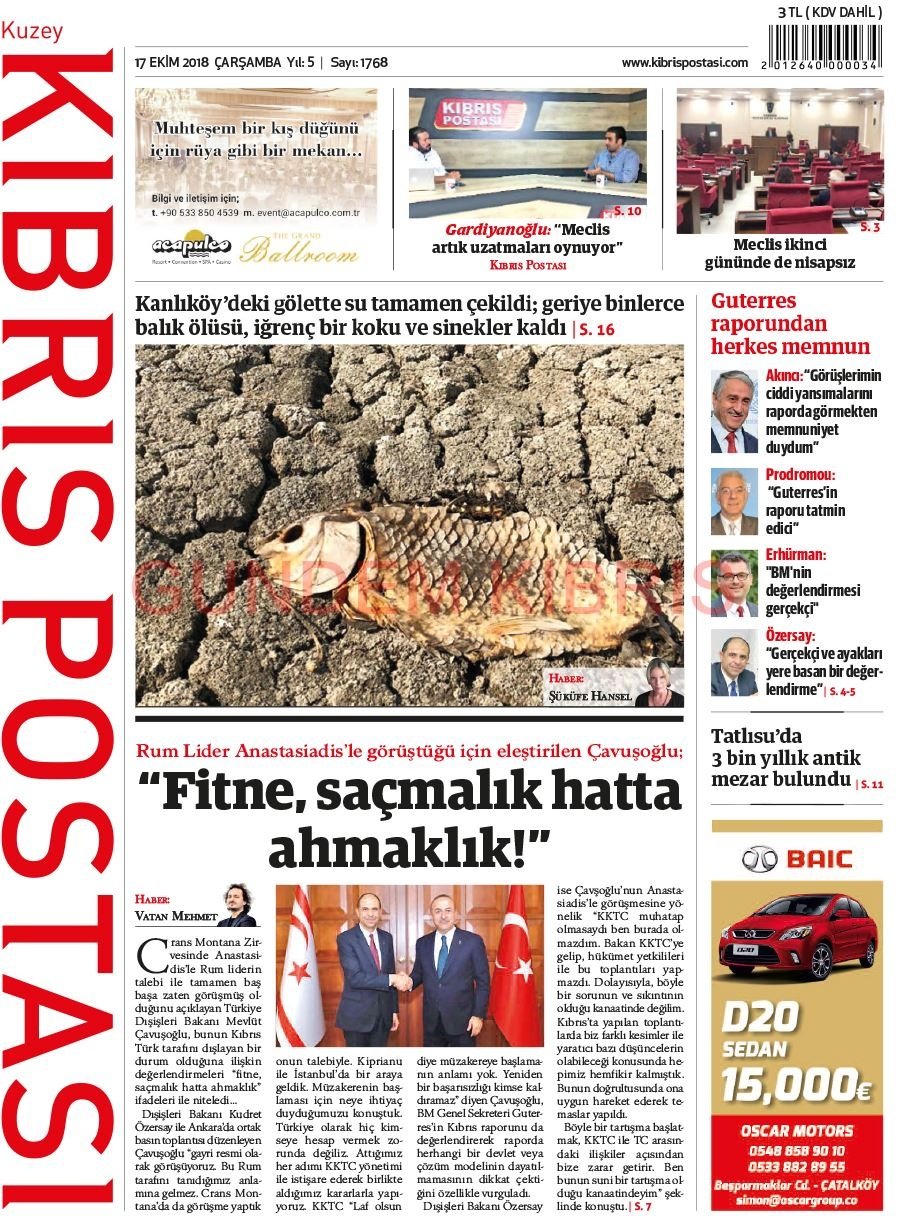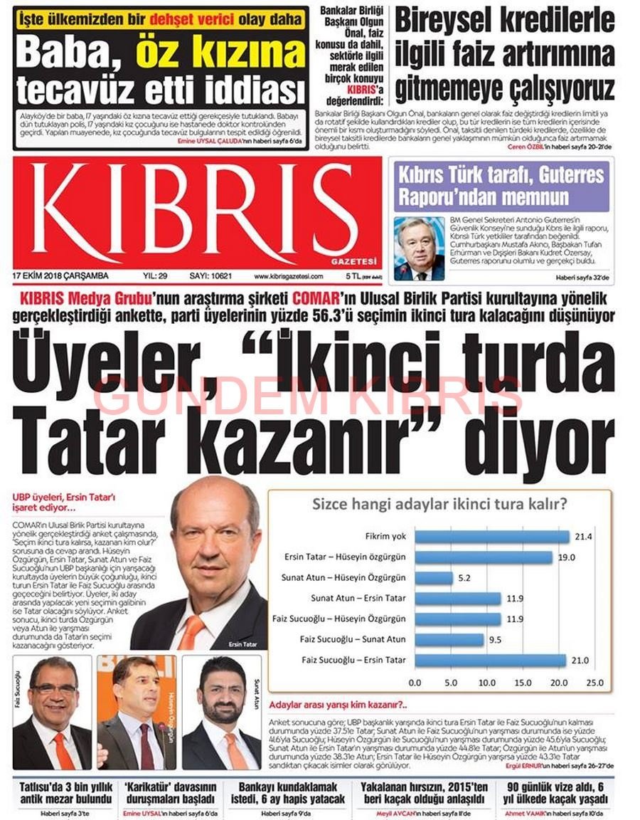KKTC Gazete Manşetleri 17 Ekim 2018