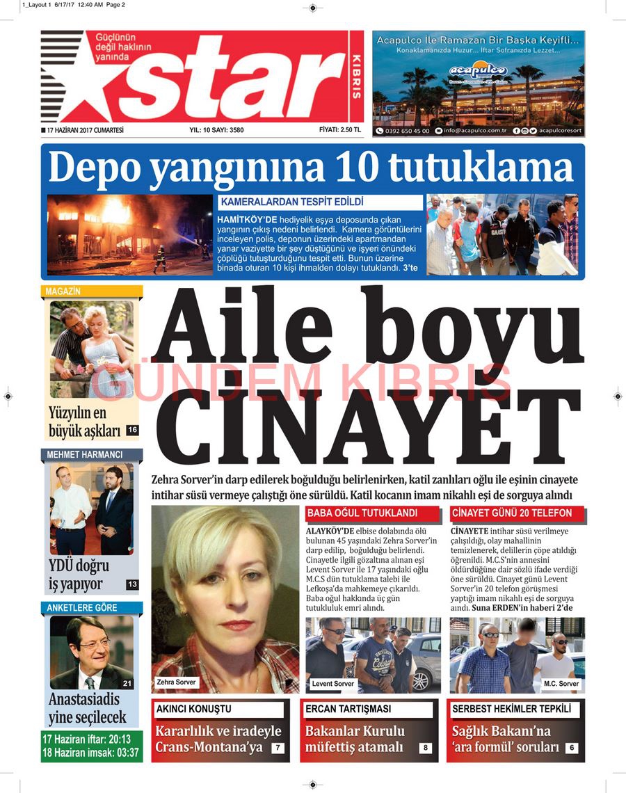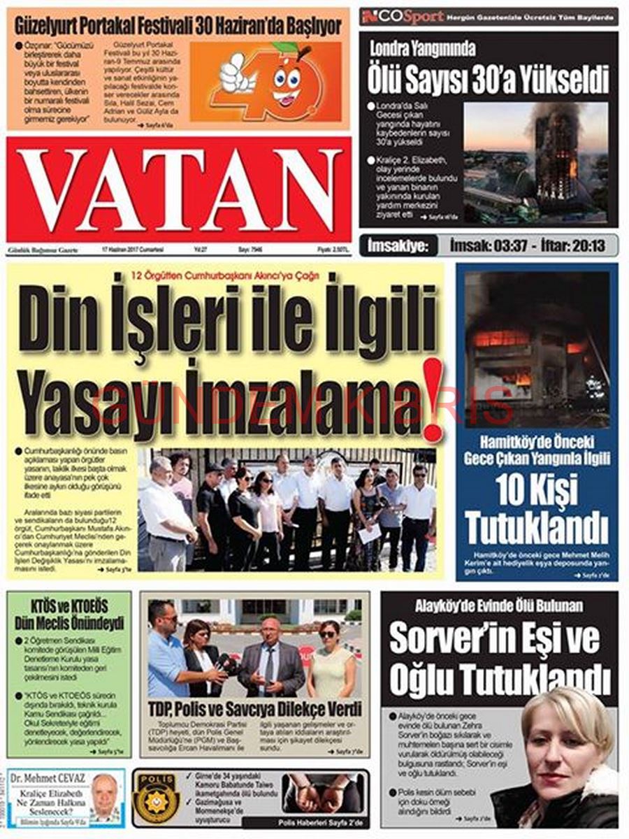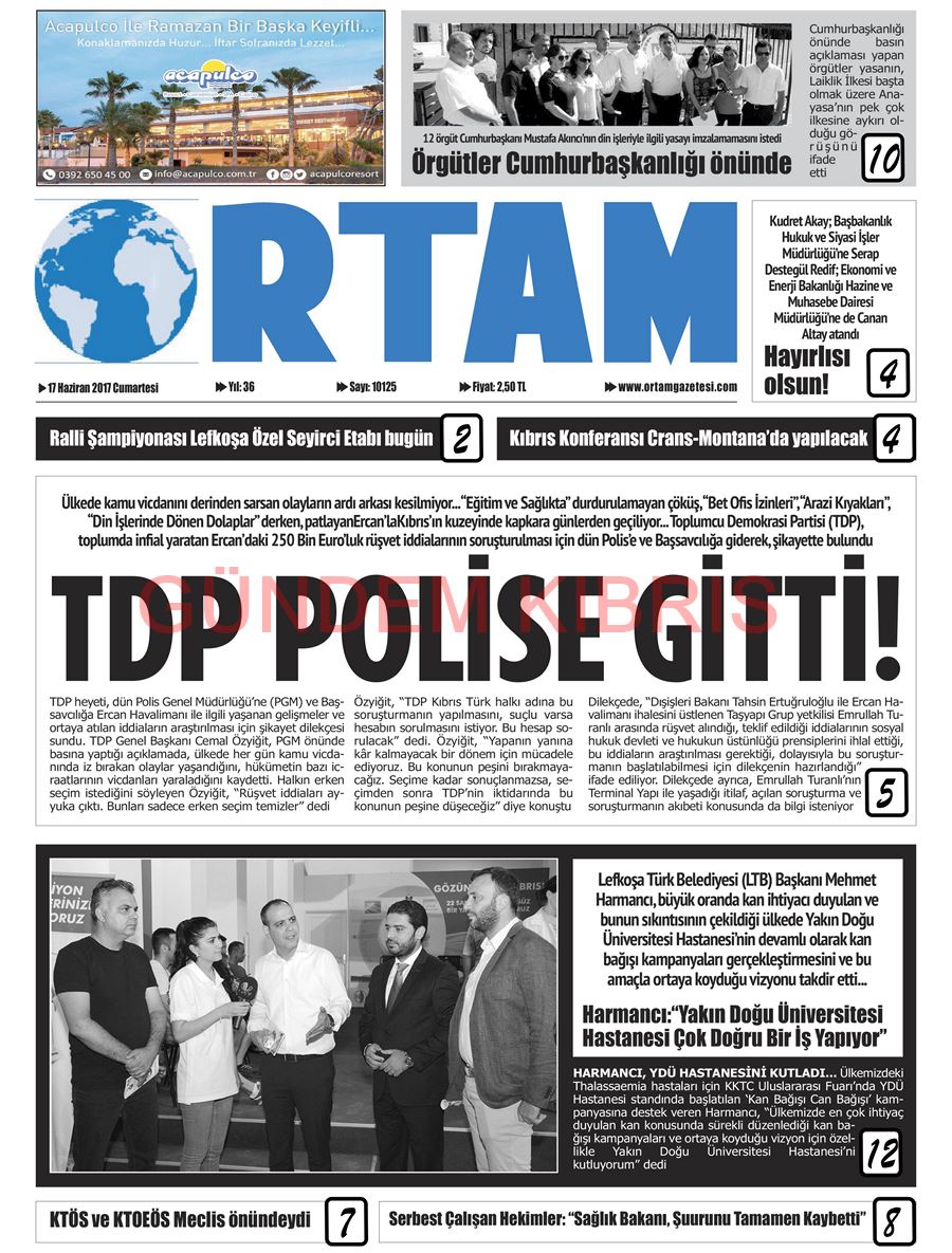KKTC Gazete Manşetleri 17 Haziran 2017