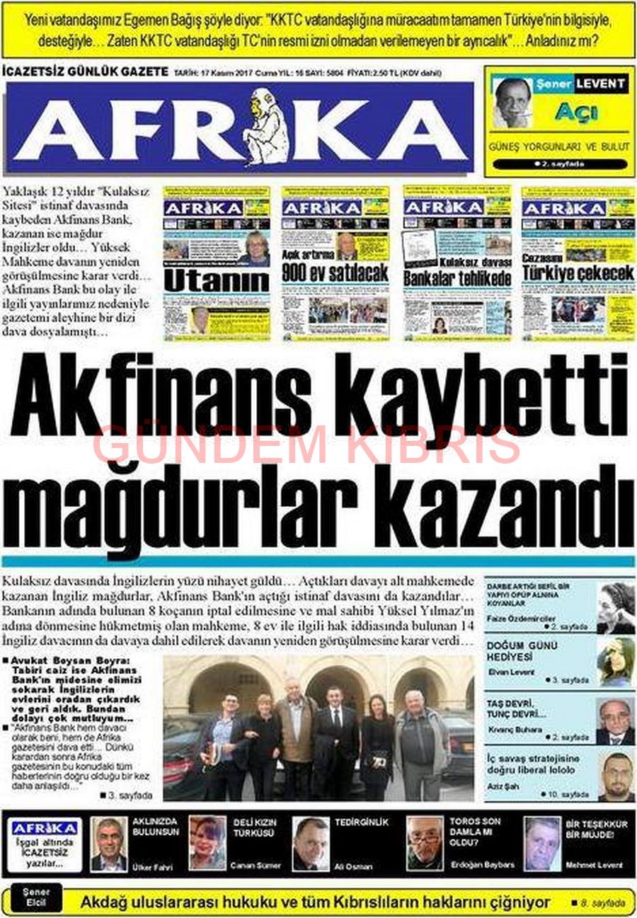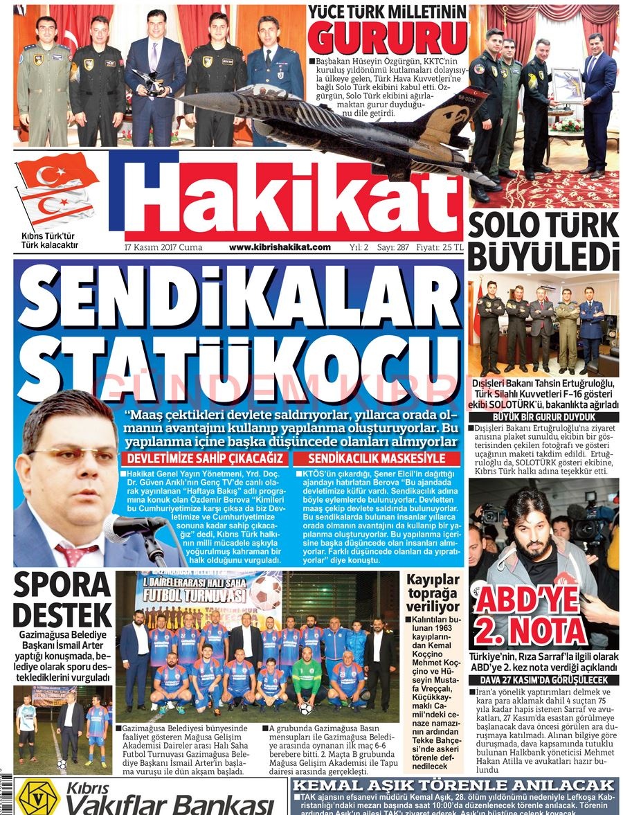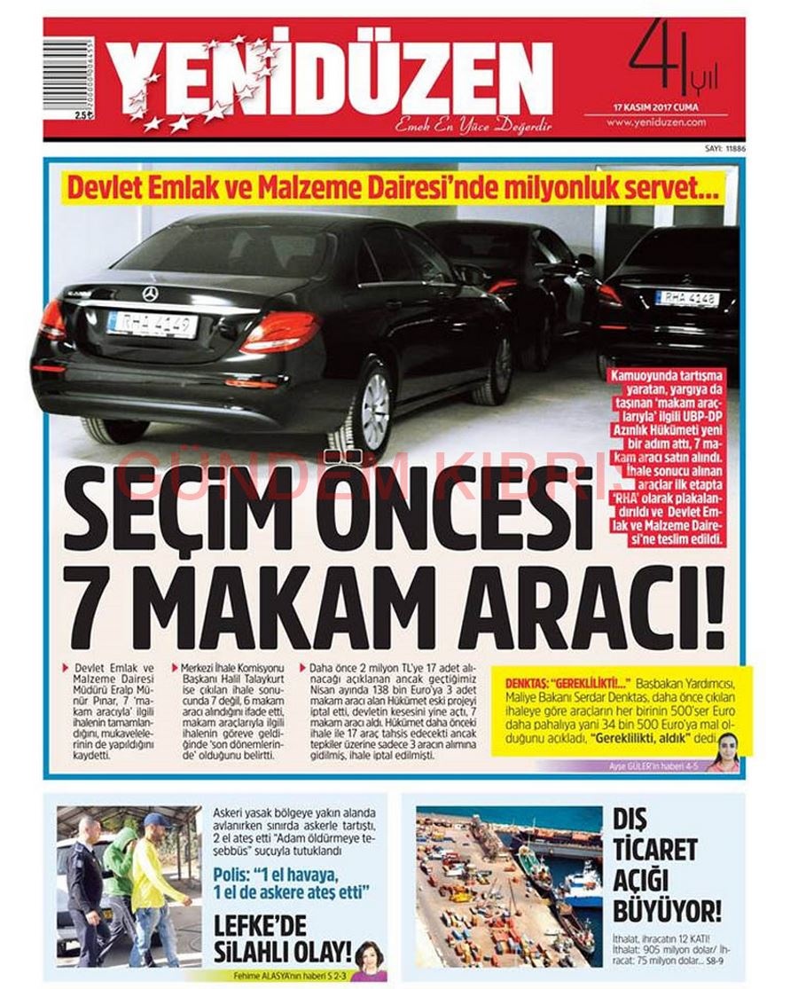 KKTC Gazete Manşetleri 17 Kasım 2017