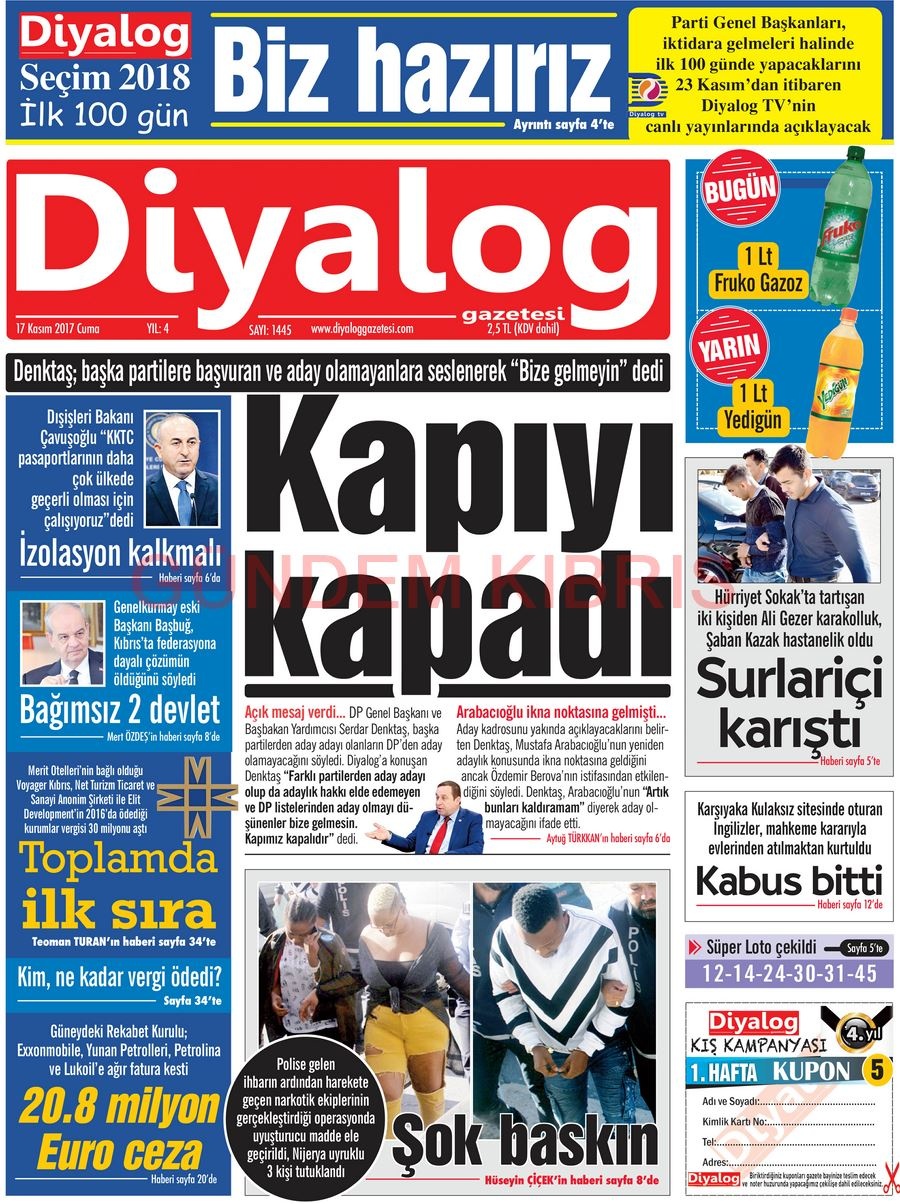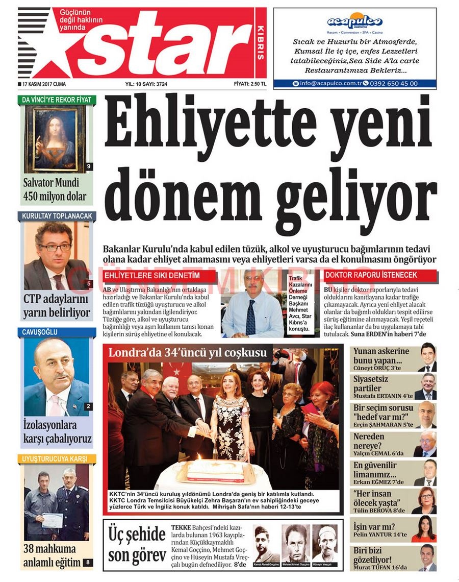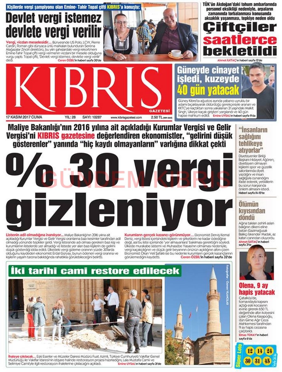 KKTC Gazete Manşetleri 17 Kasım 2017
