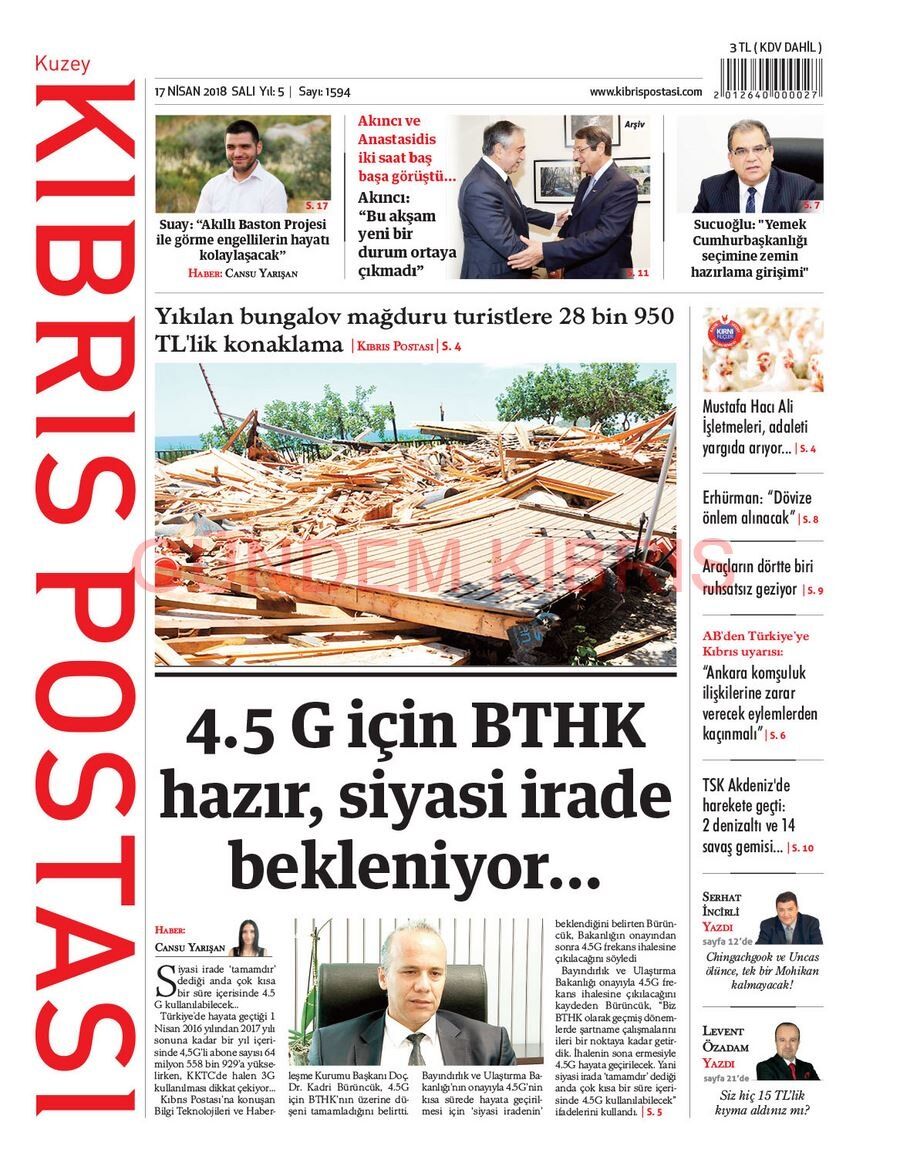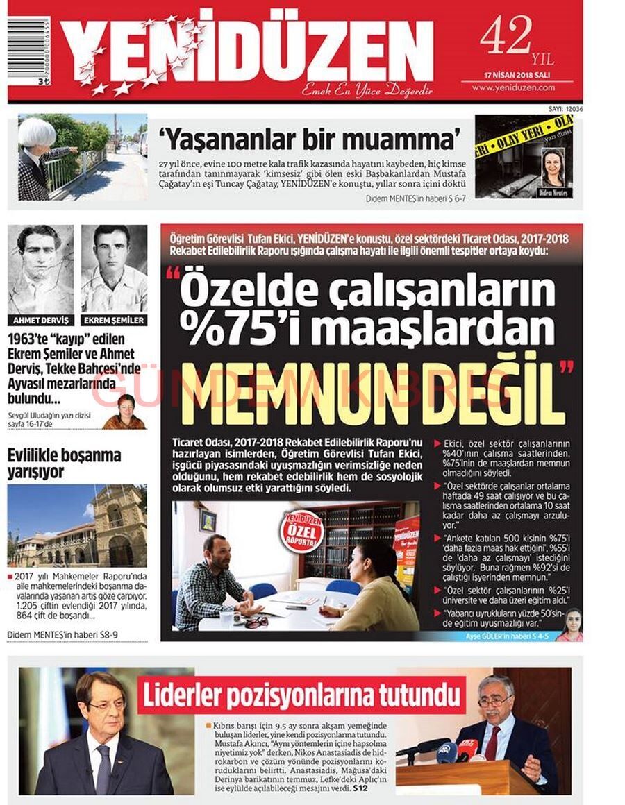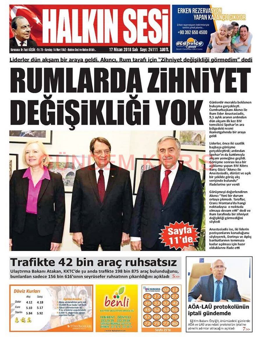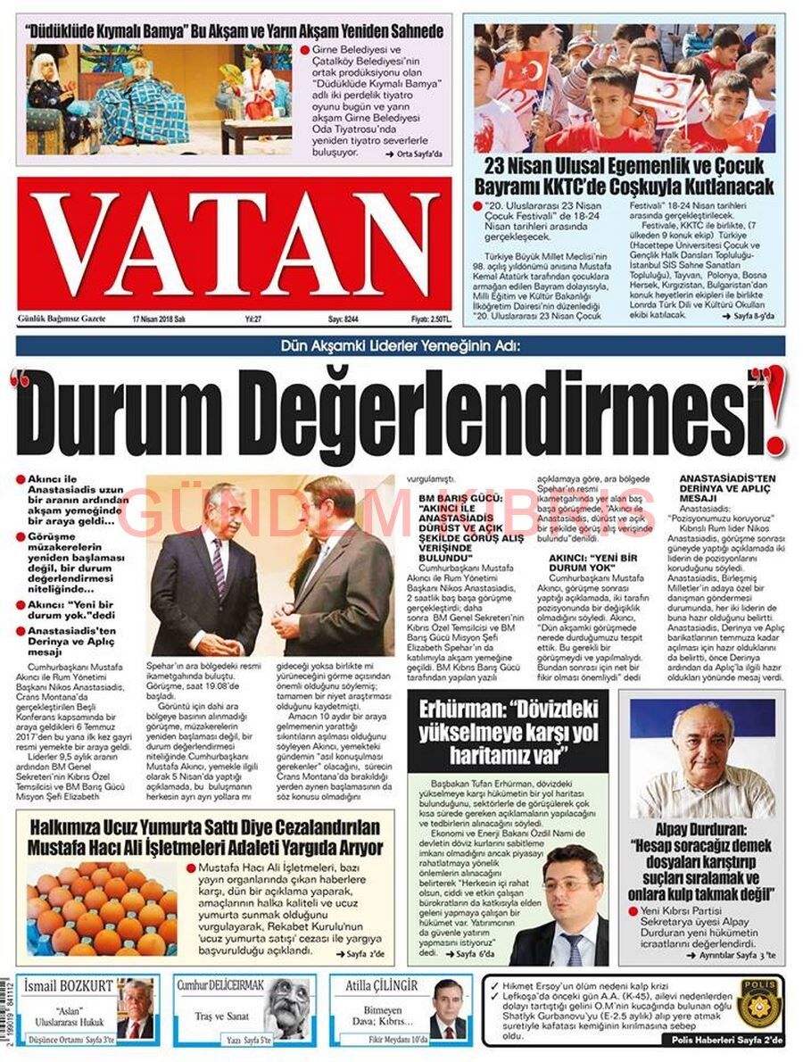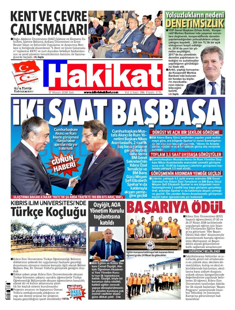KKTC Gazete Manşetleri 17 Nisan 2018
