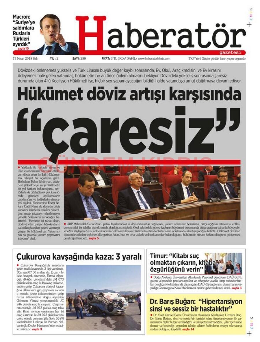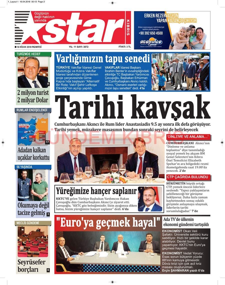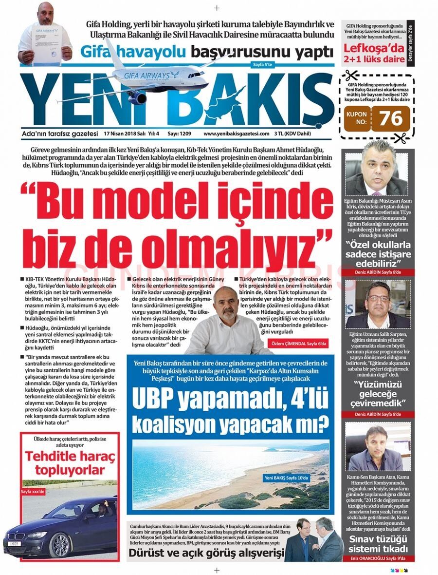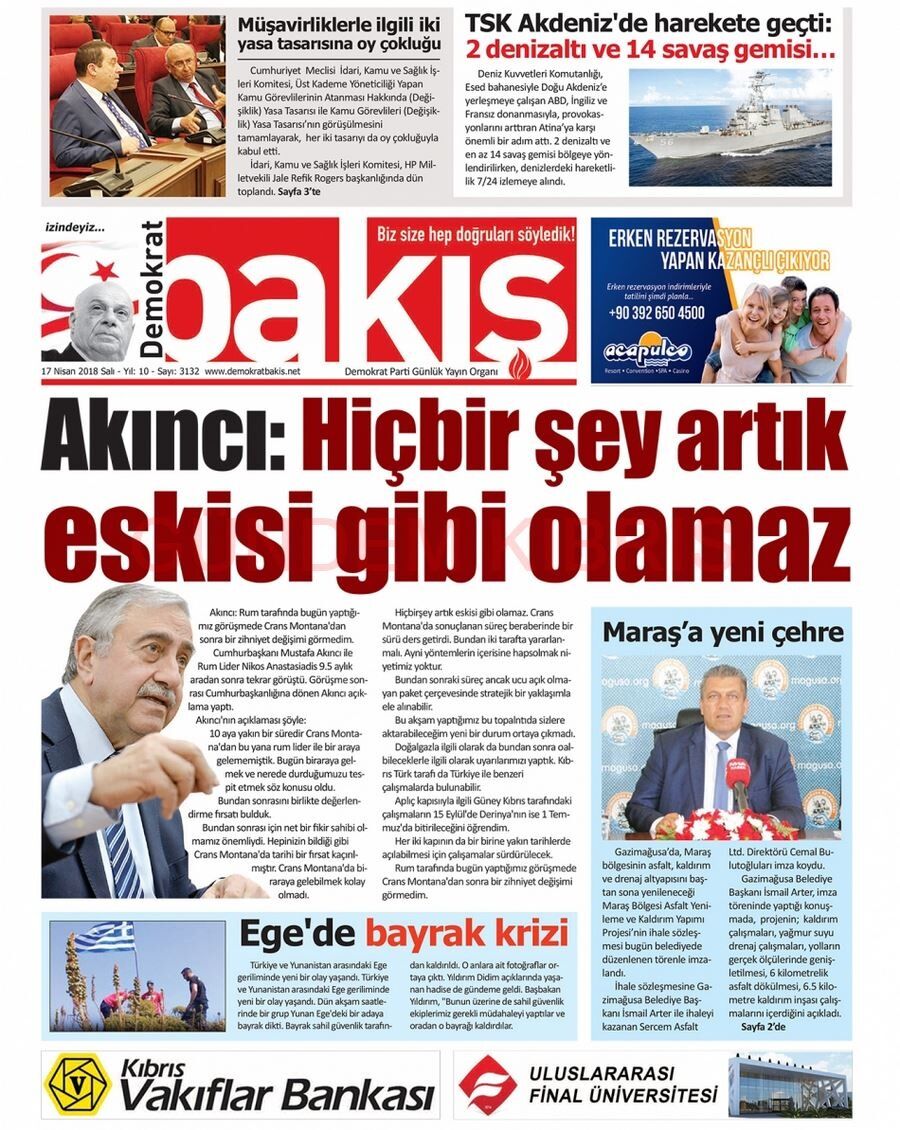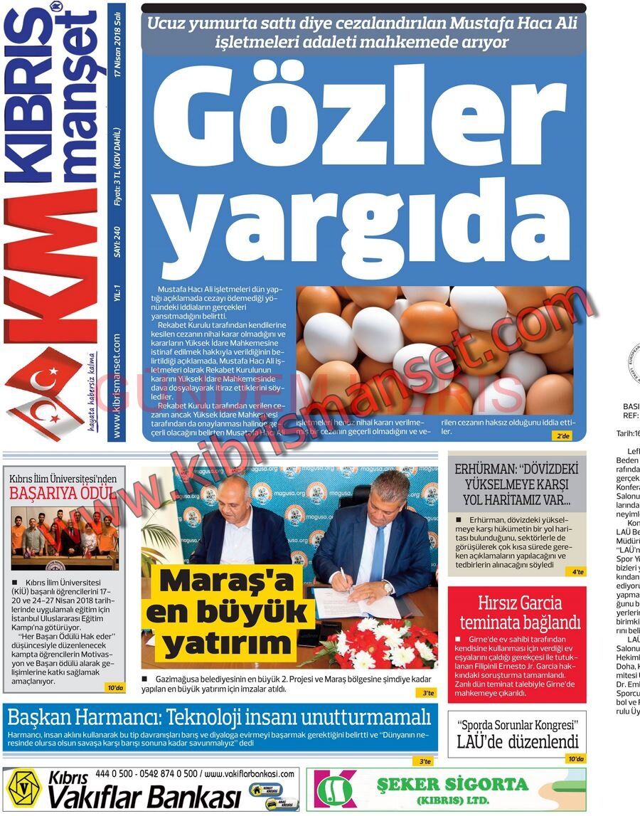 KKTC Gazete Manşetleri 17 Nisan 2018