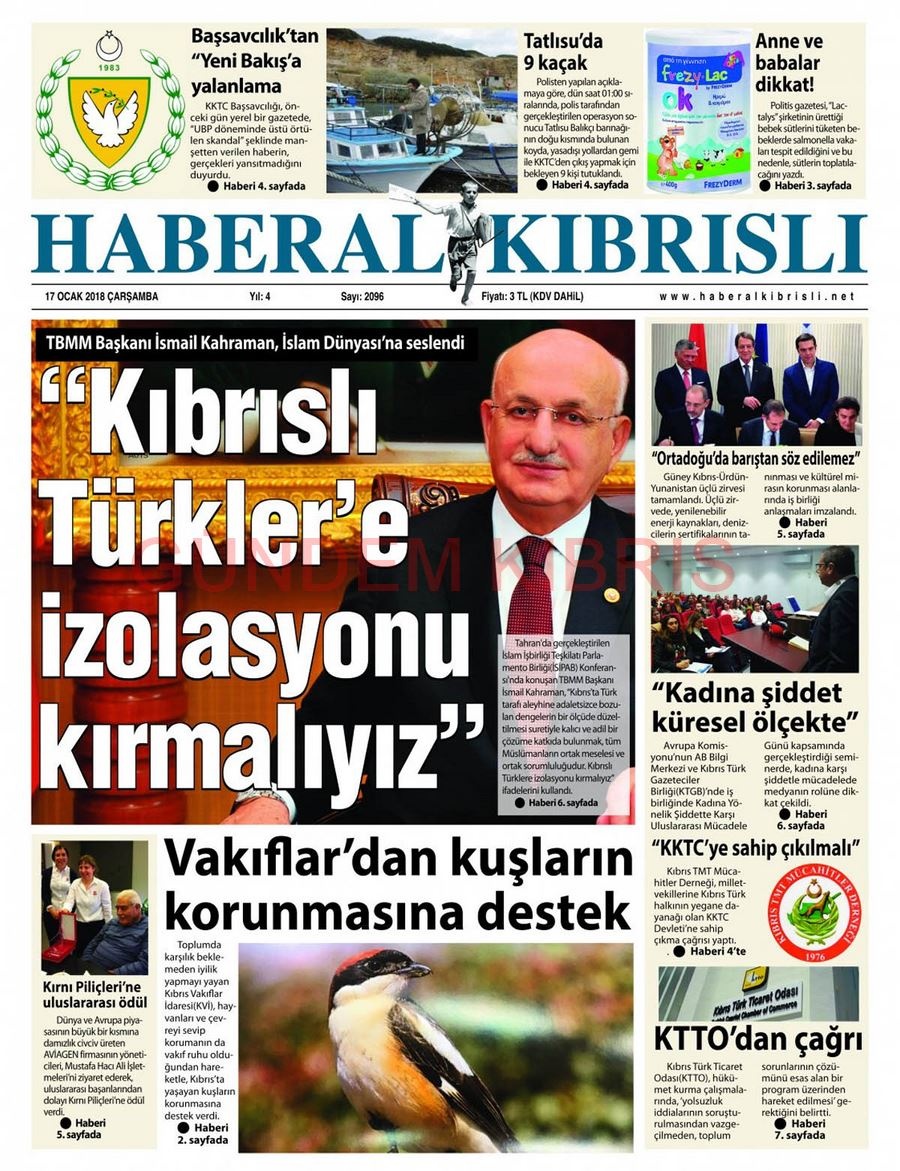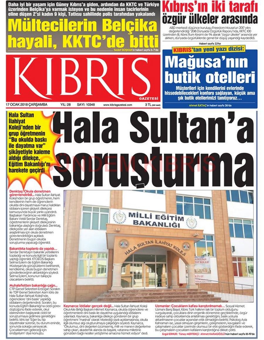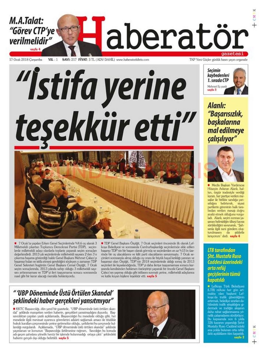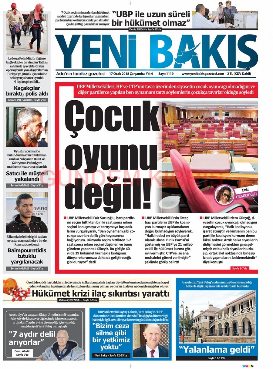 KKTC Gazete Manşetleri 17 Ocak 2018