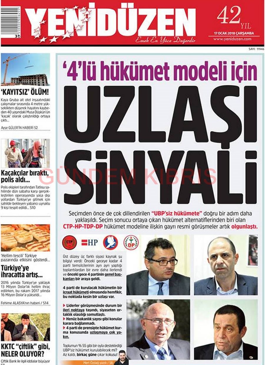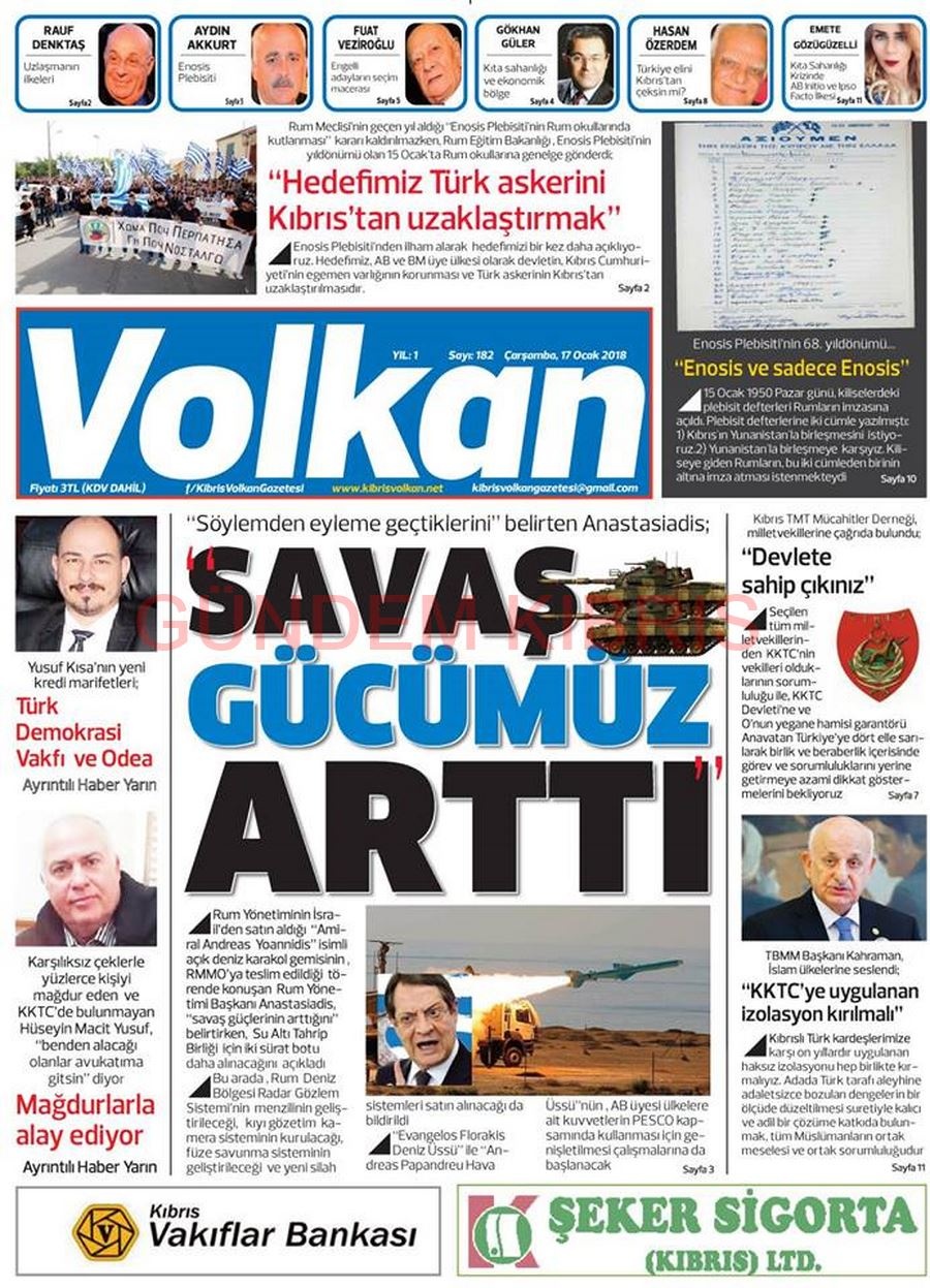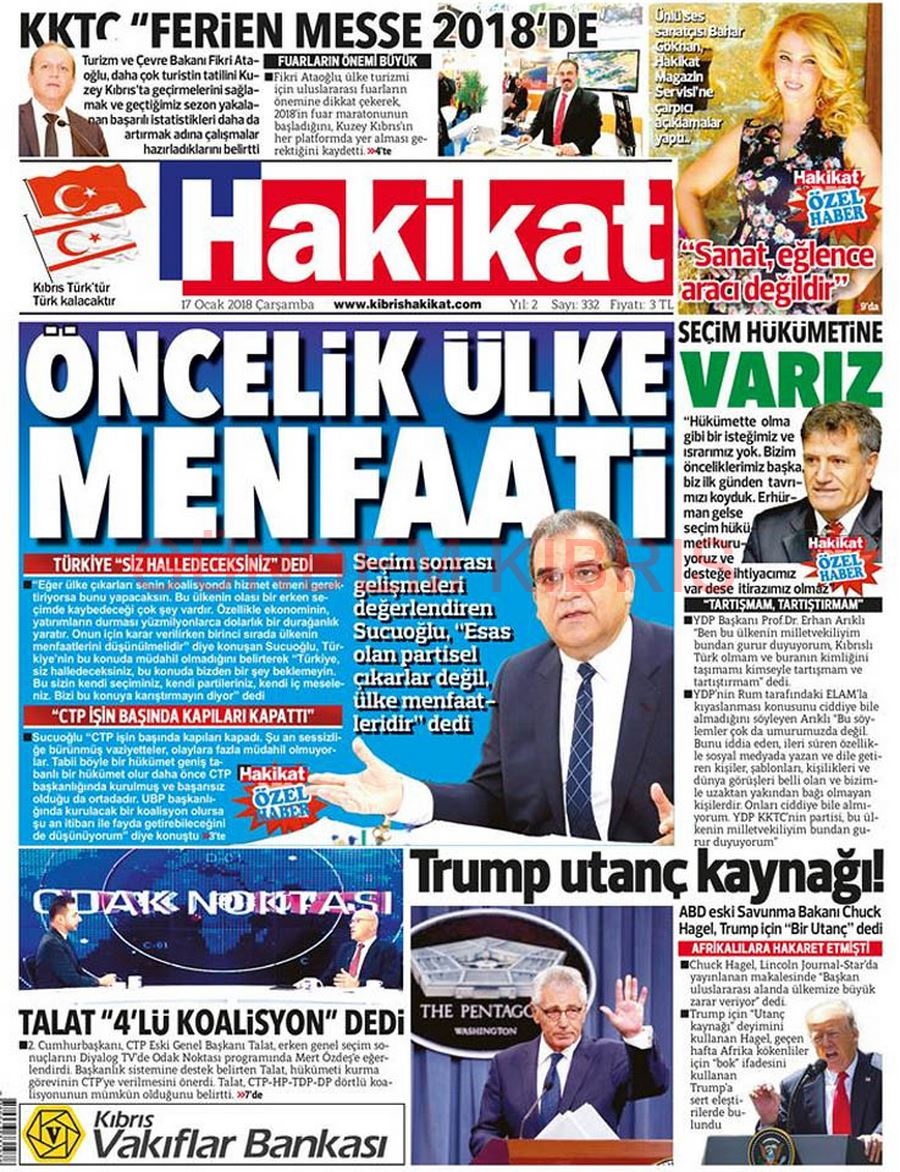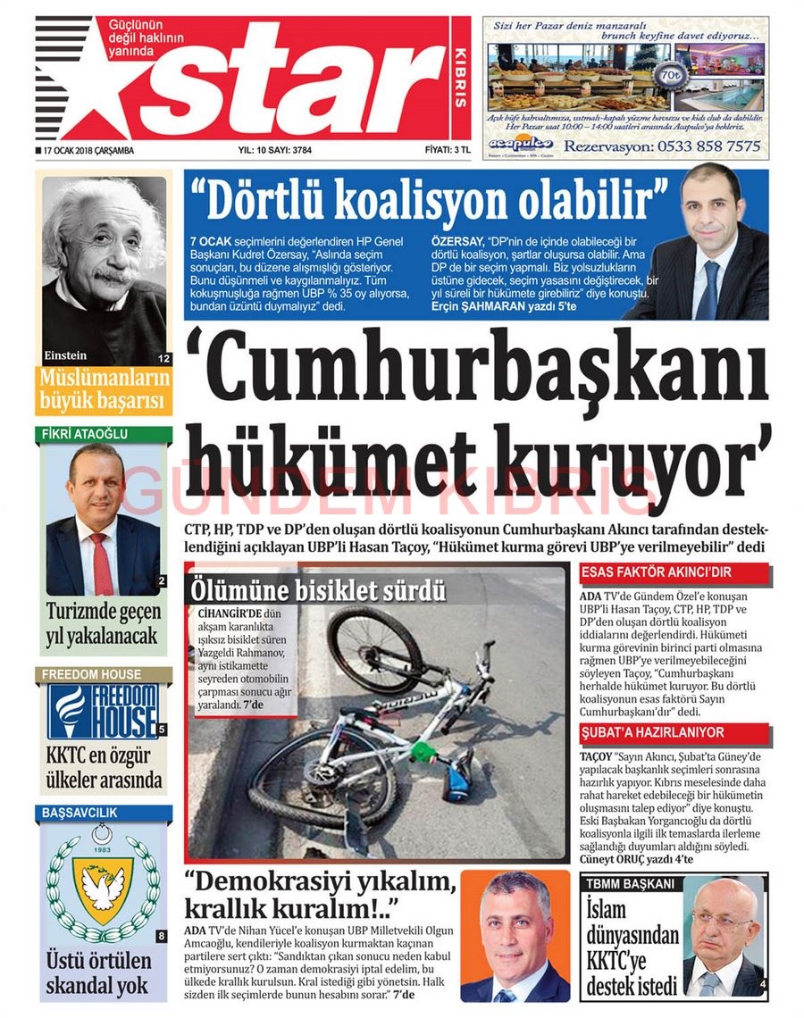 KKTC Gazete Manşetleri 17 Ocak 2018