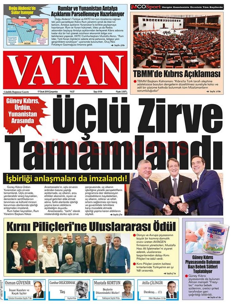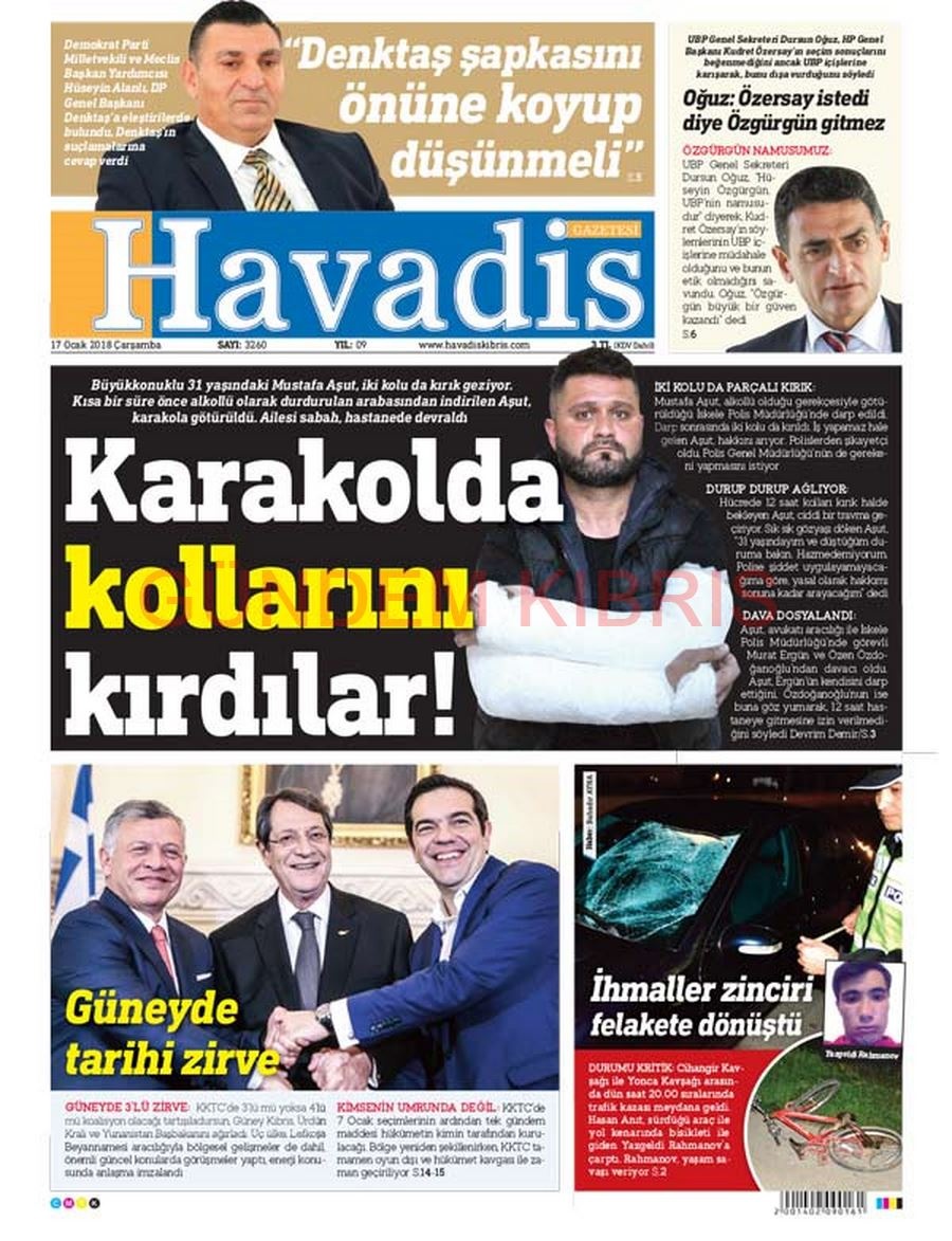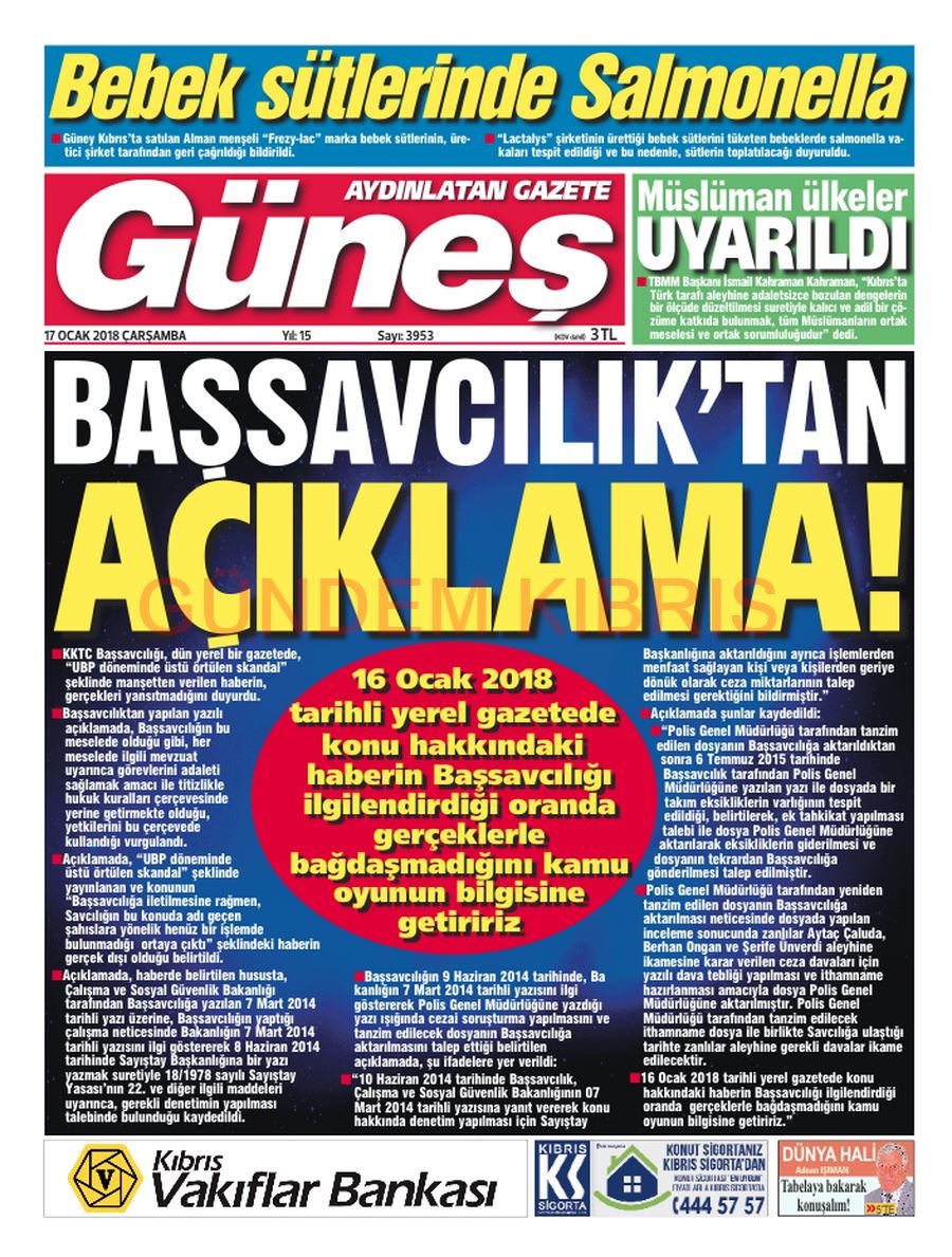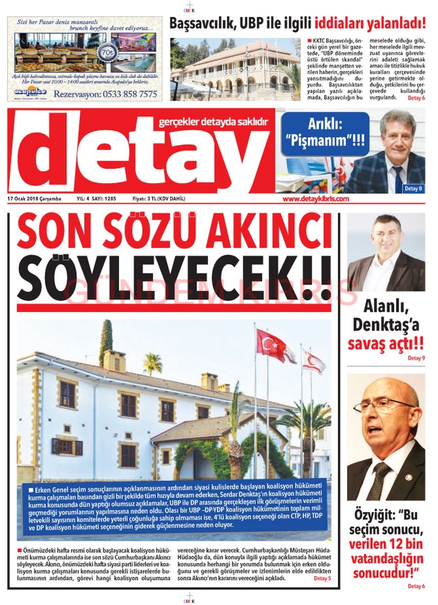 KKTC Gazete Manşetleri 17 Ocak 2018
