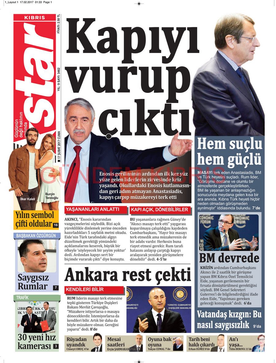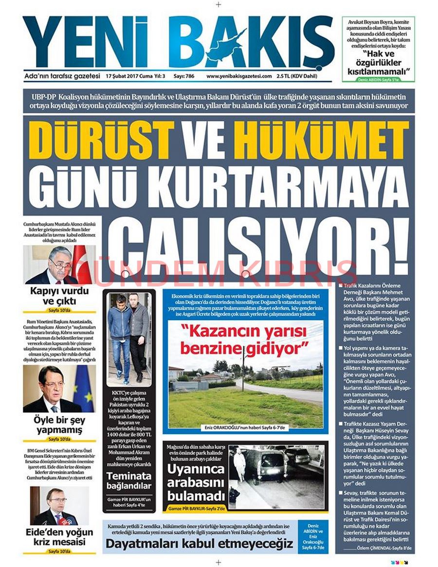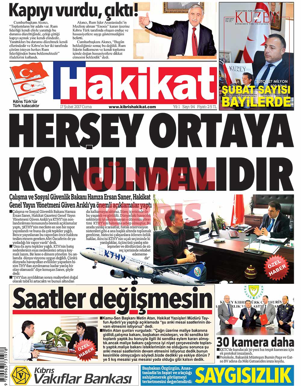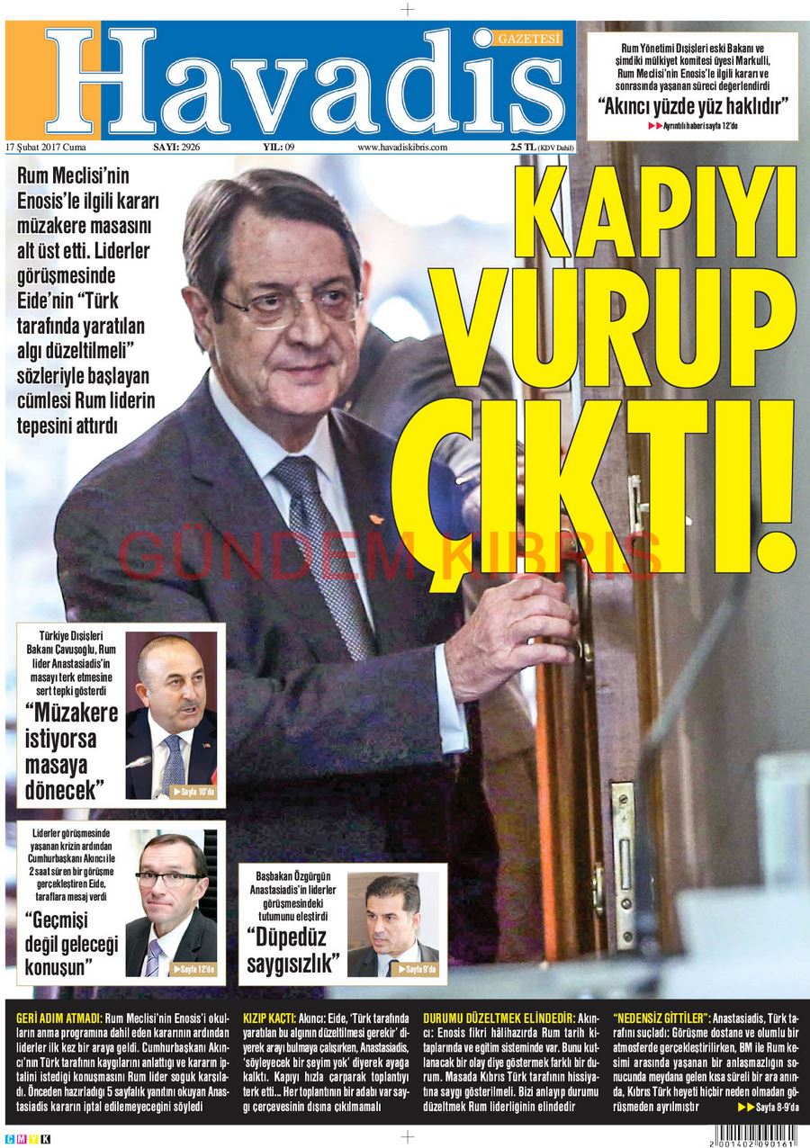 KKTC Gazete Manşetleri 17 Şubat 2017