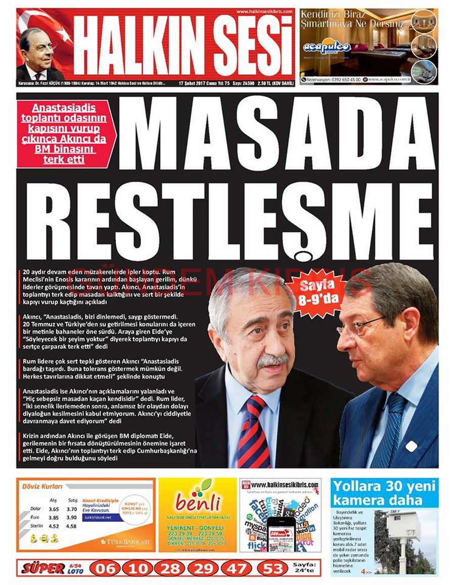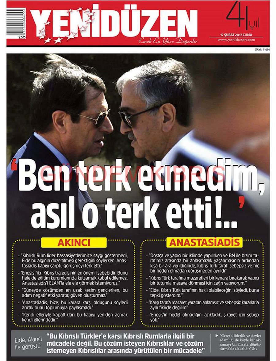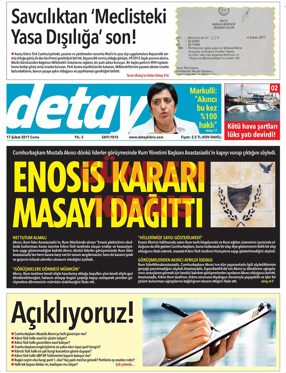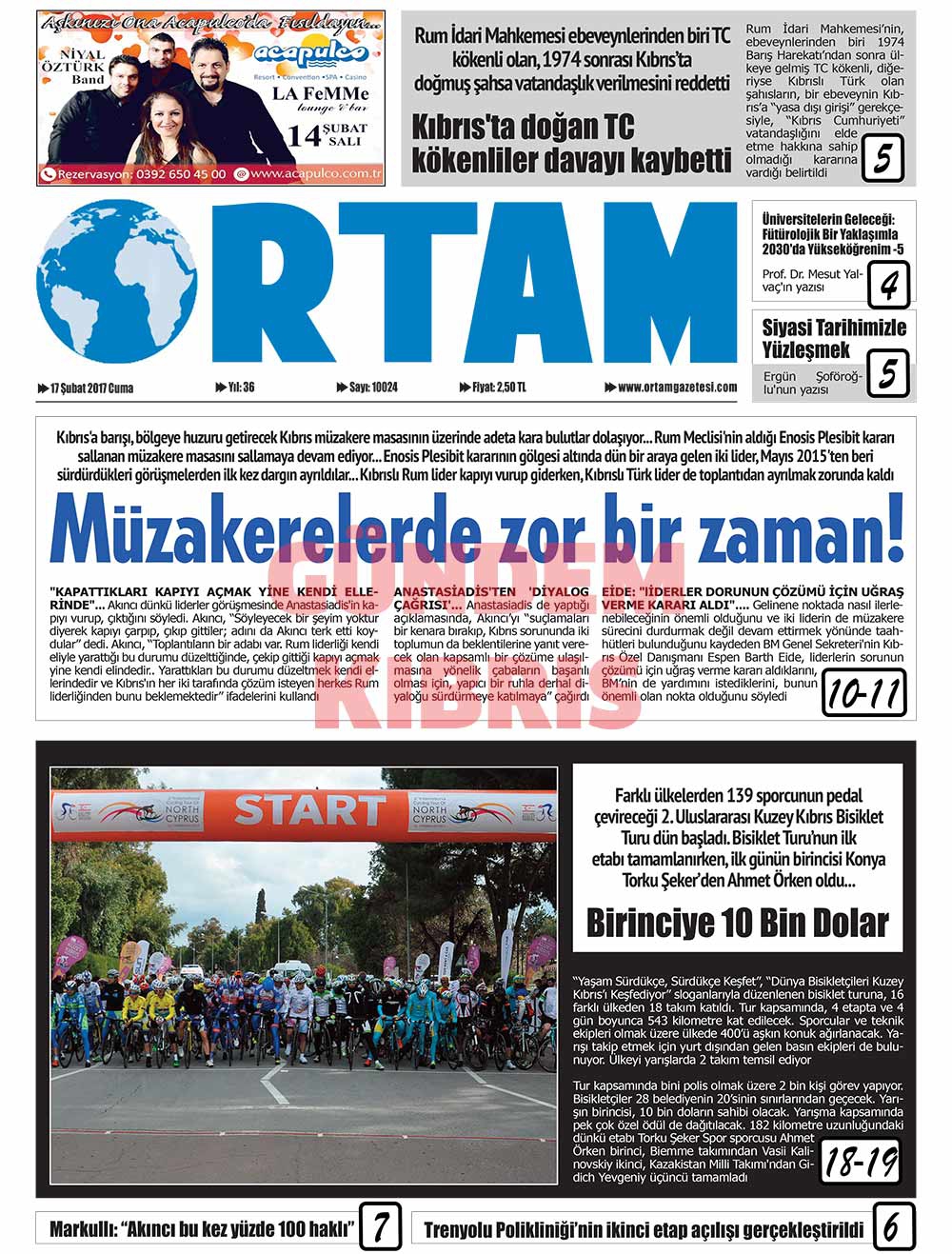 KKTC Gazete Manşetleri 17 Şubat 2017