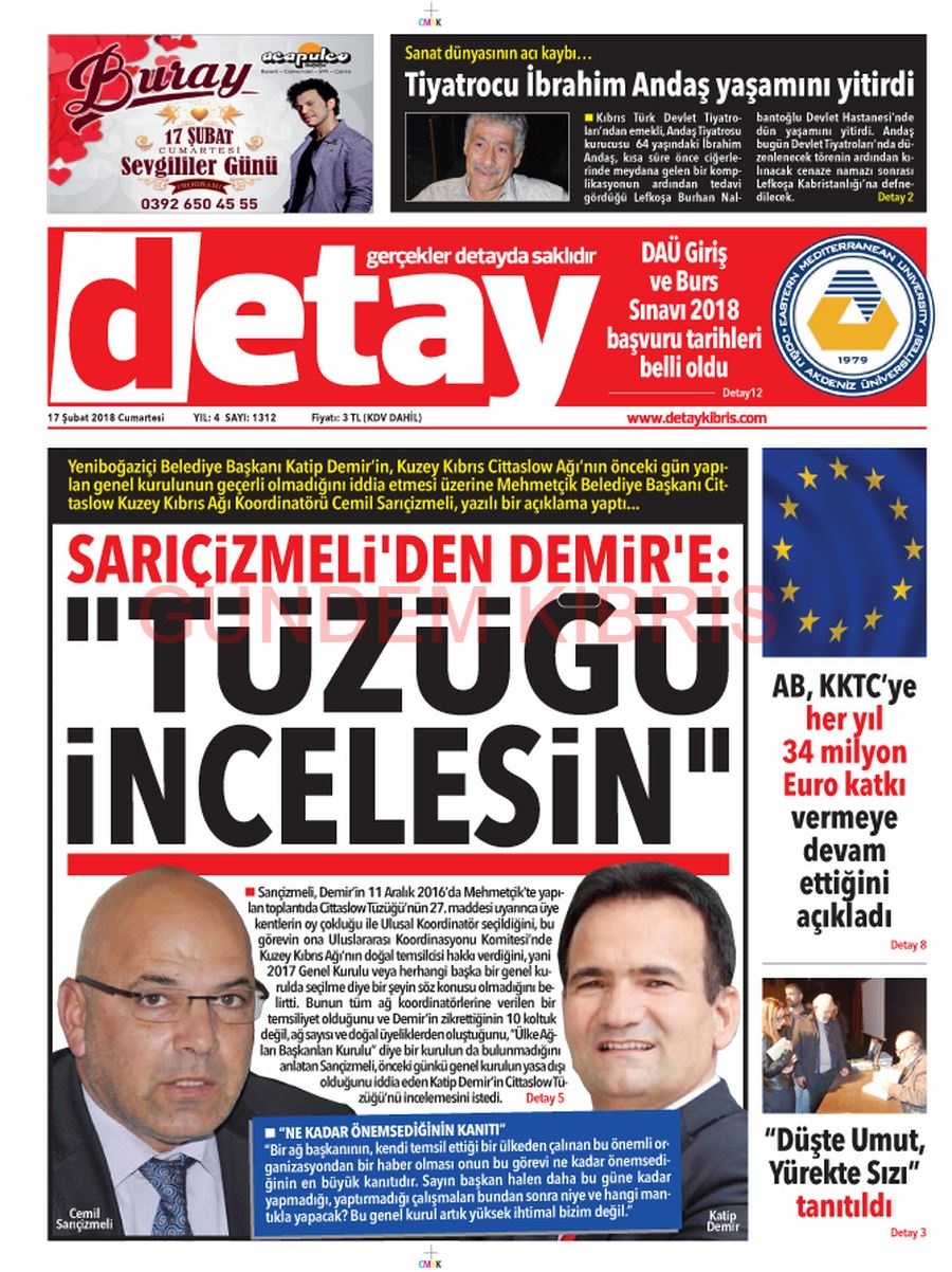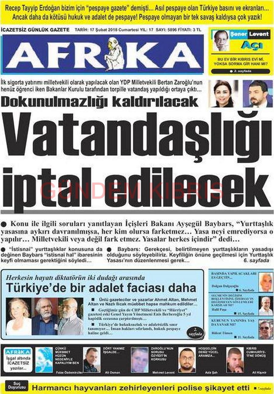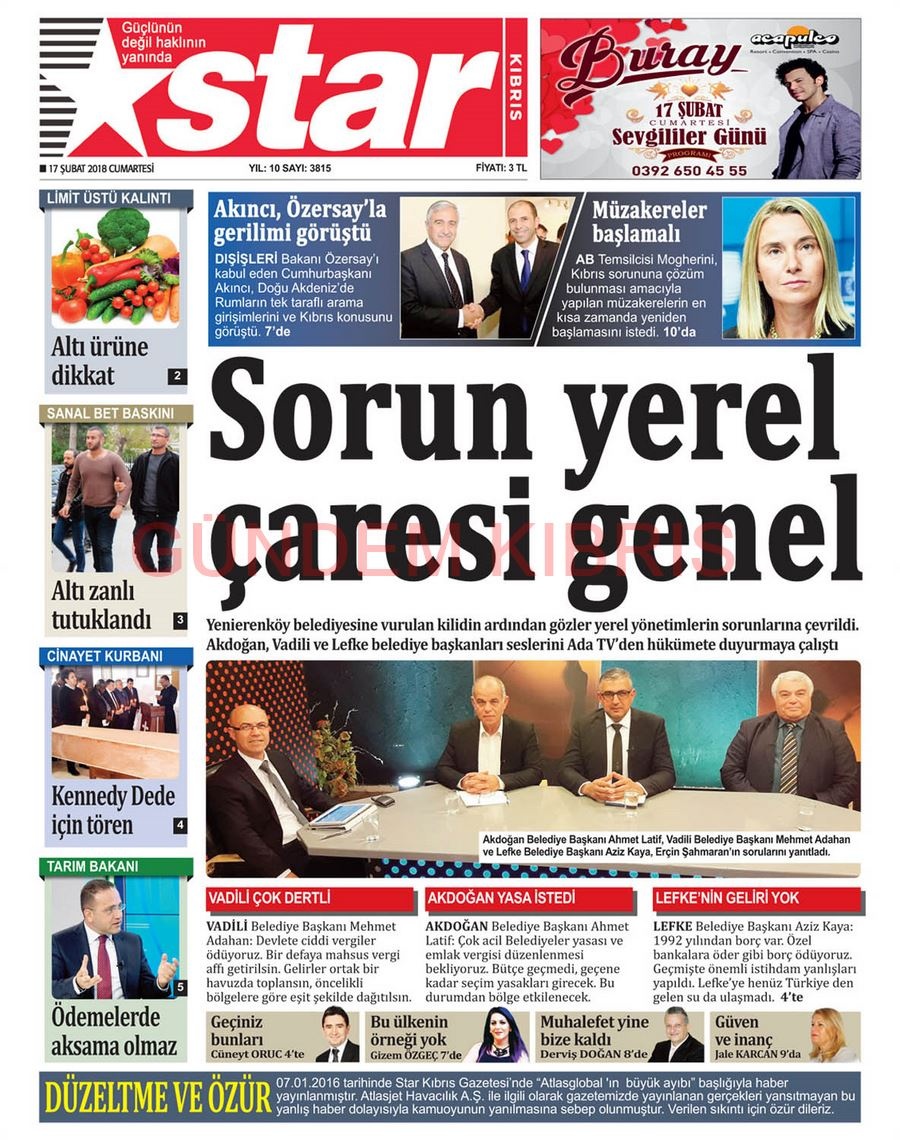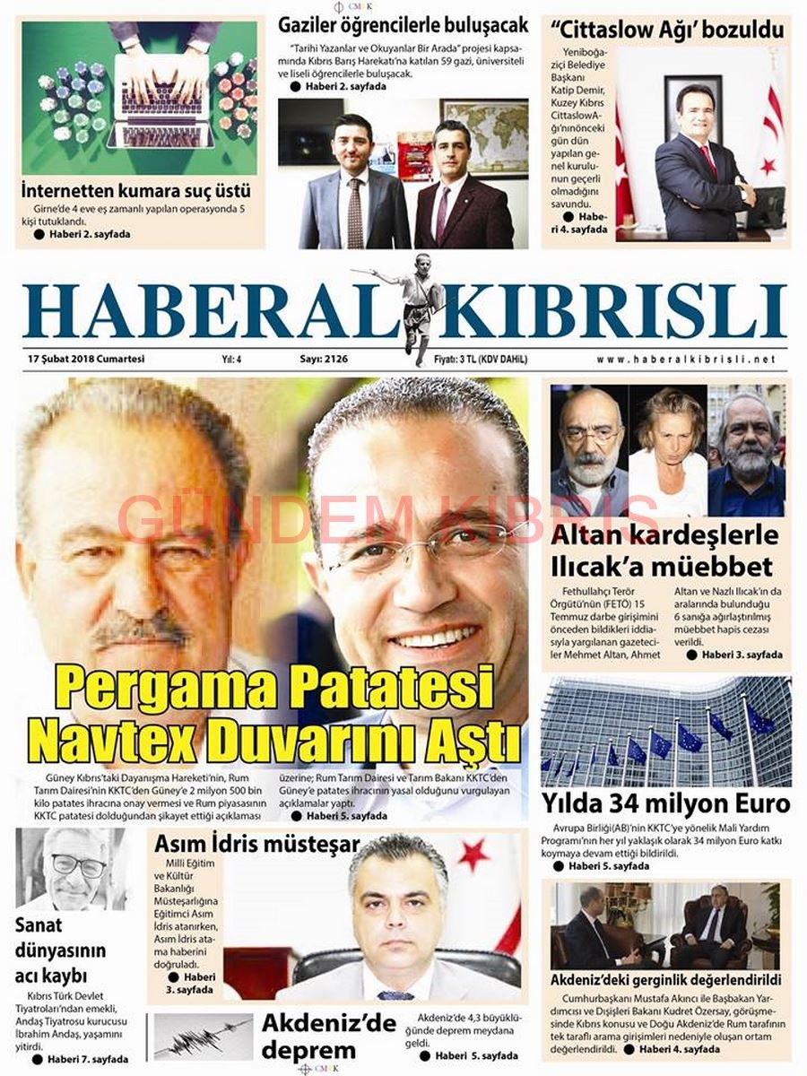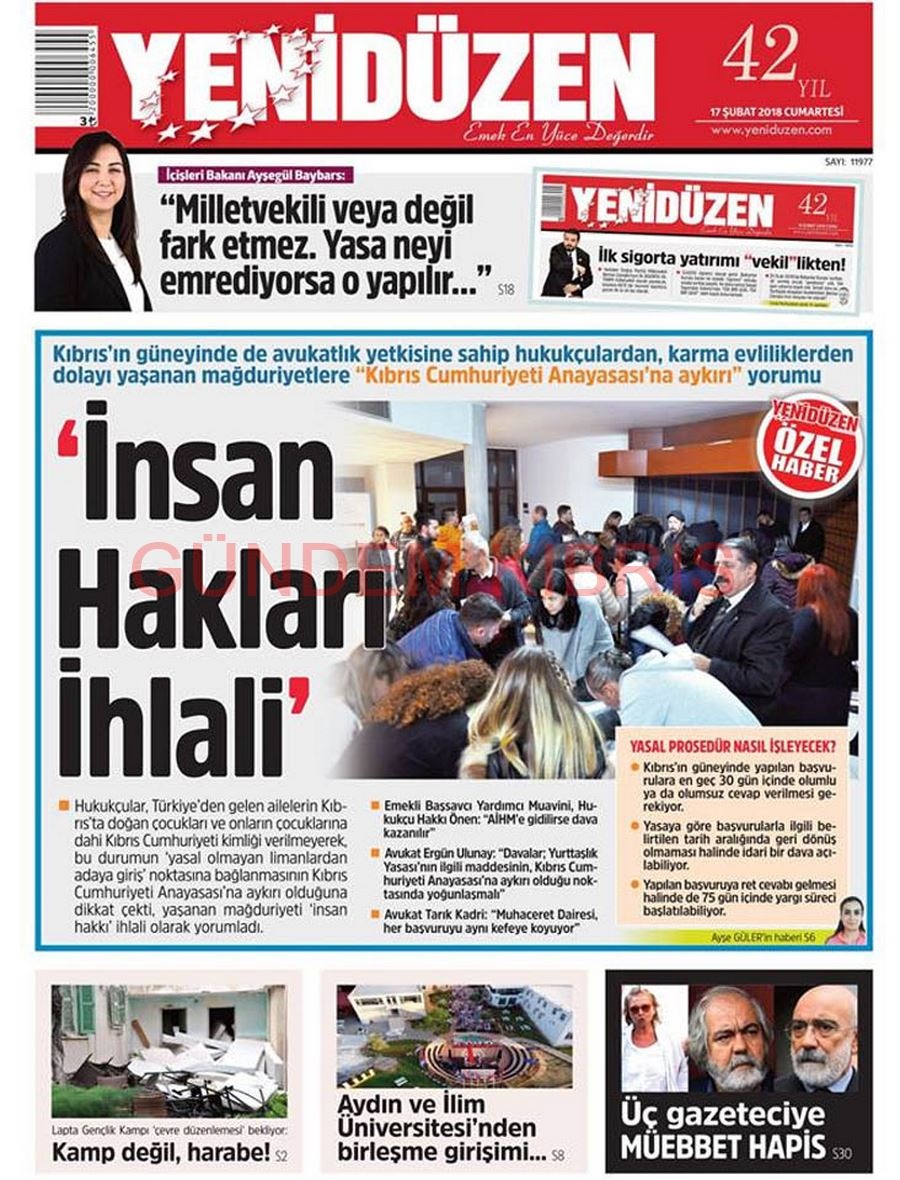 KKTC Gazete Manşetleri 17 Şubat 2018