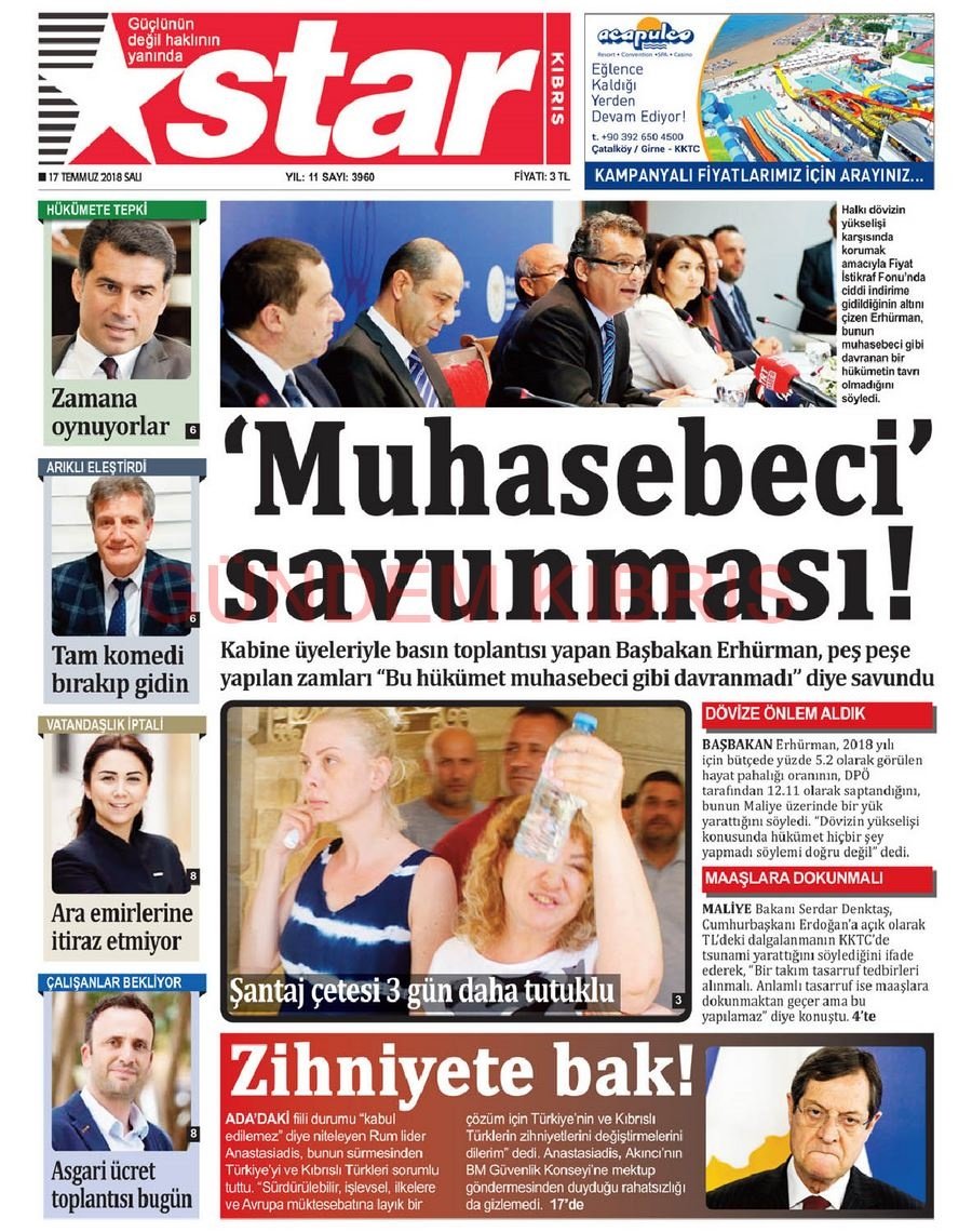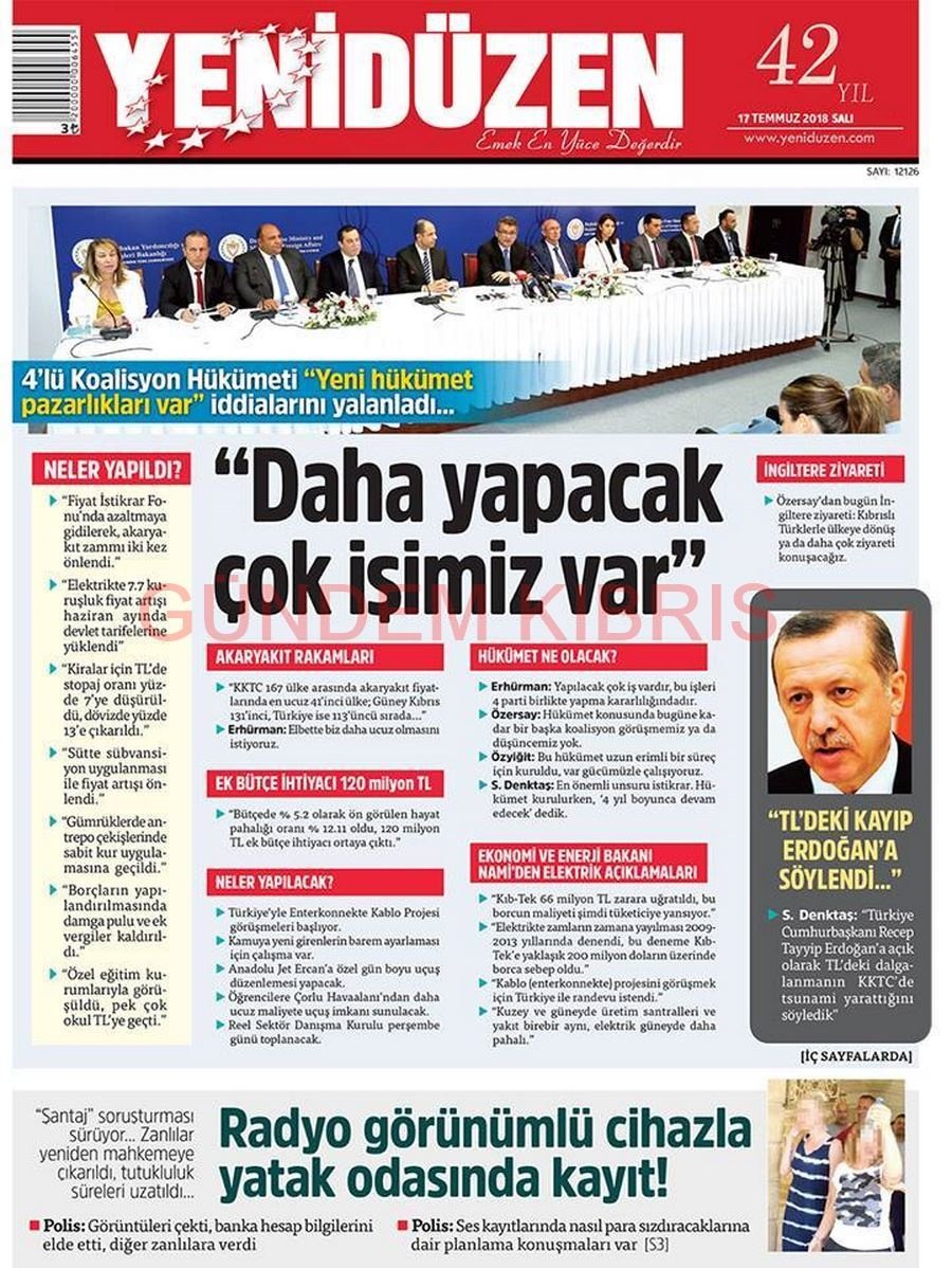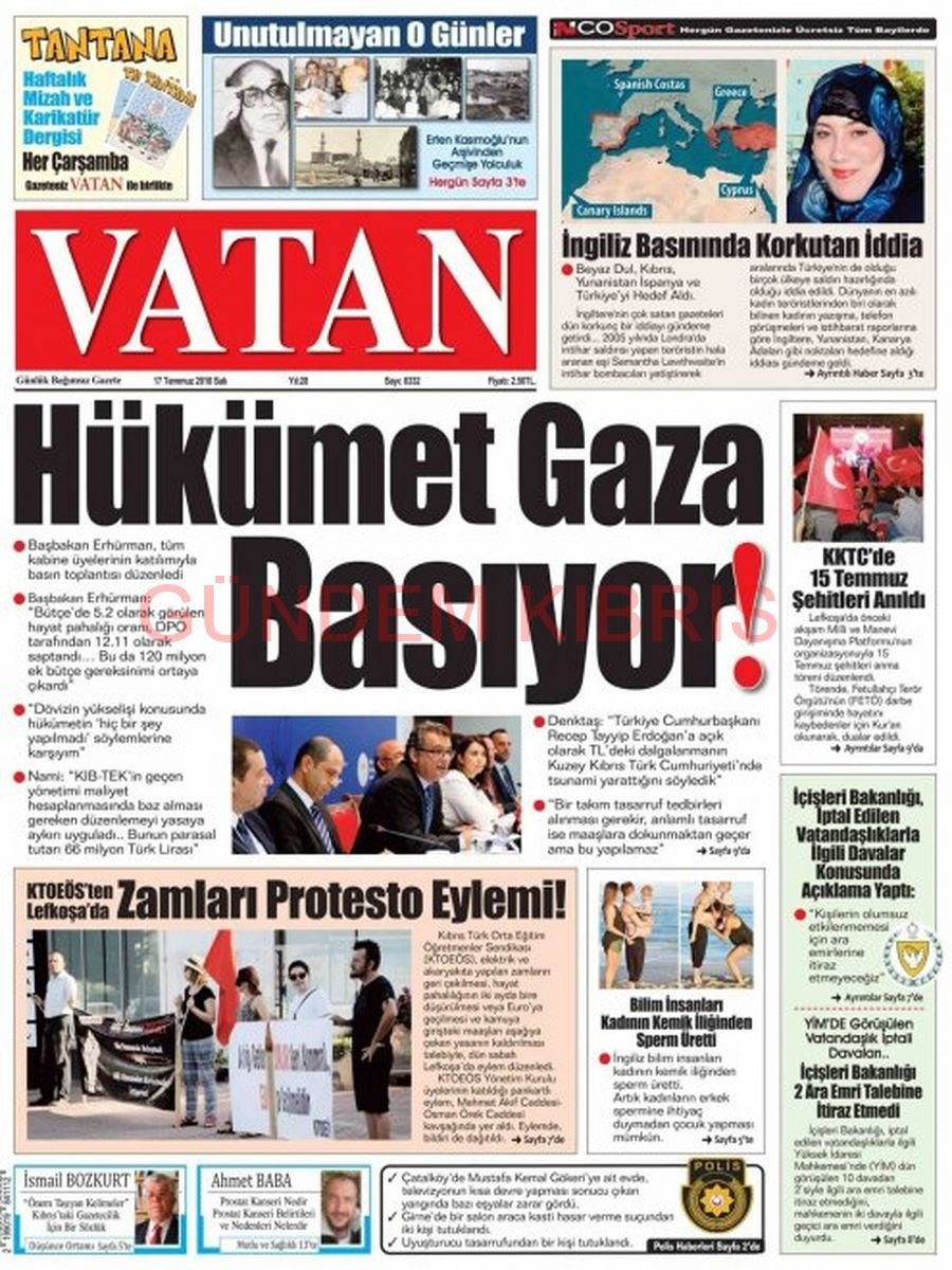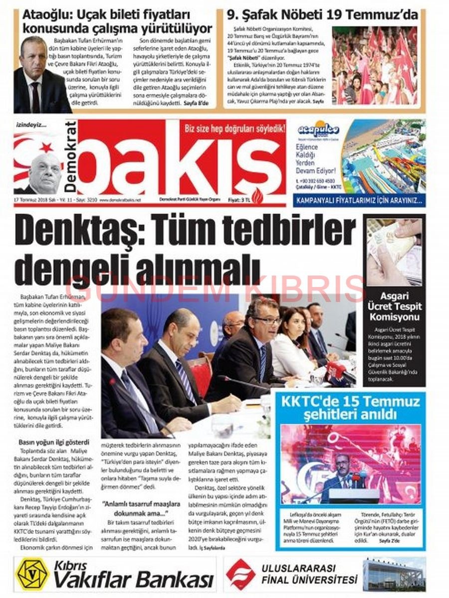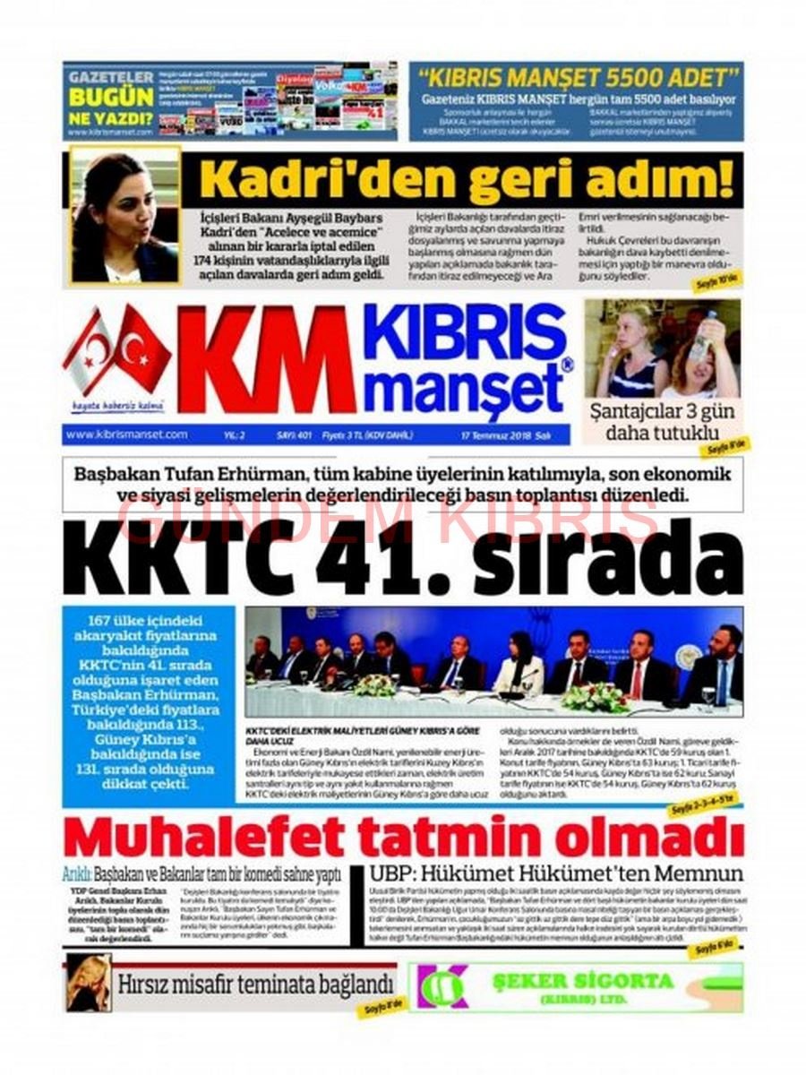 KKTC Gazete Manşetleri 17 Temmuz 2018