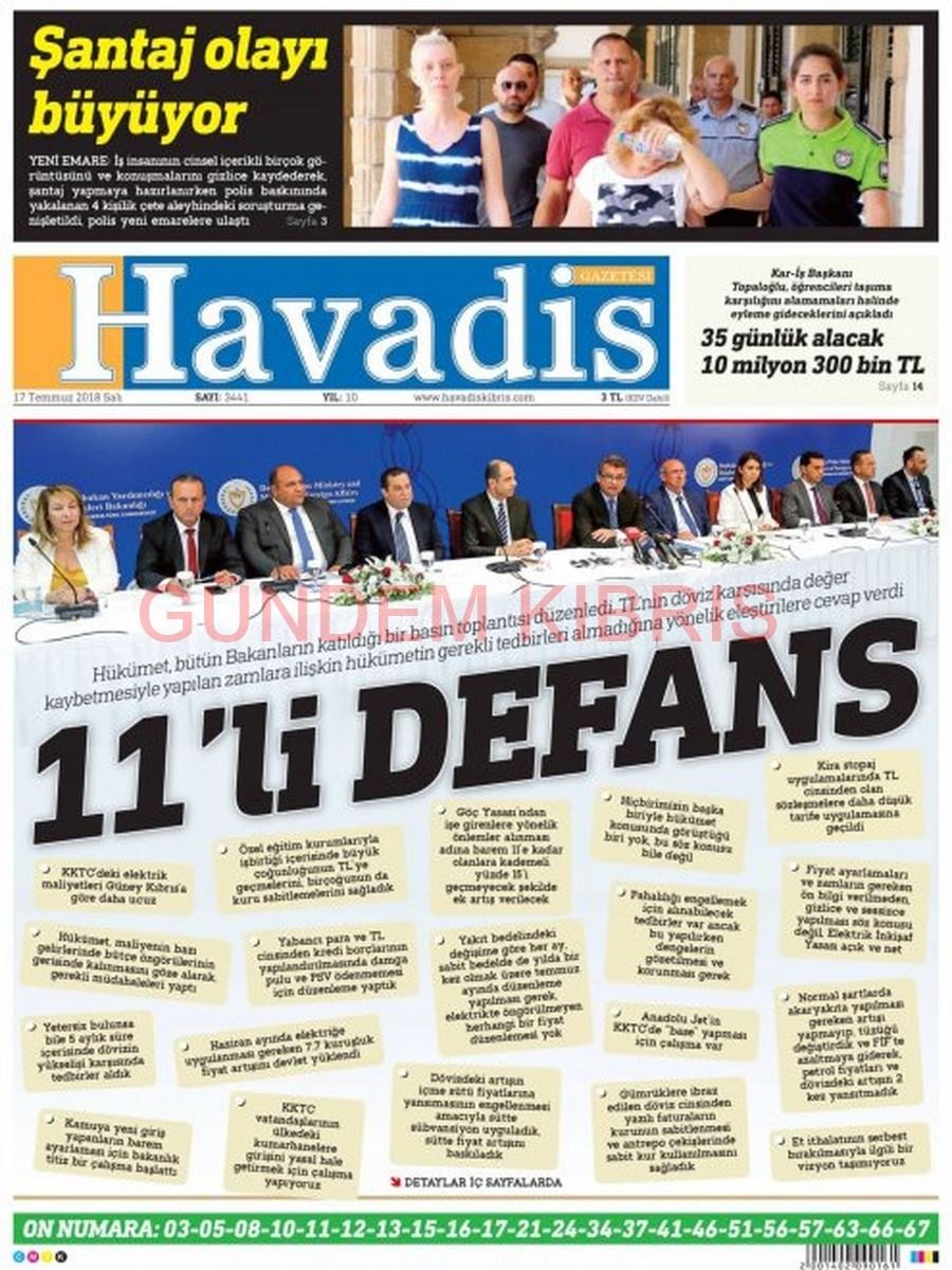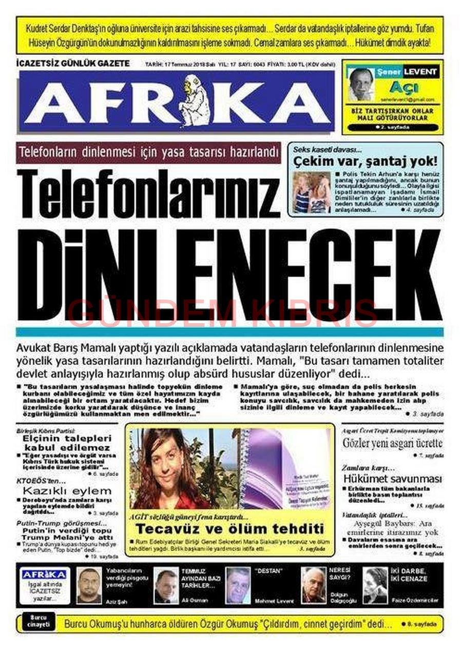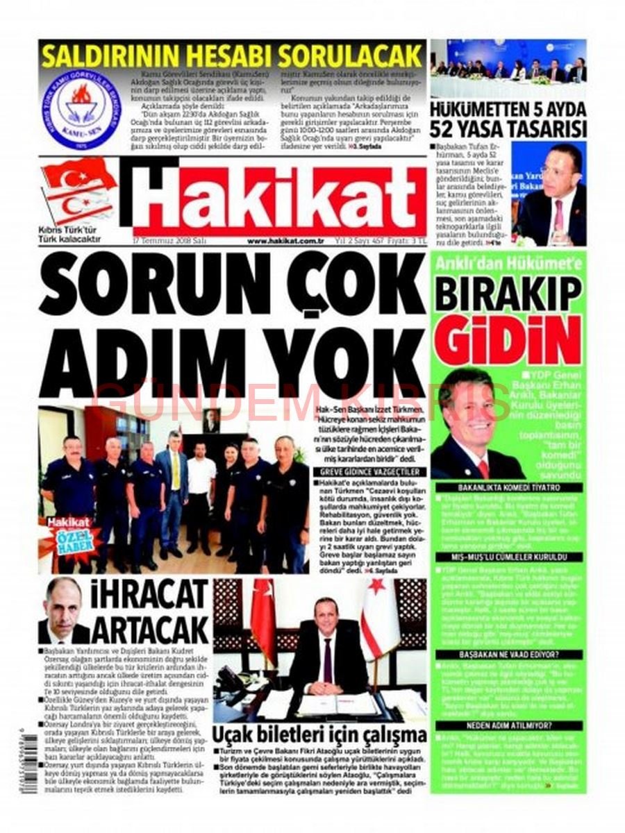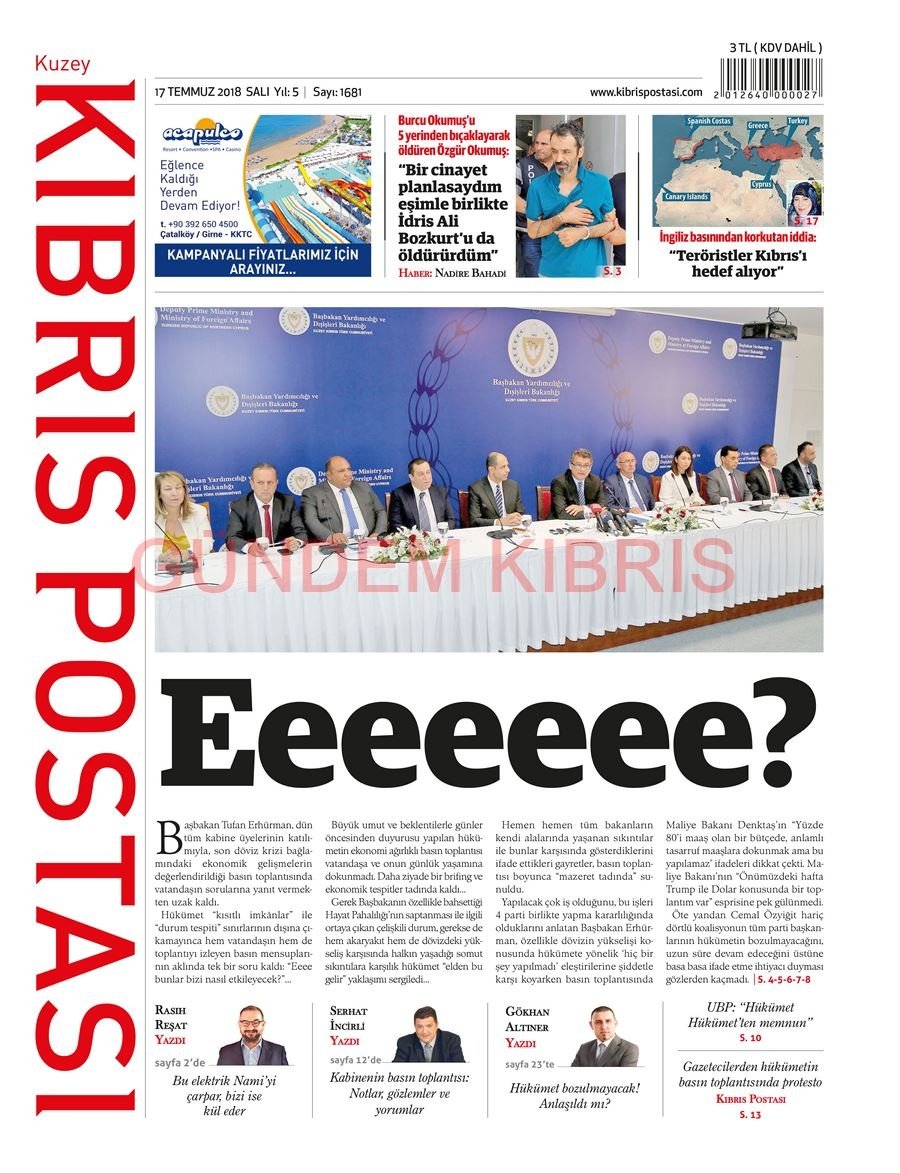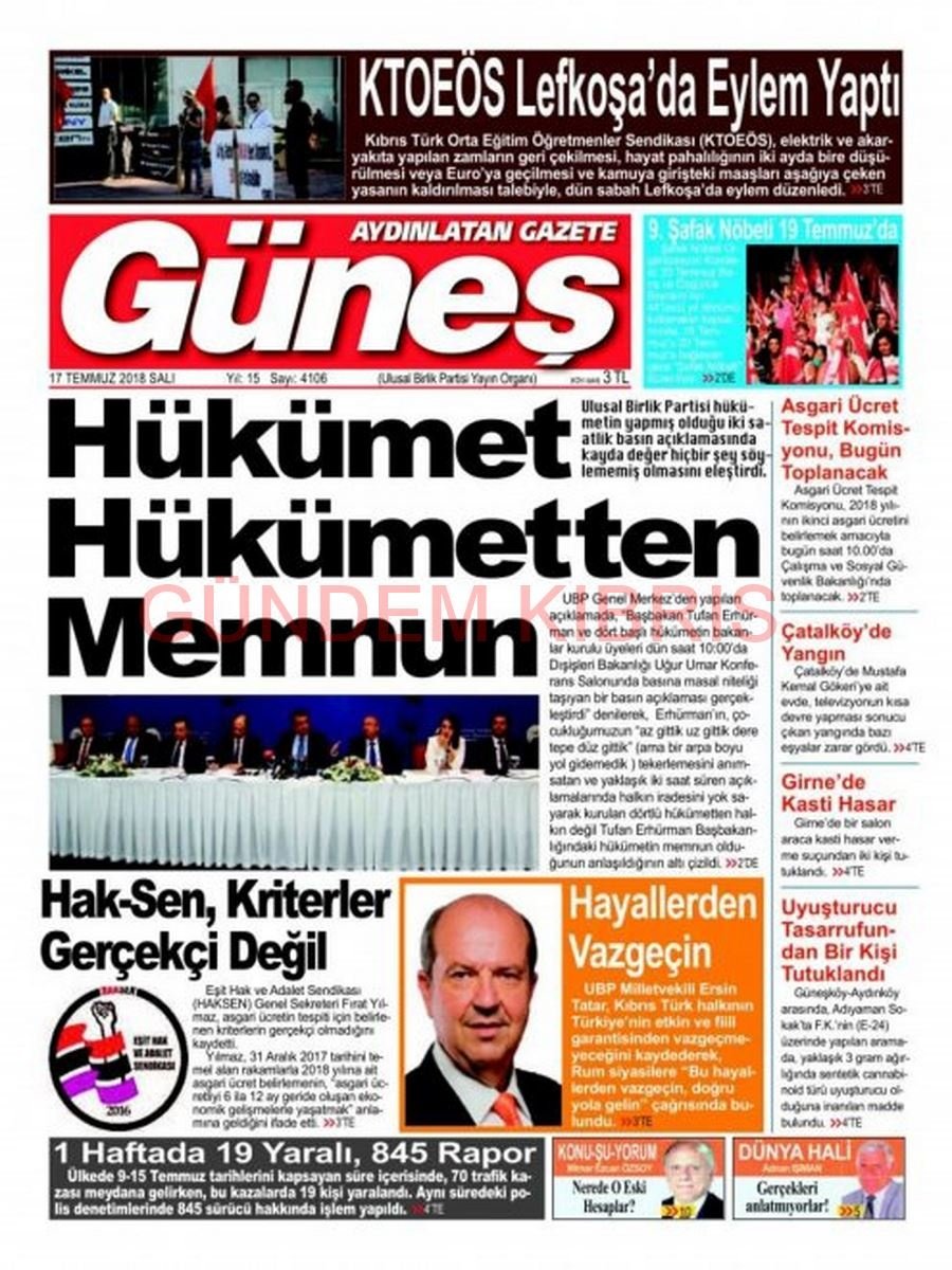 KKTC Gazete Manşetleri 17 Temmuz 2018
