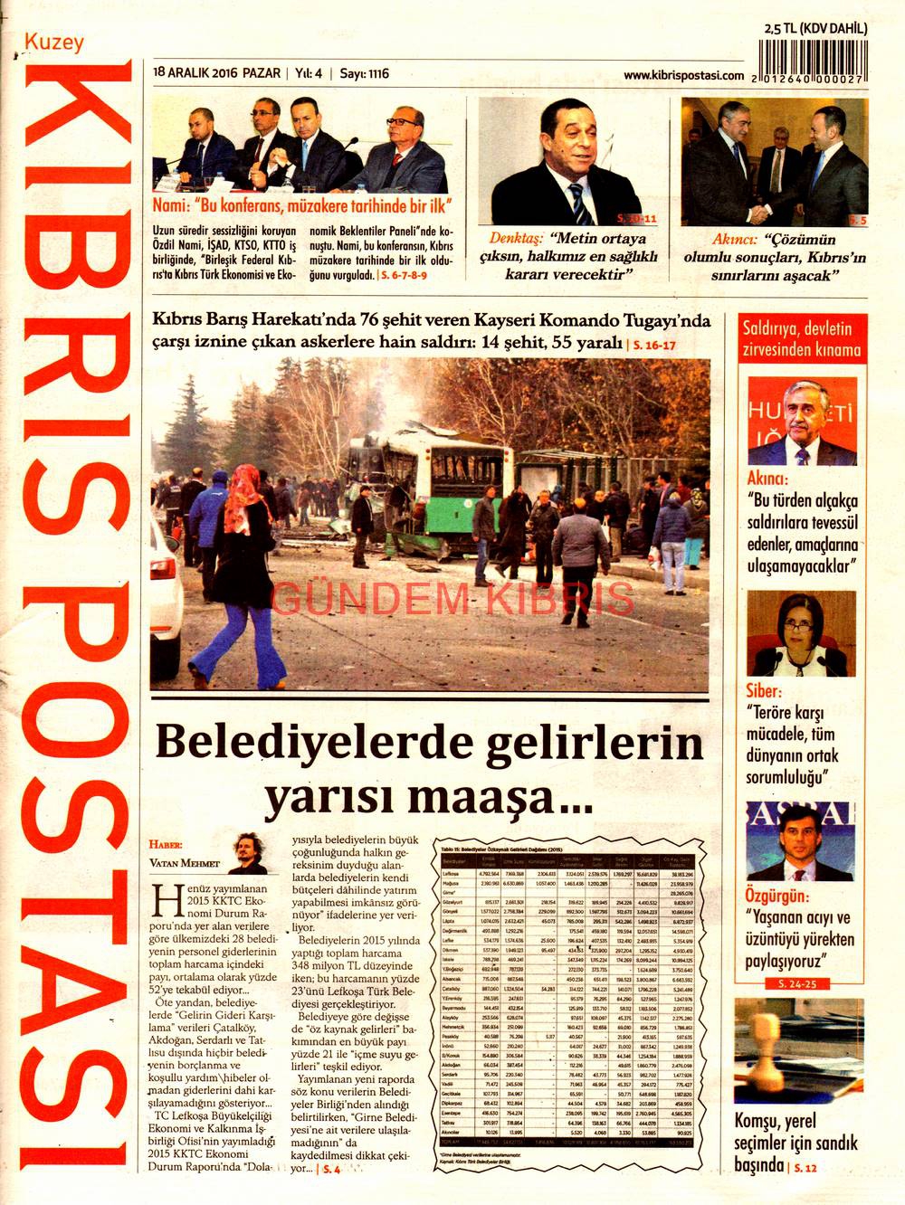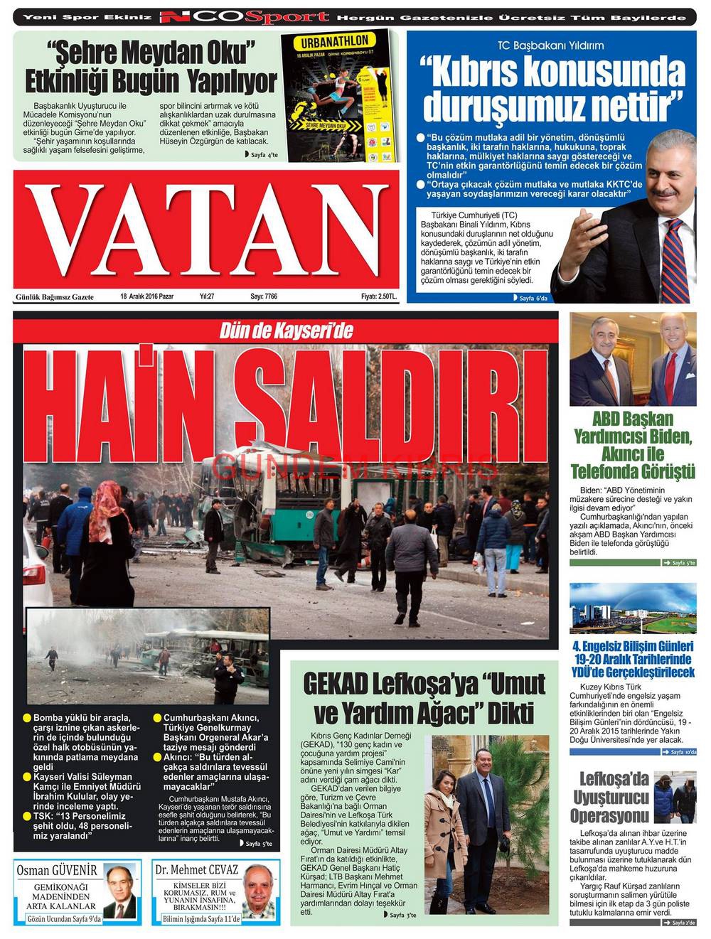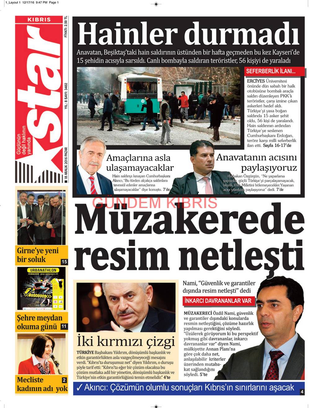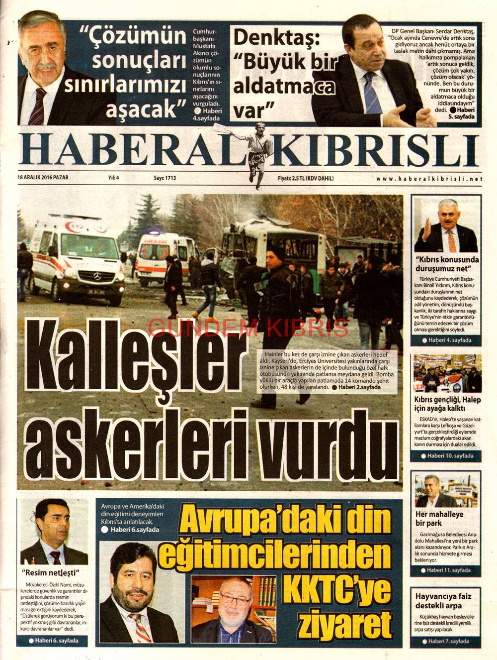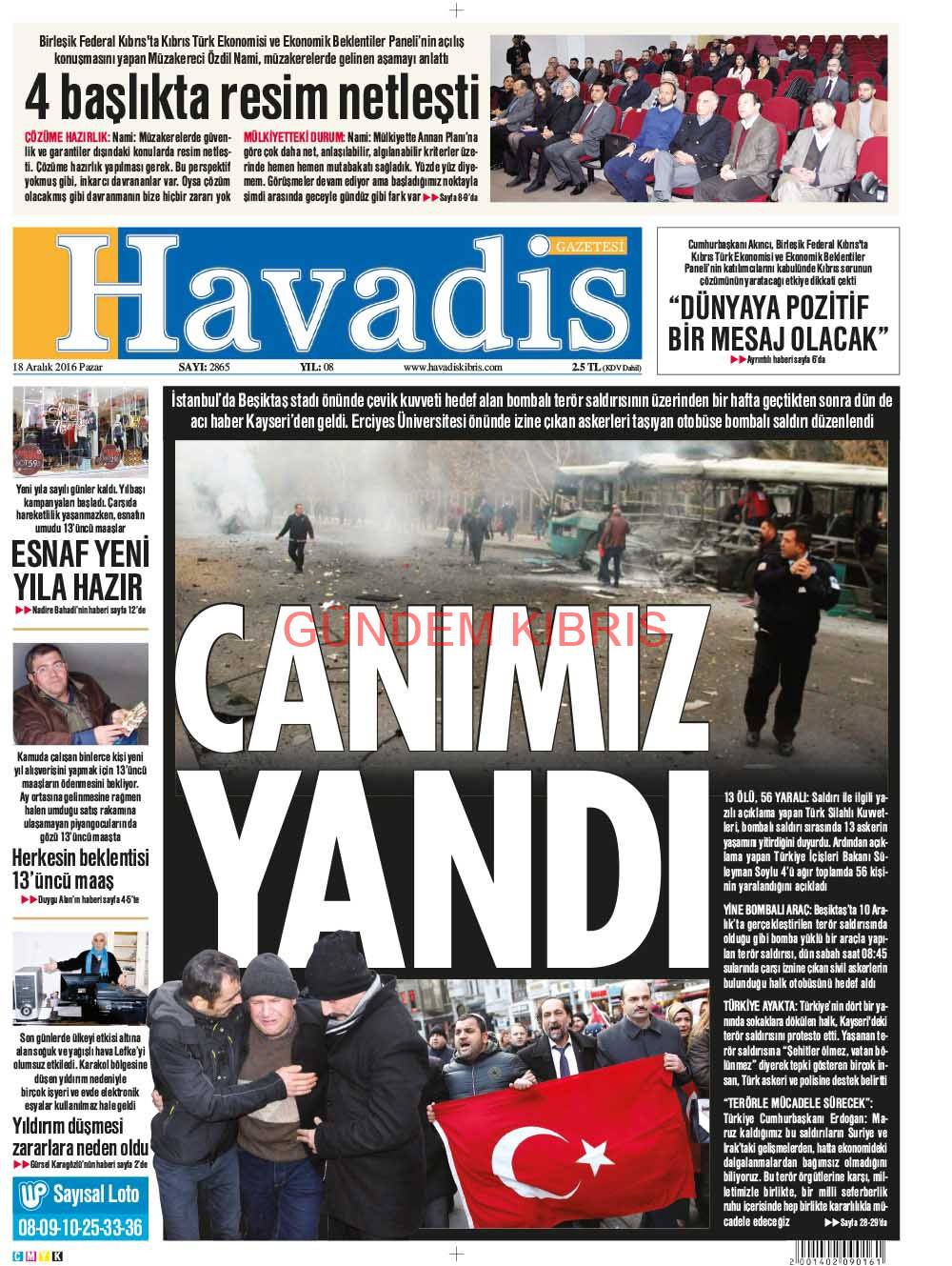 KKTC Gazete Manşetleri 18 Aralık 2016