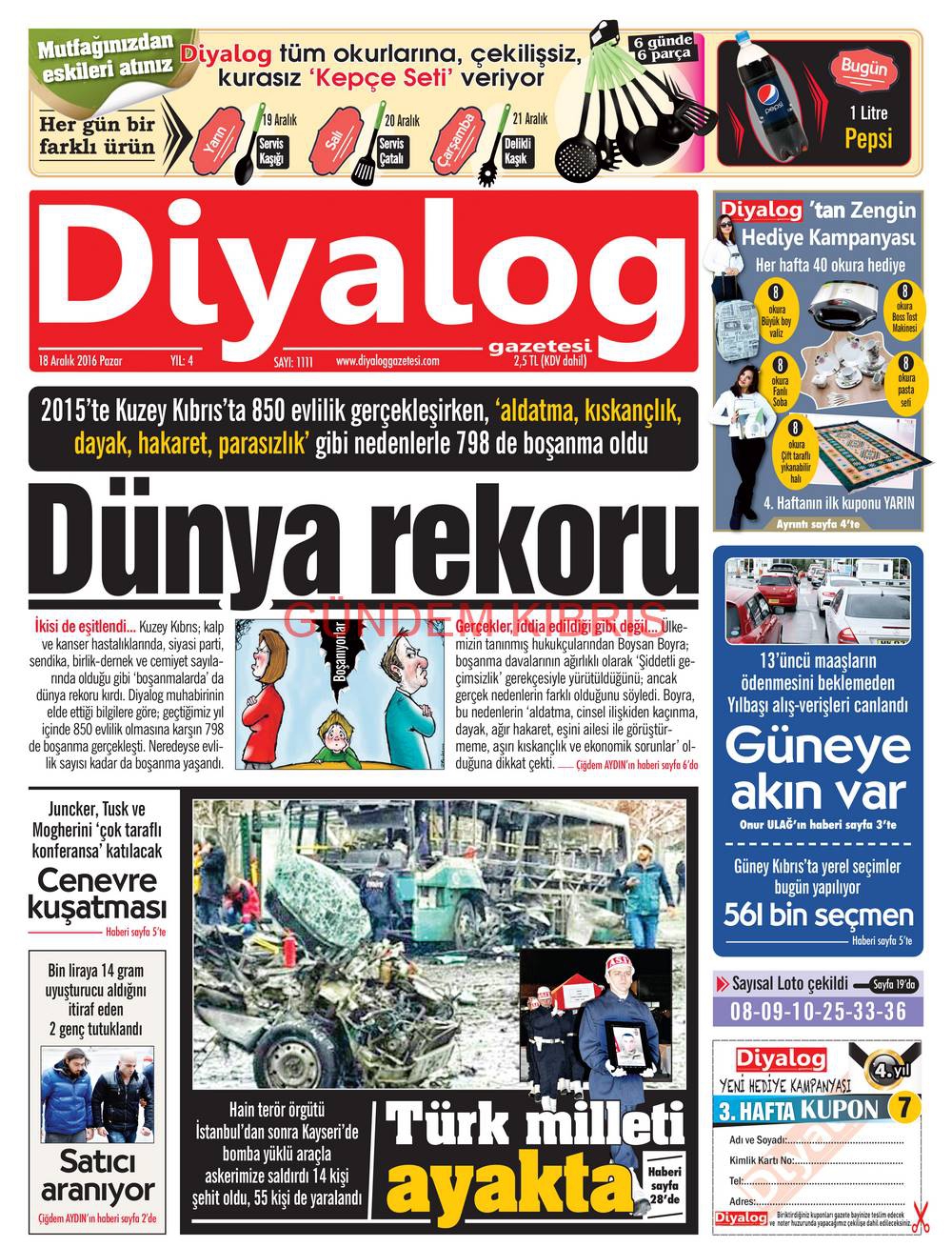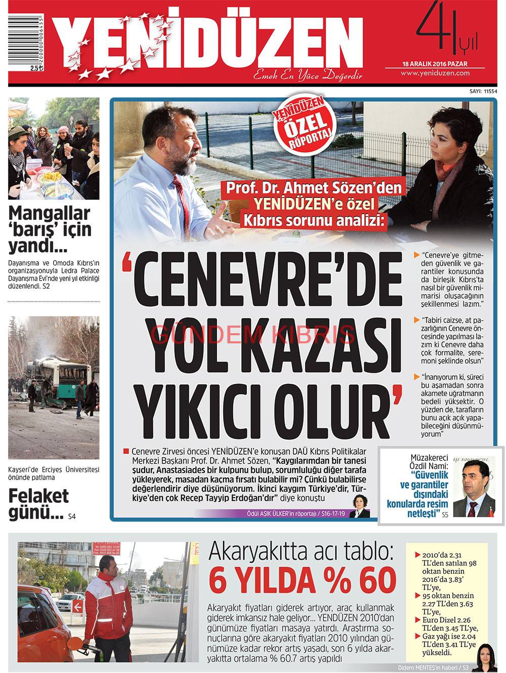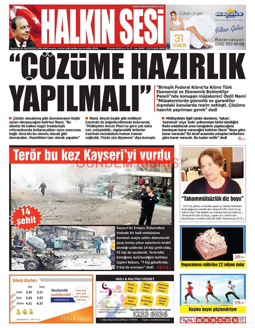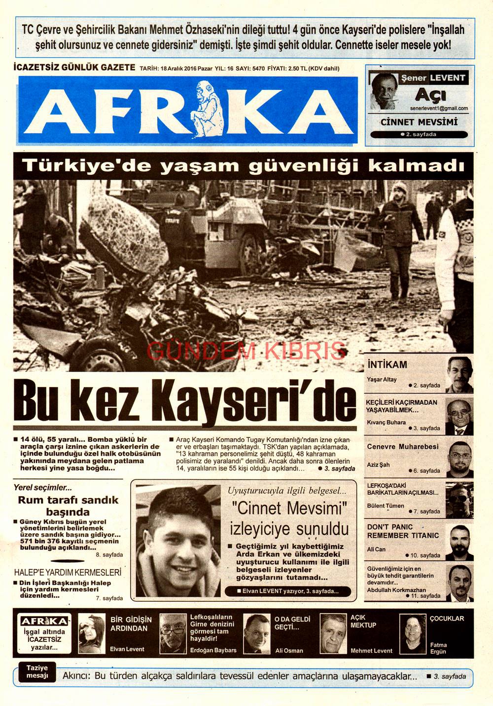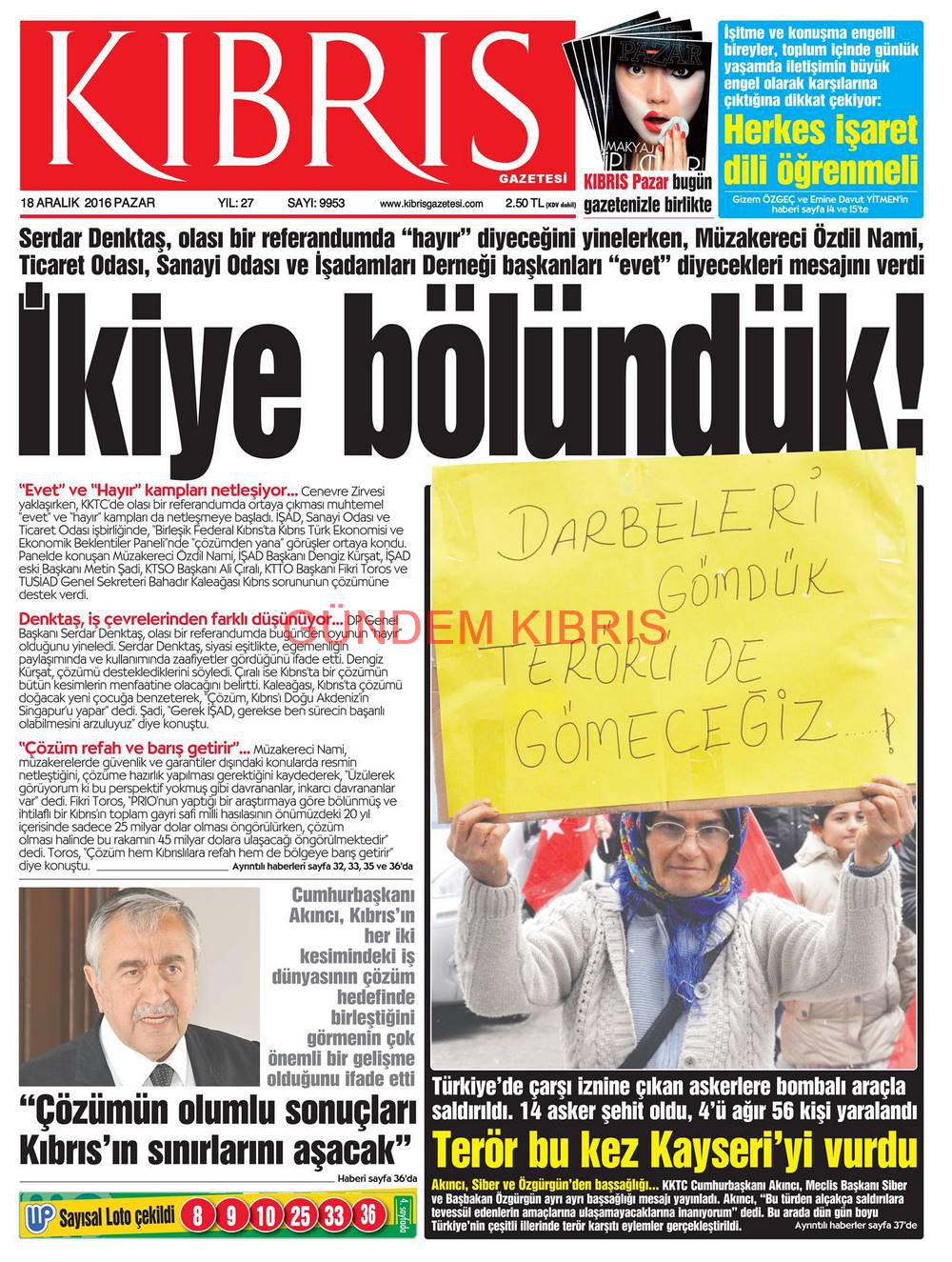 KKTC Gazete Manşetleri 18 Aralık 2016