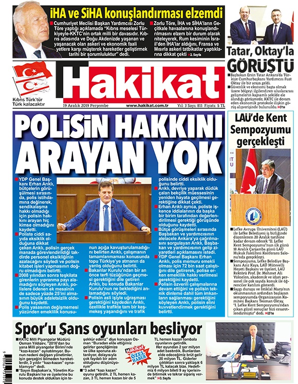 KKTC Gazete Manşetleri 18 Aralık 2019