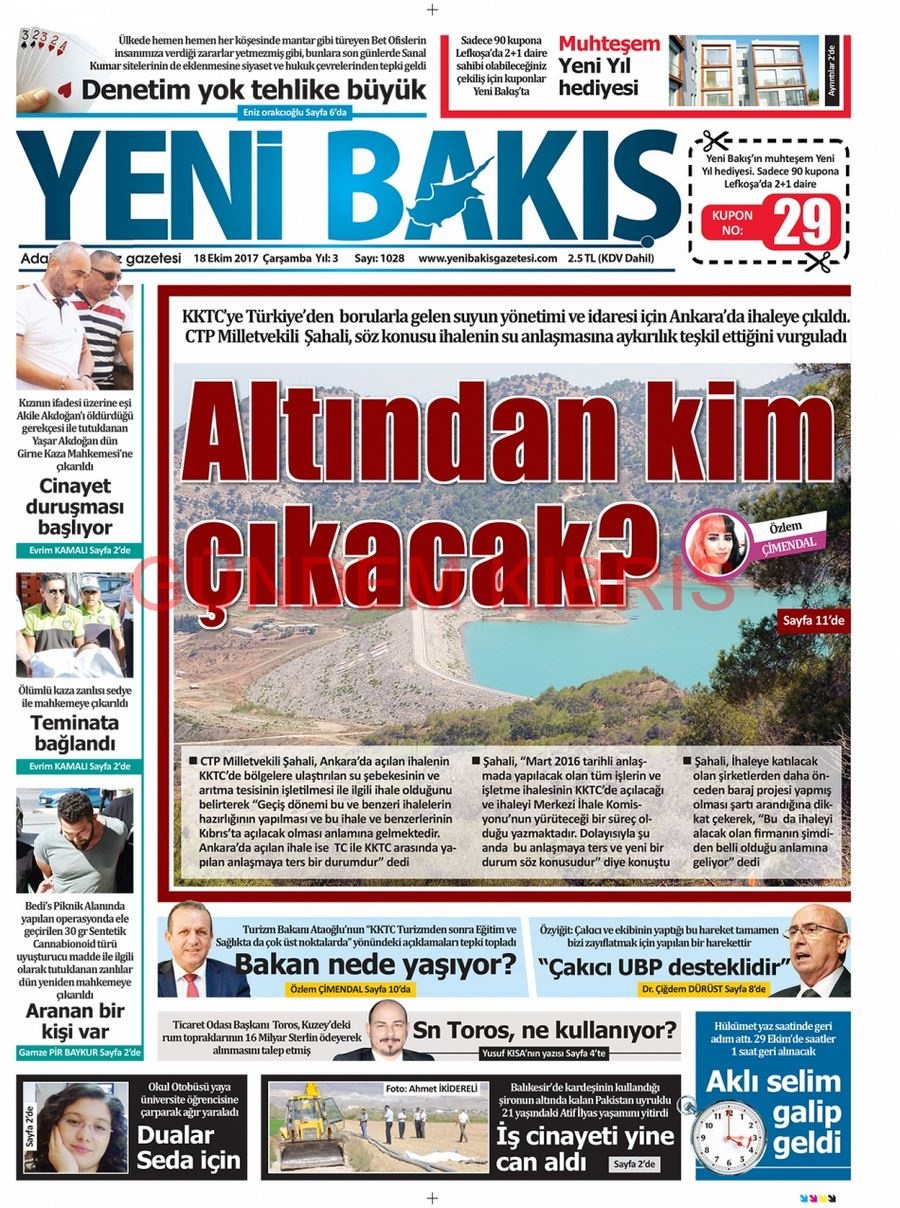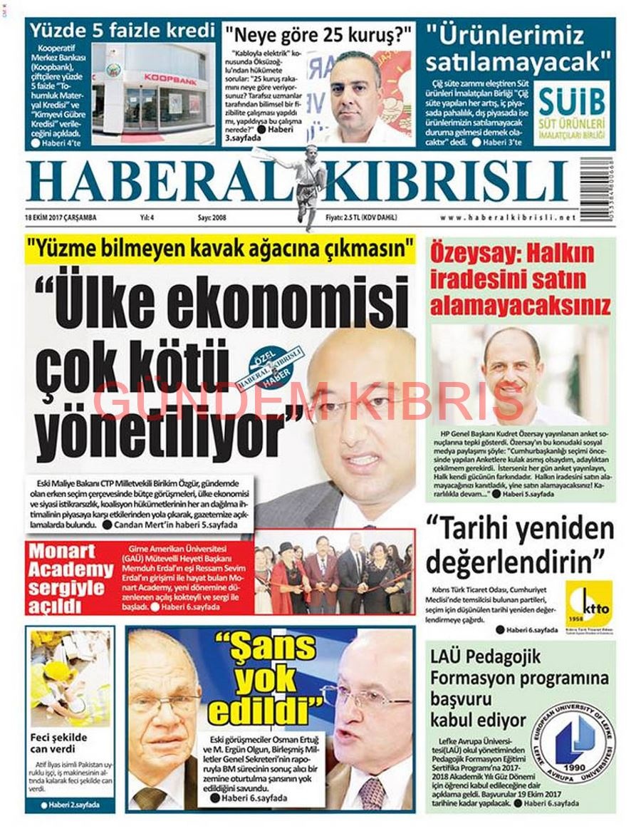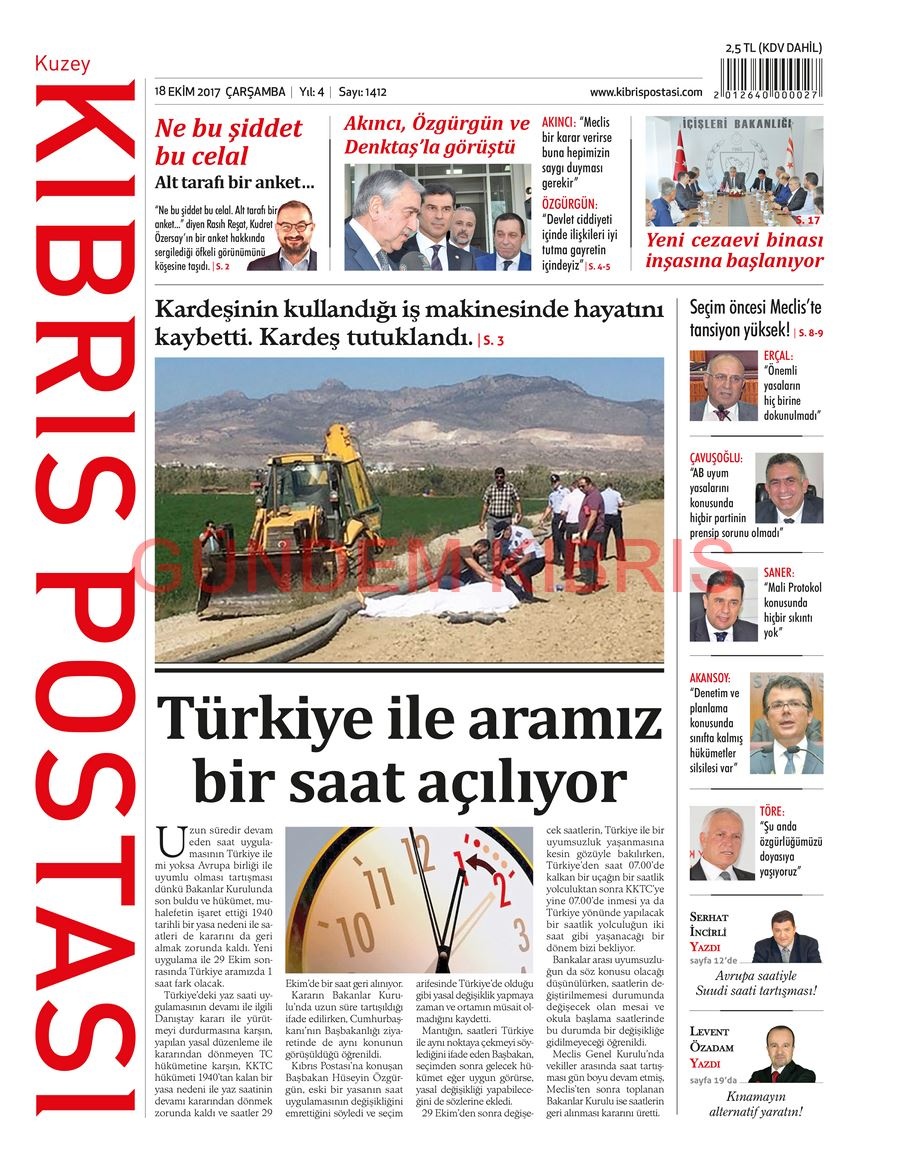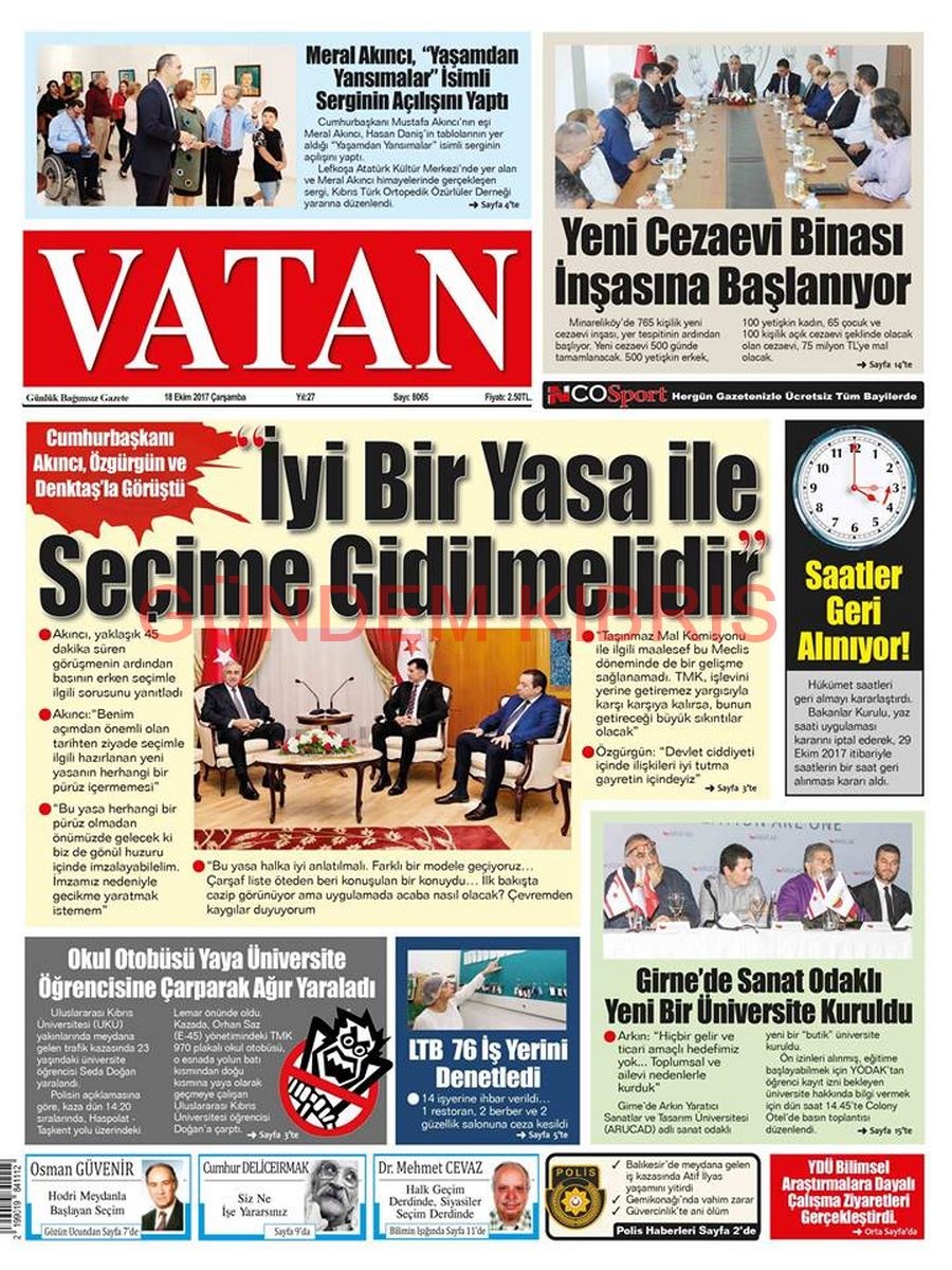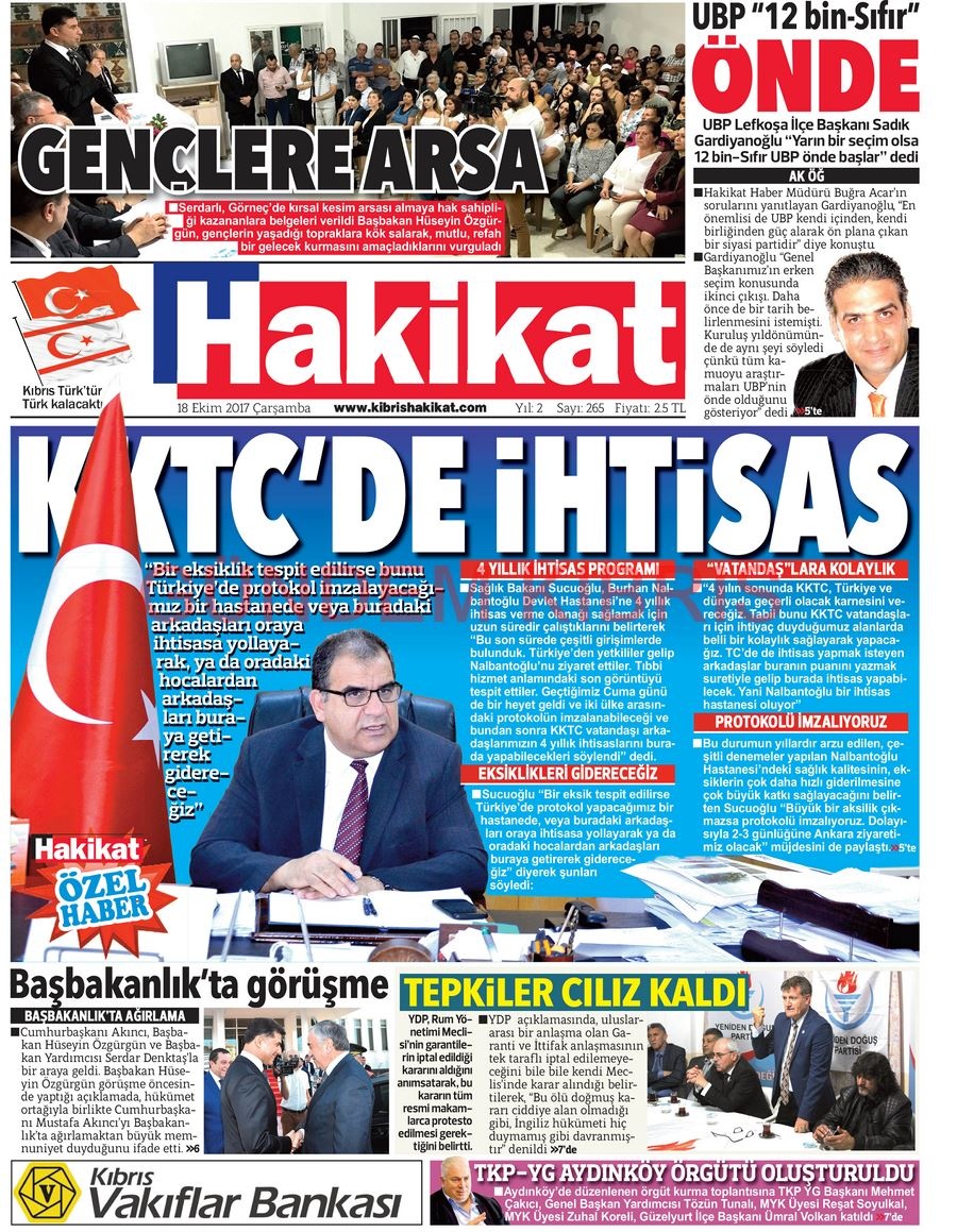 KKTC Gazete Manşetleri 18 Ekim 2017