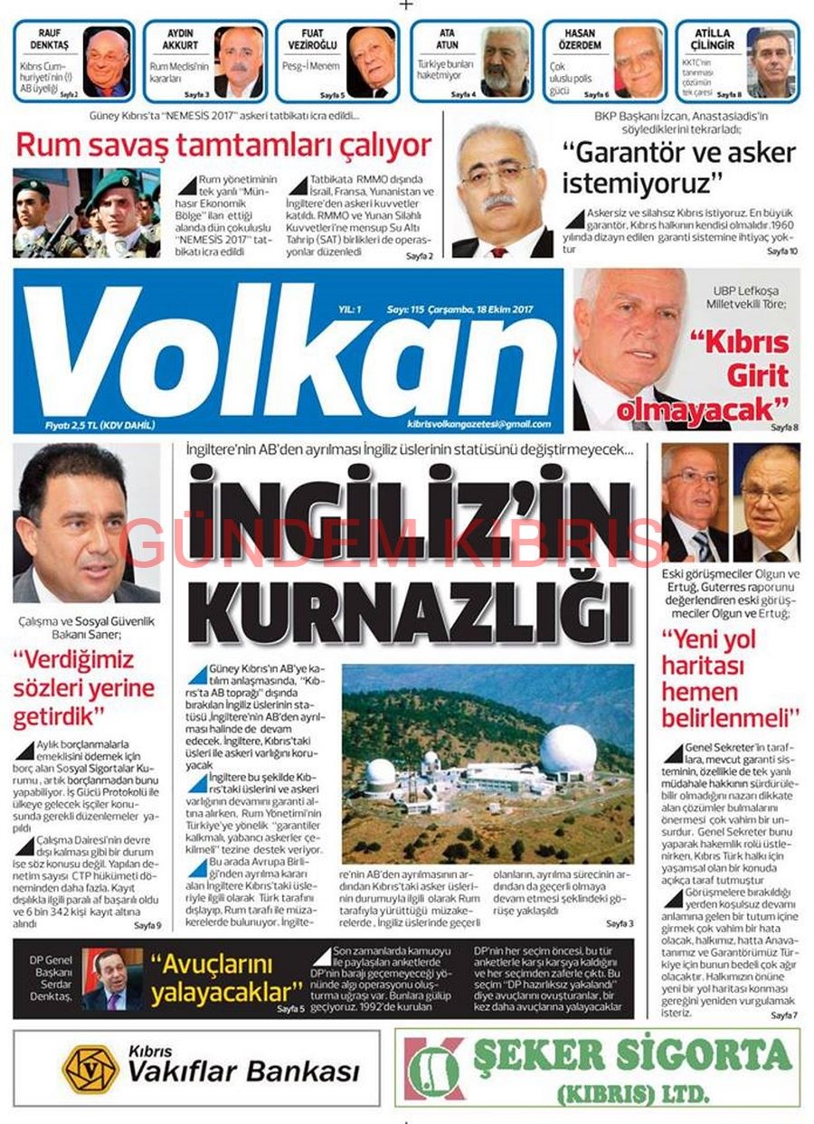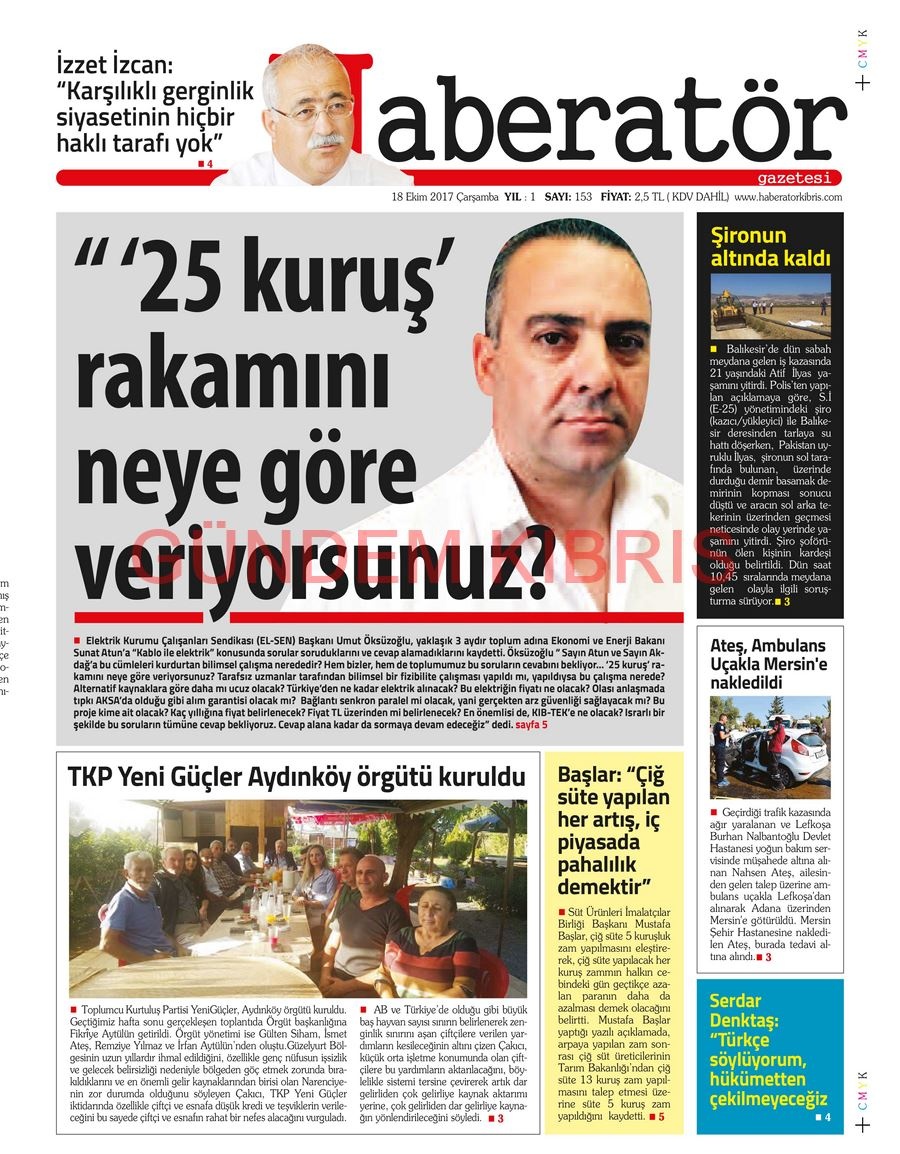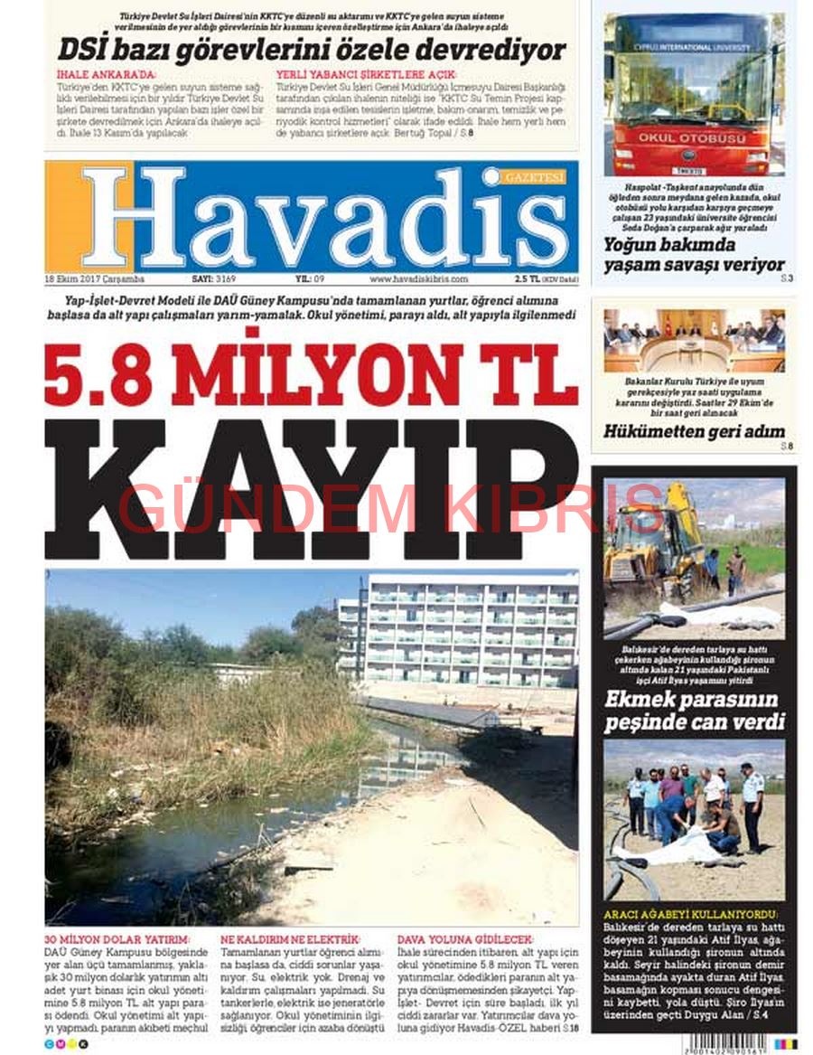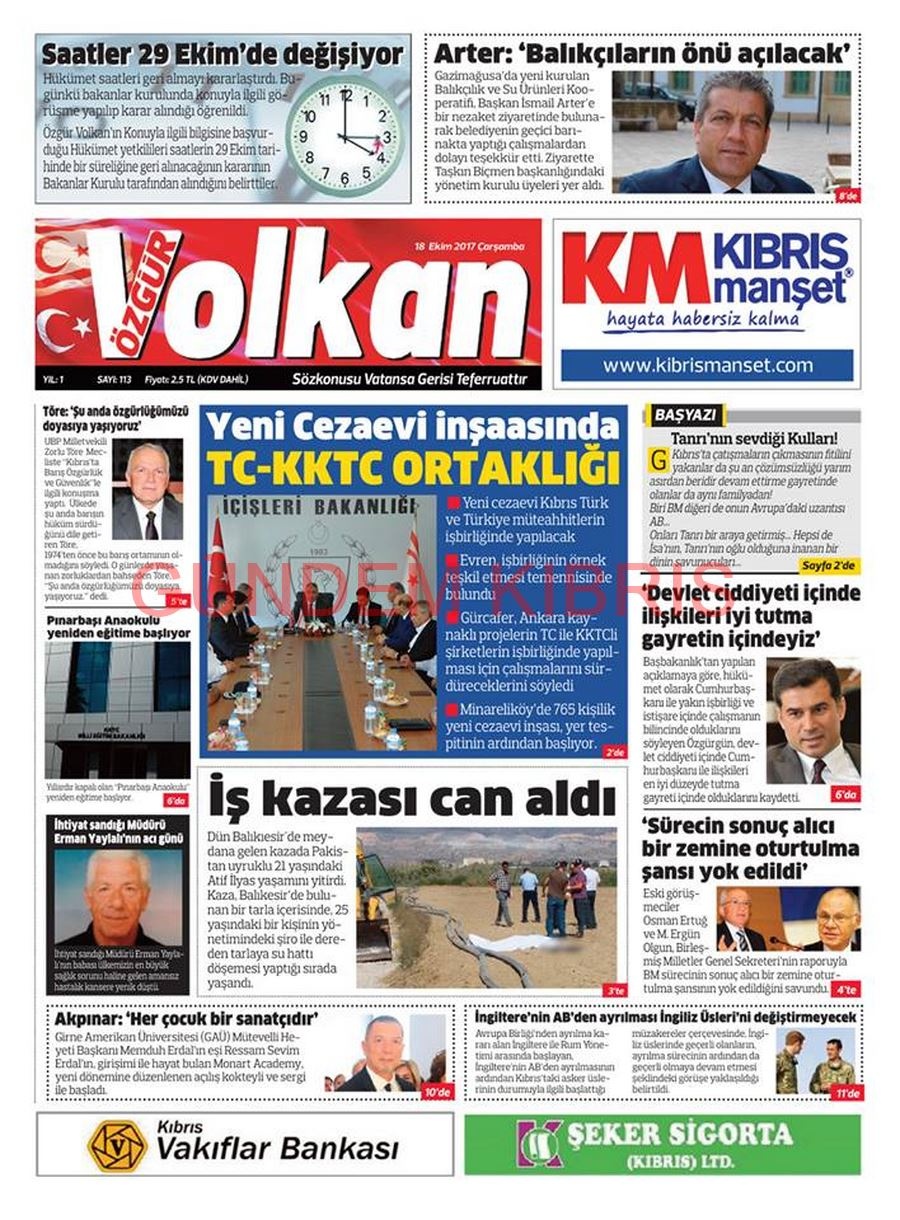 KKTC Gazete Manşetleri 18 Ekim 2017