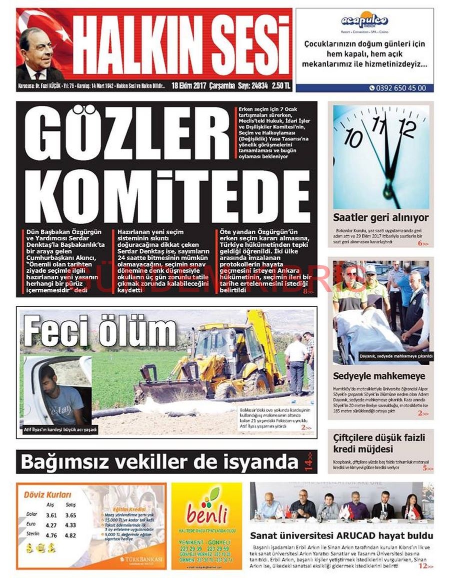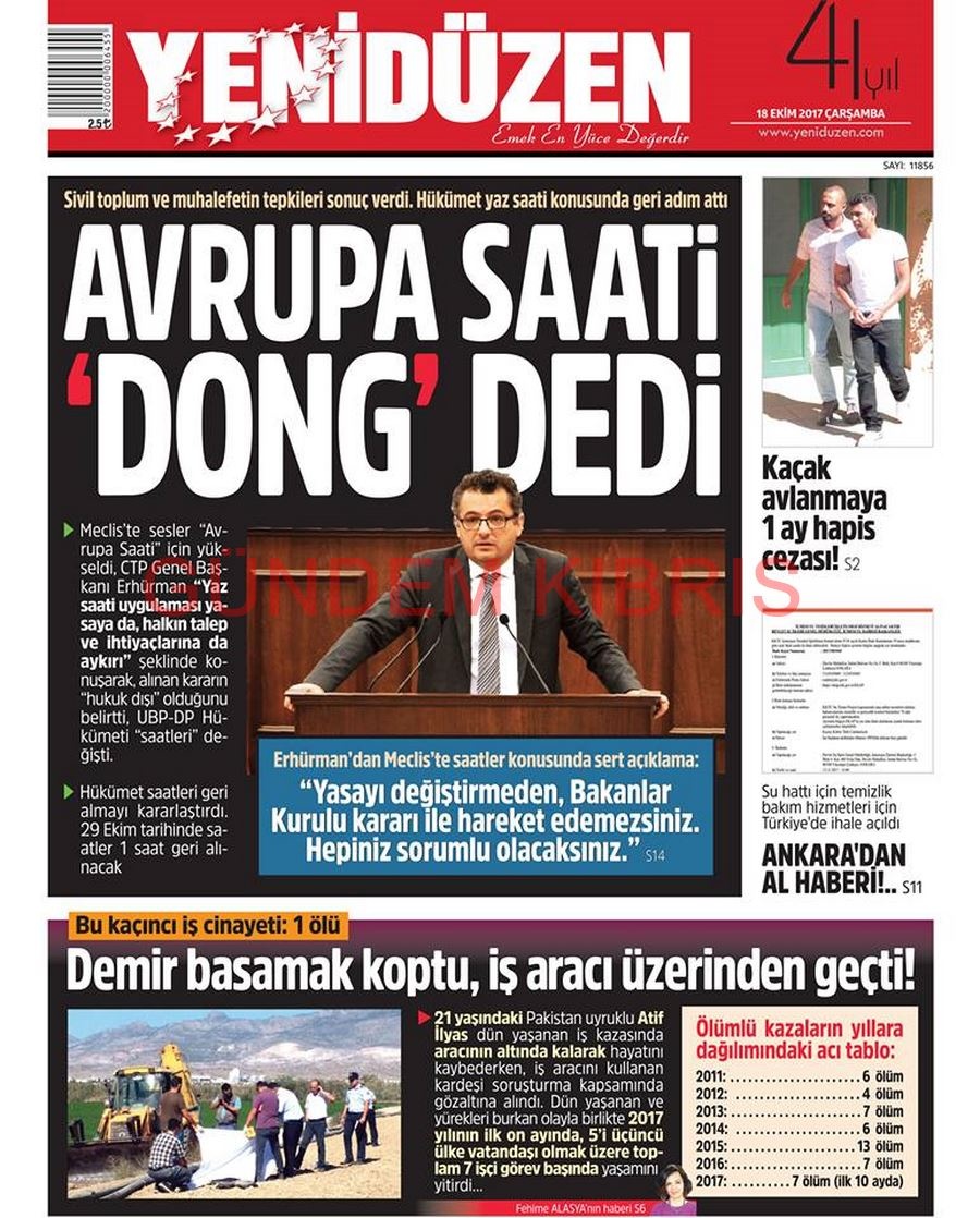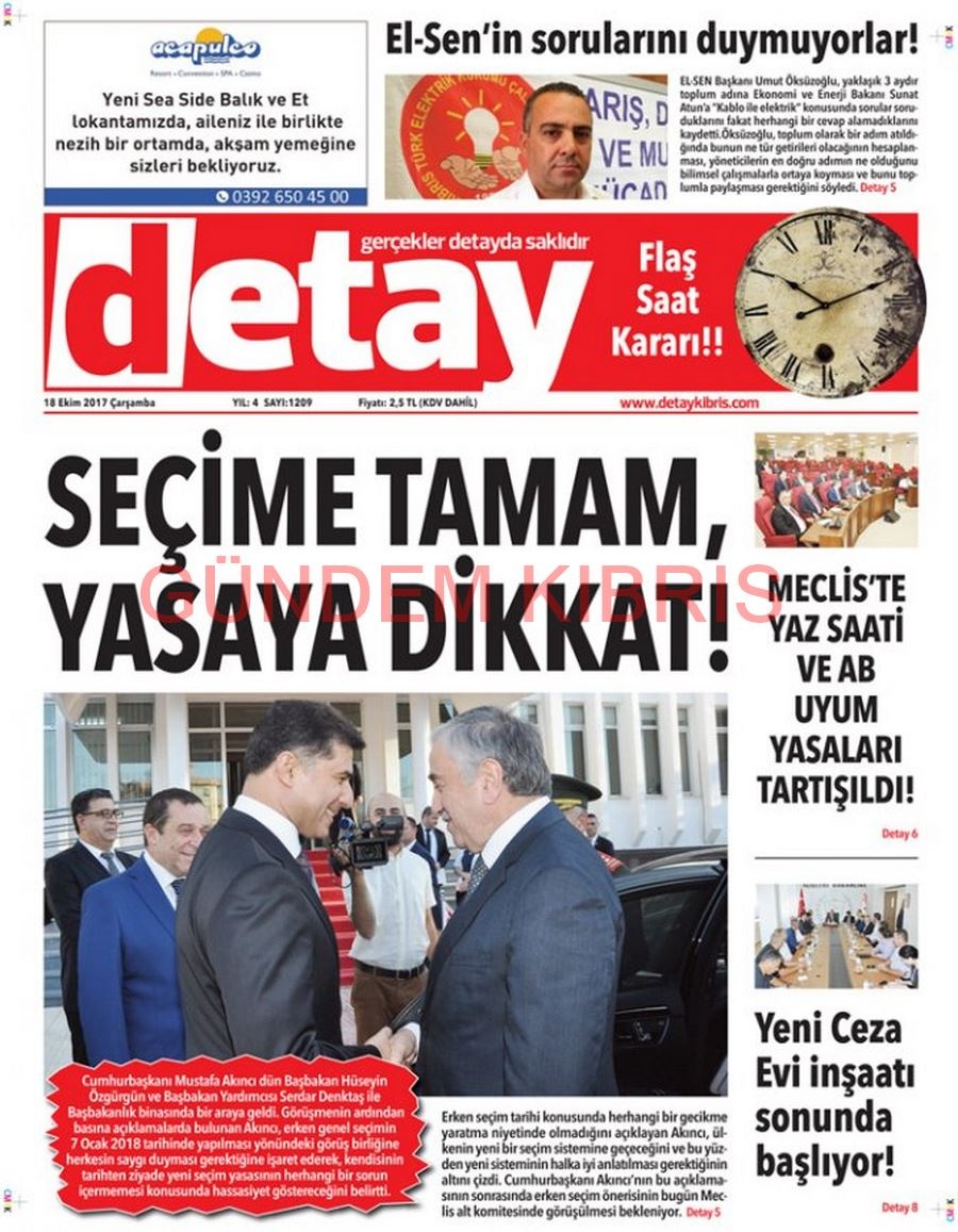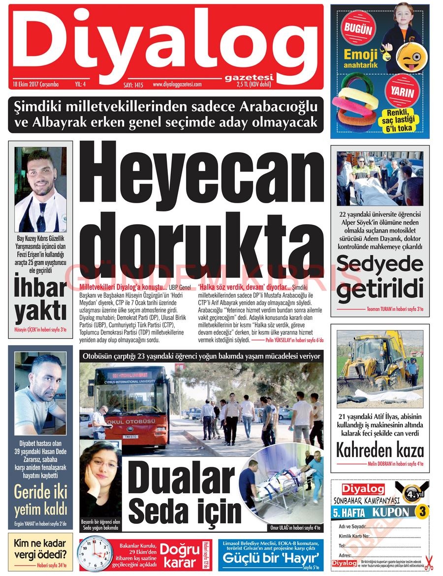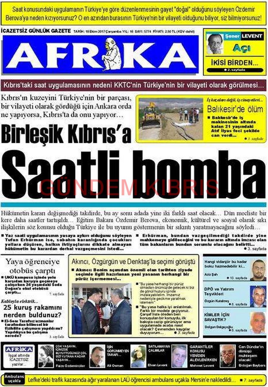 KKTC Gazete Manşetleri 18 Ekim 2017