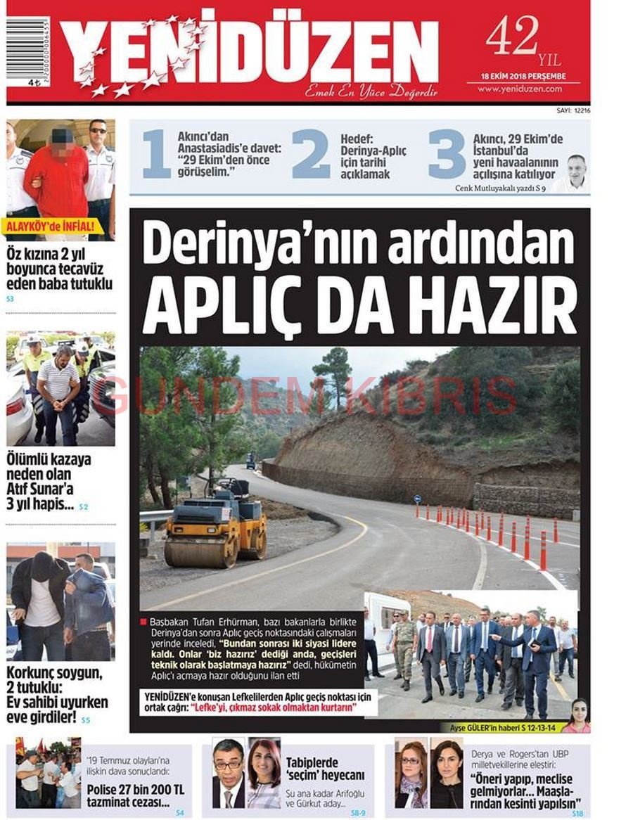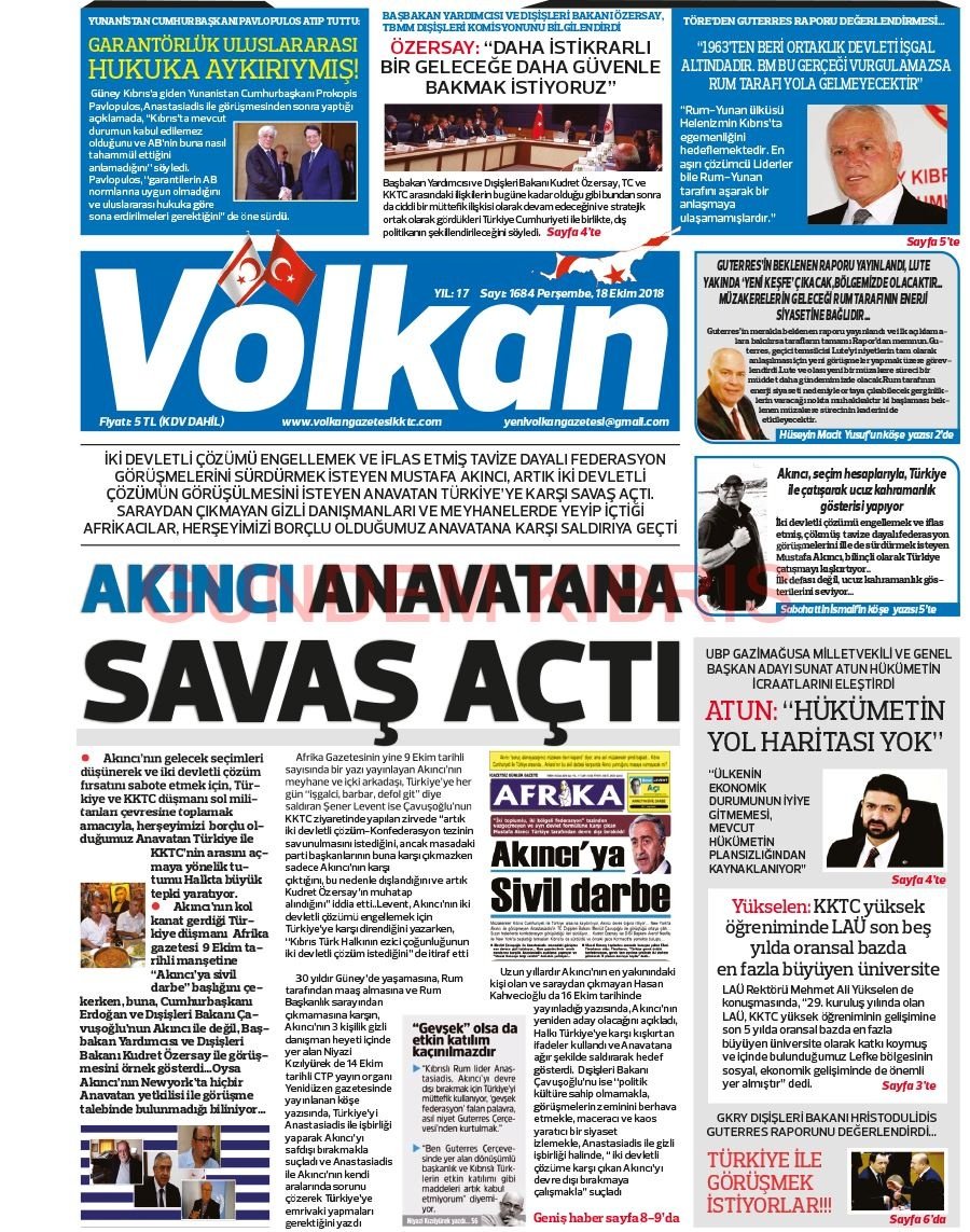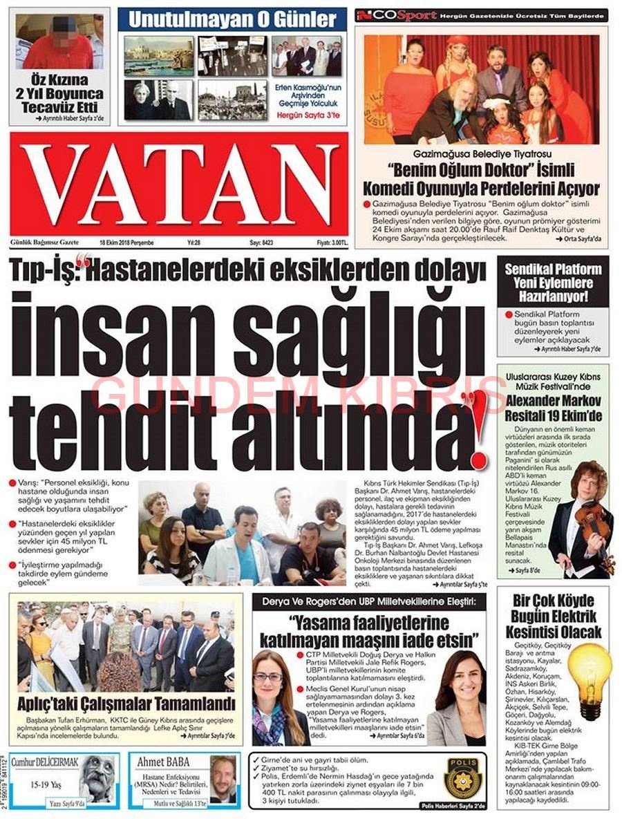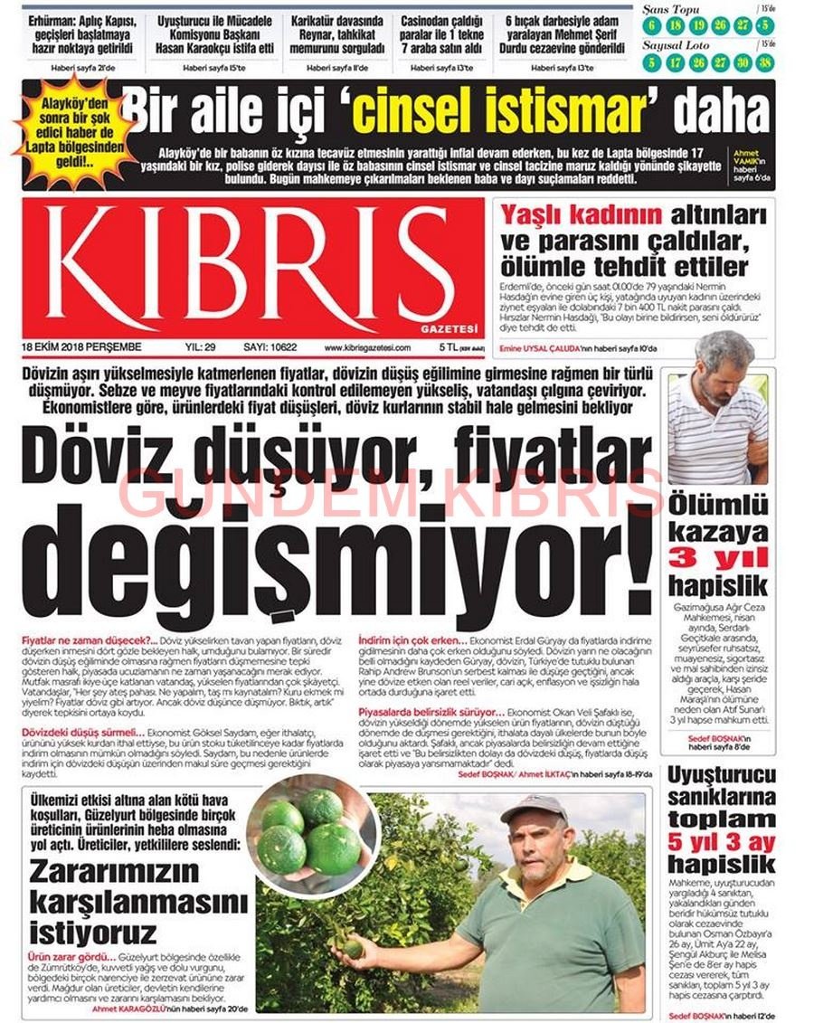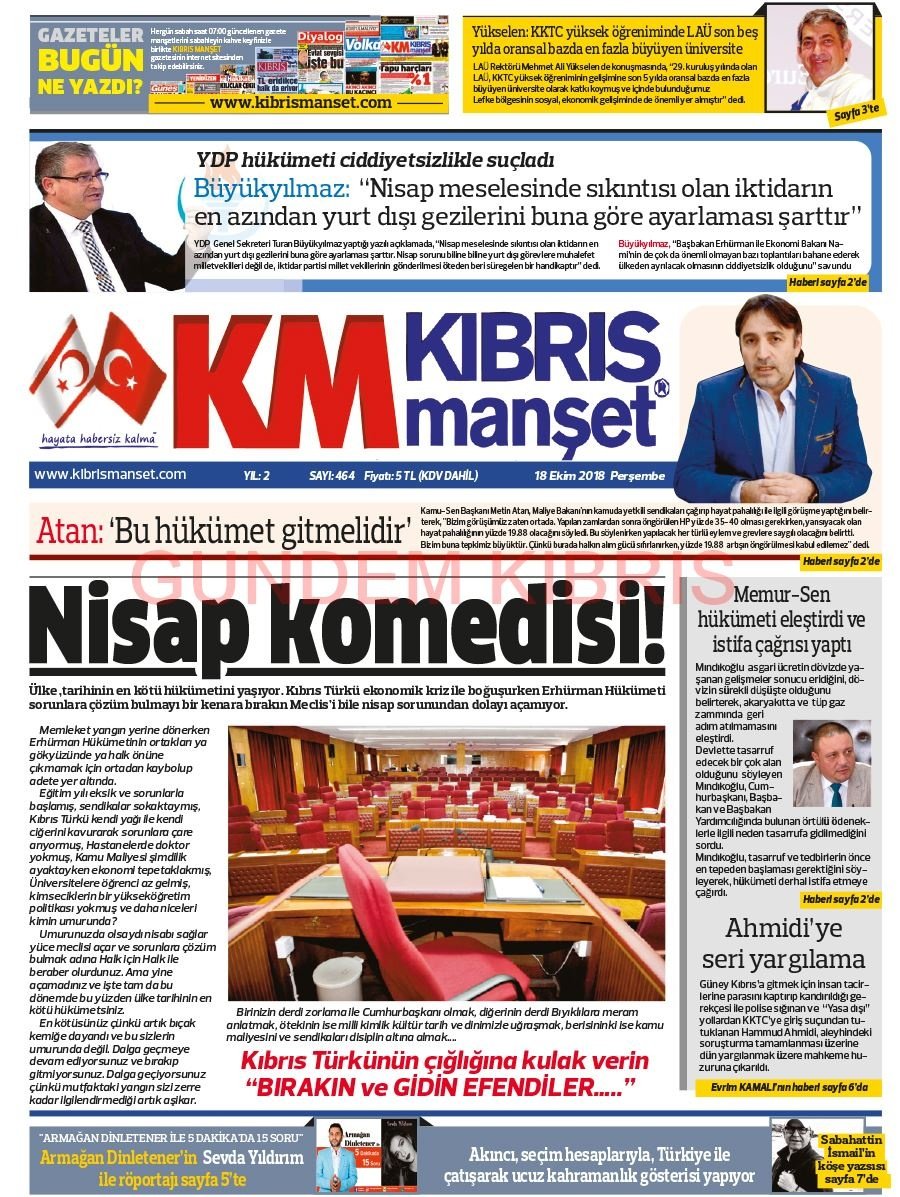 KKTC Gazete Manşetleri 18 Ekim 2018