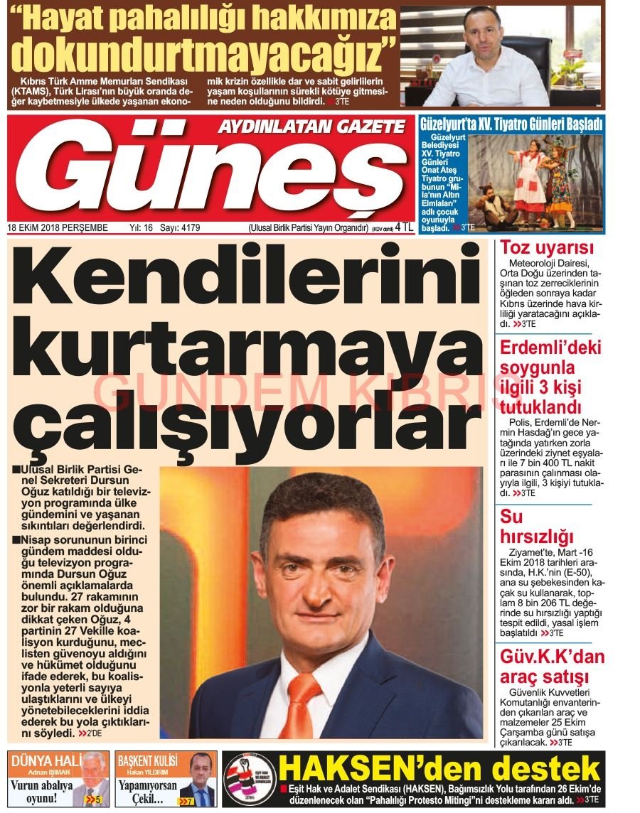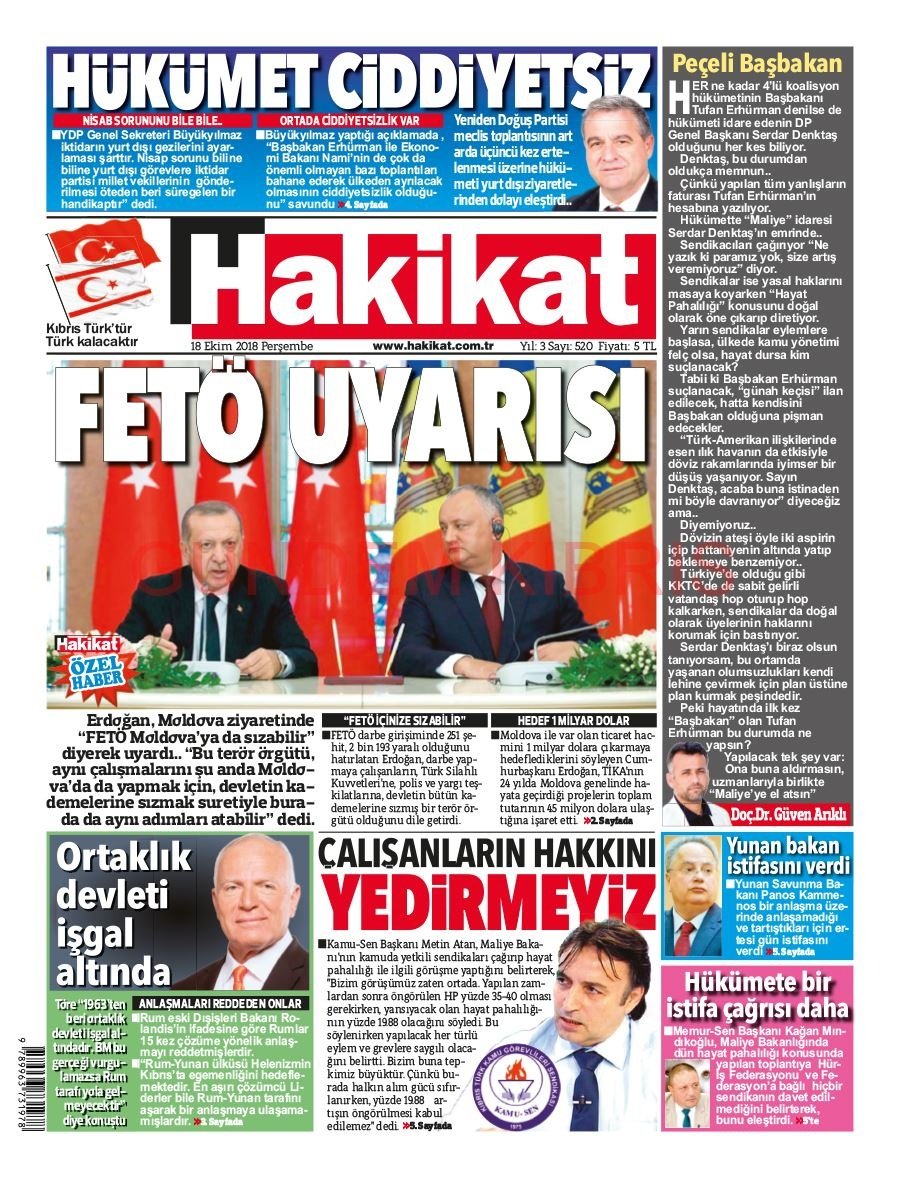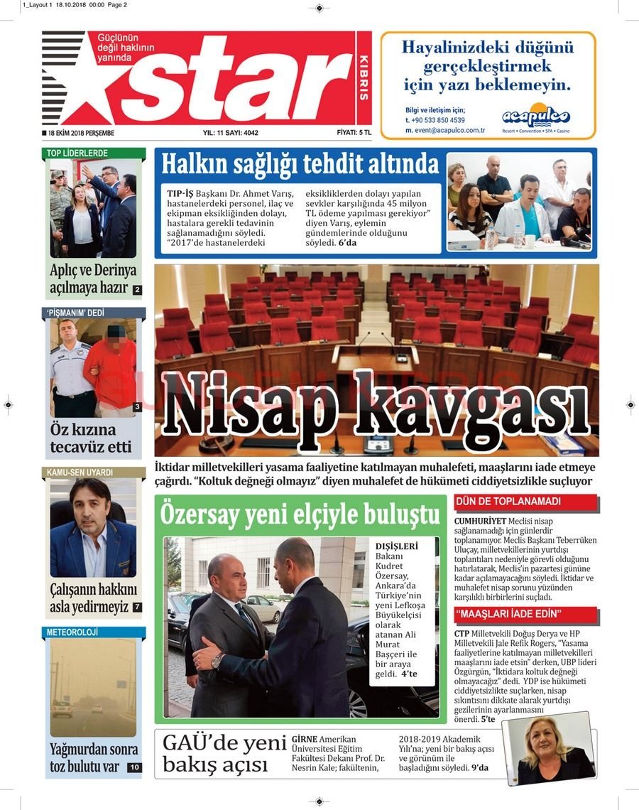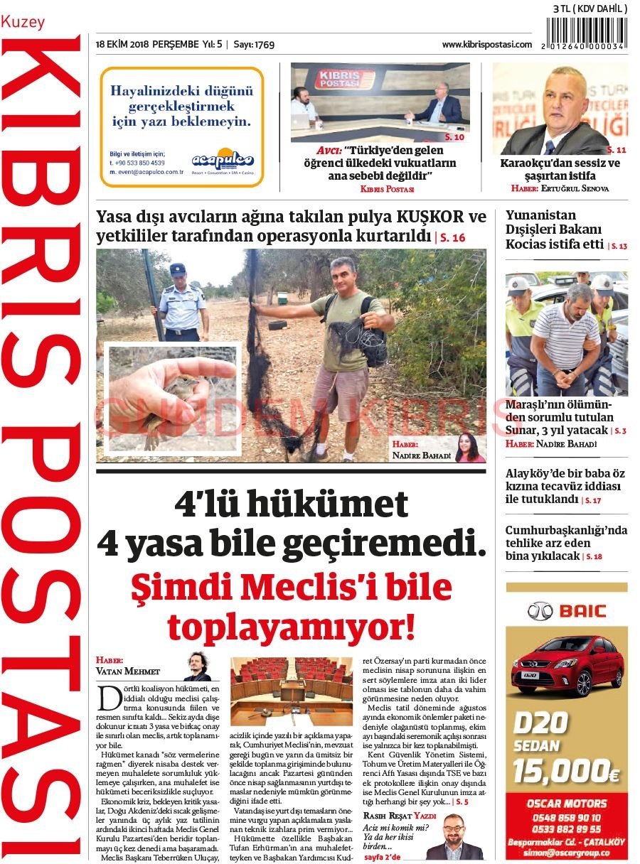KKTC Gazete Manşetleri 18 Ekim 2018