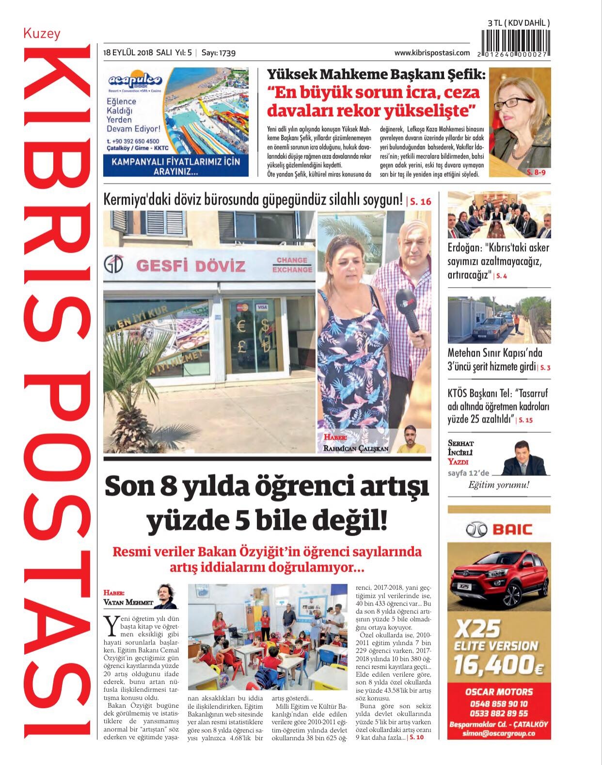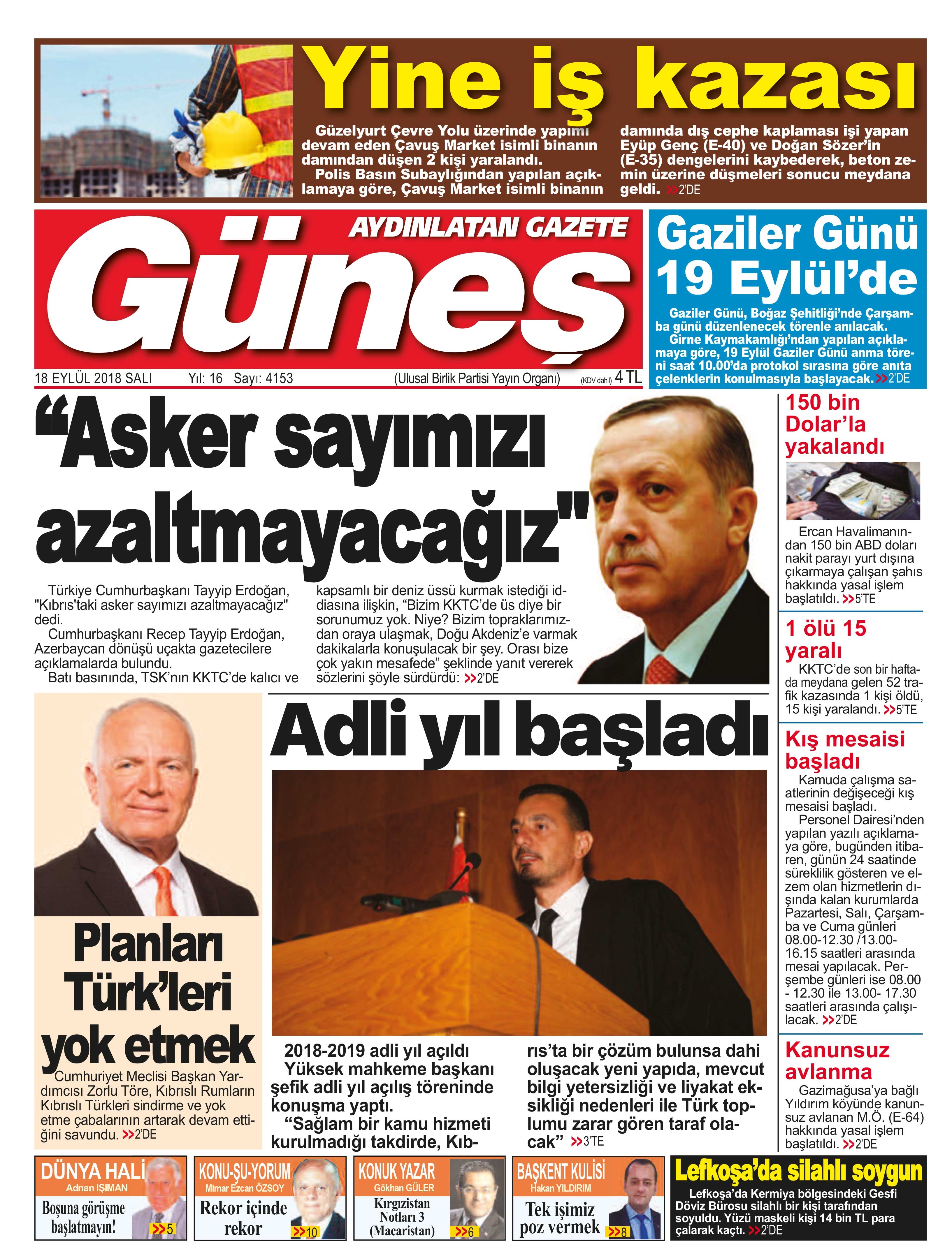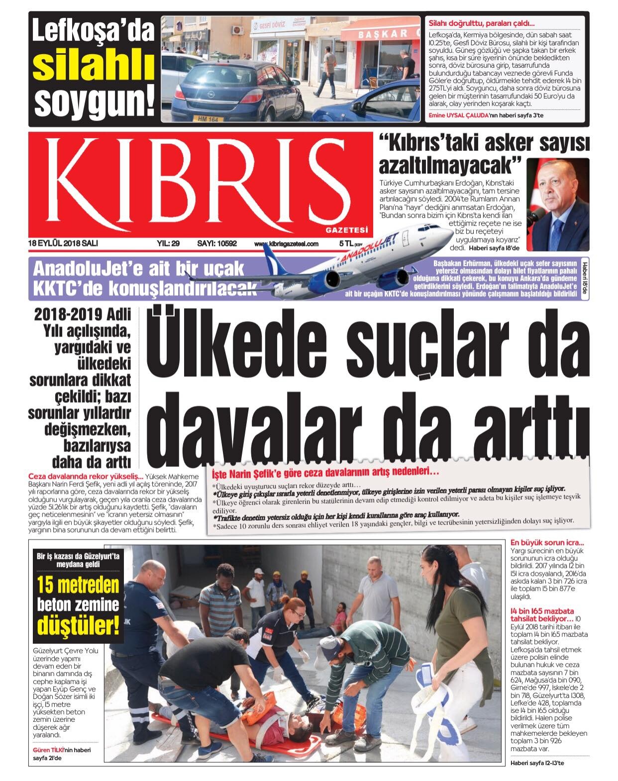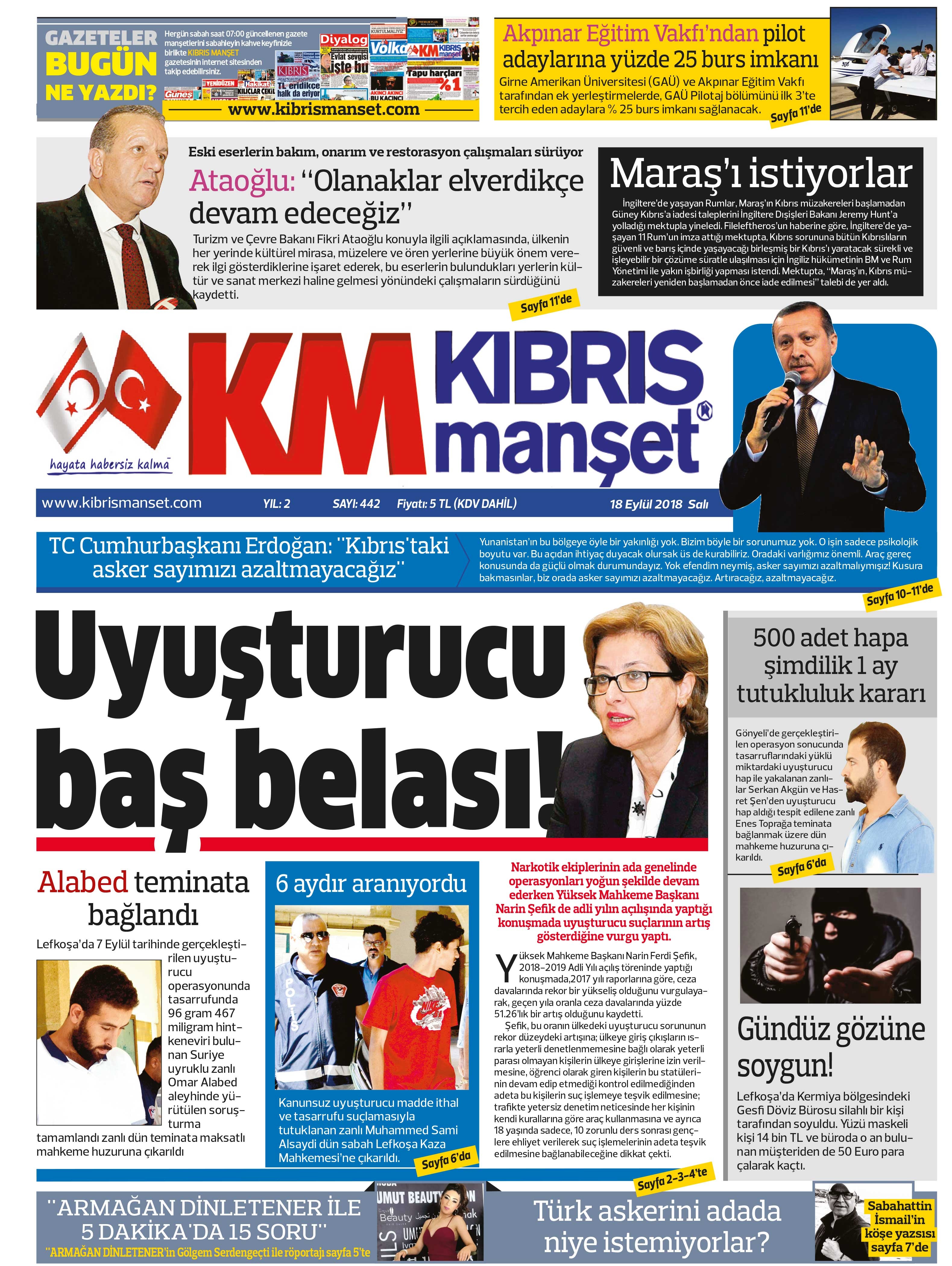 KKTC Gazete Manşetleri 18 Eylül 2018