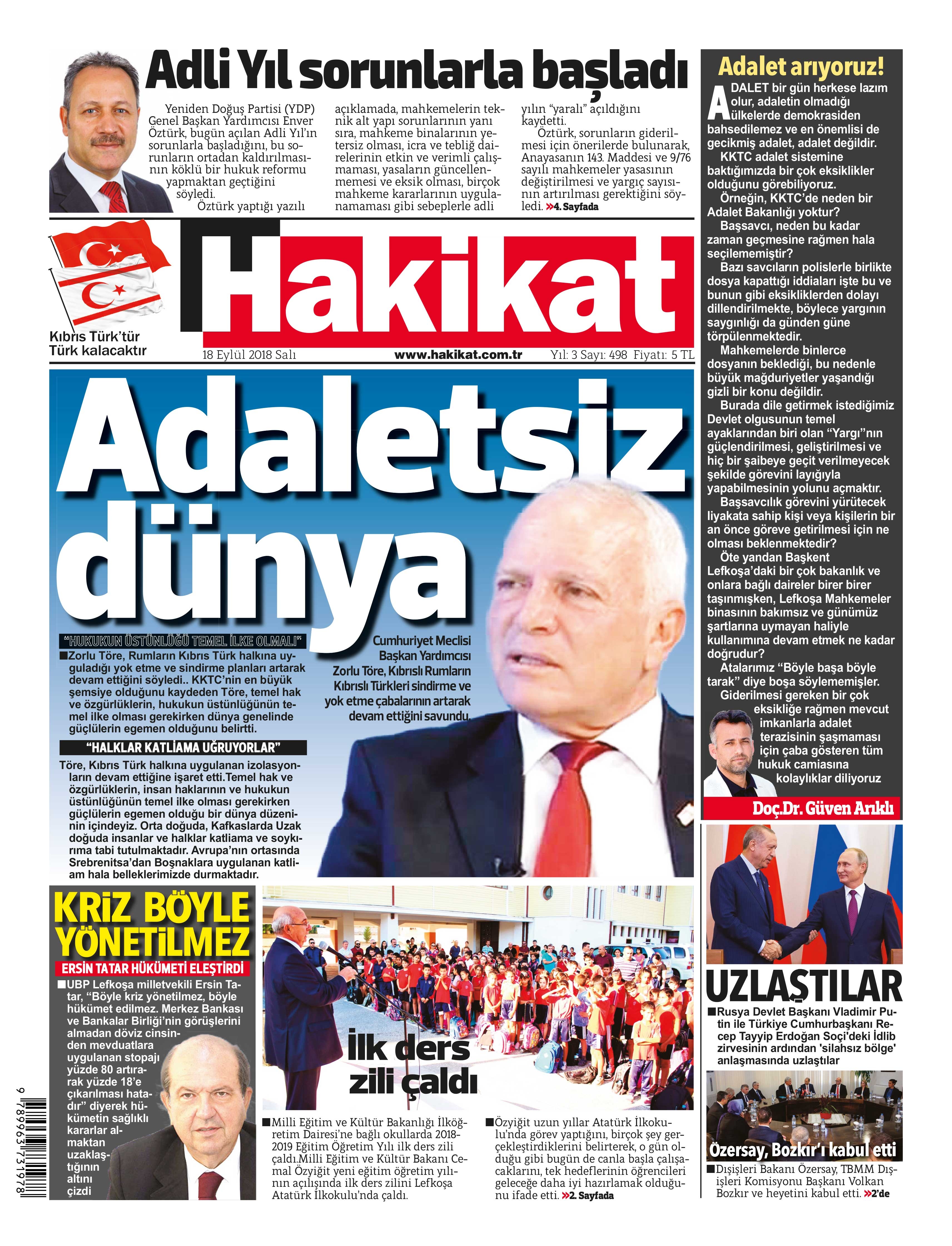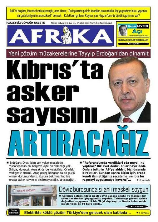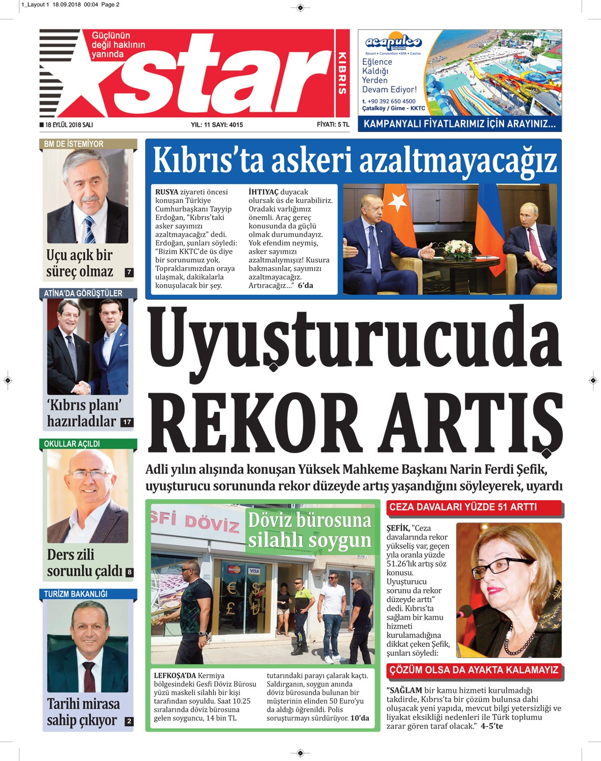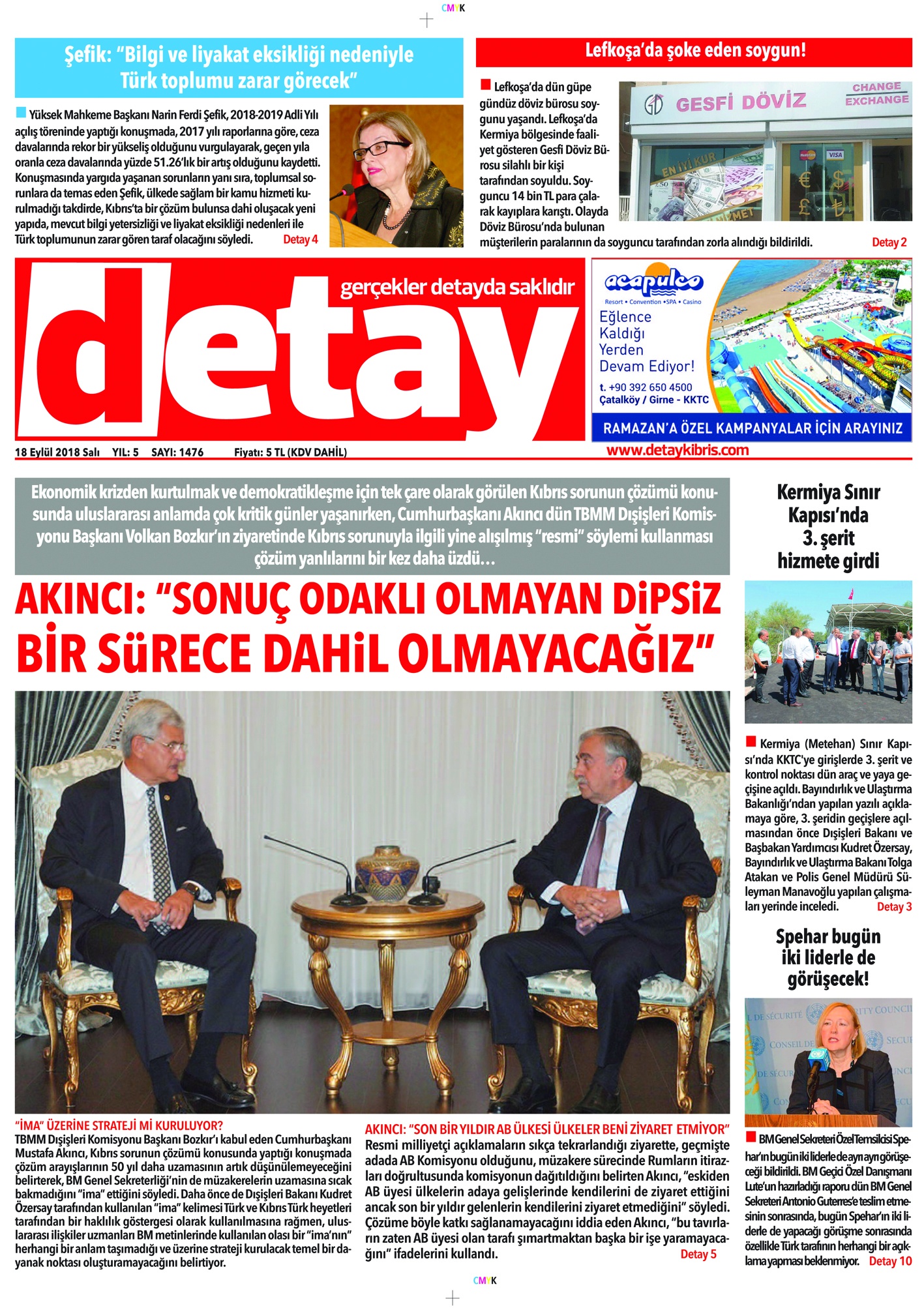 KKTC Gazete Manşetleri 18 Eylül 2018